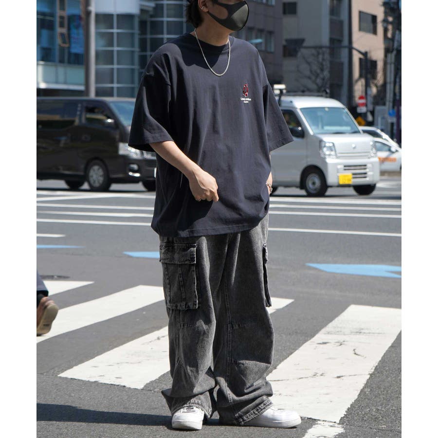 デニムワイドパンツやパラシュートパンツ、カーゴパンツ、スウェットパンツ、ショートパンツを着用したカジュアルなストリートスタイルがおすすめ。
