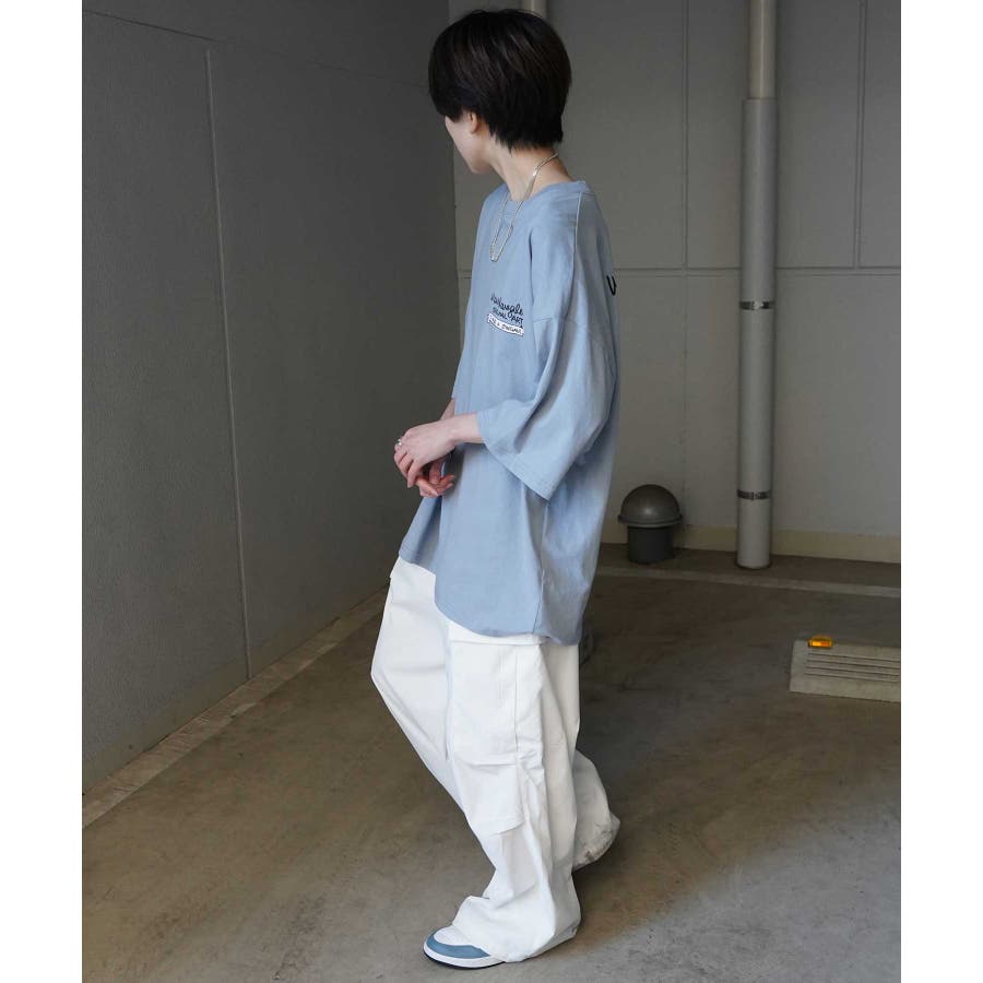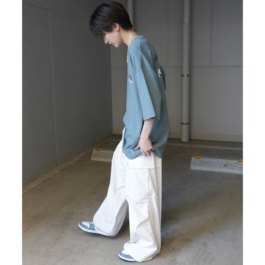 デニムワイドパンツやパラシュートパンツ、カーゴパンツ、スウェットパンツを着用したカジュアルなストリートスタイルが相性抜群。