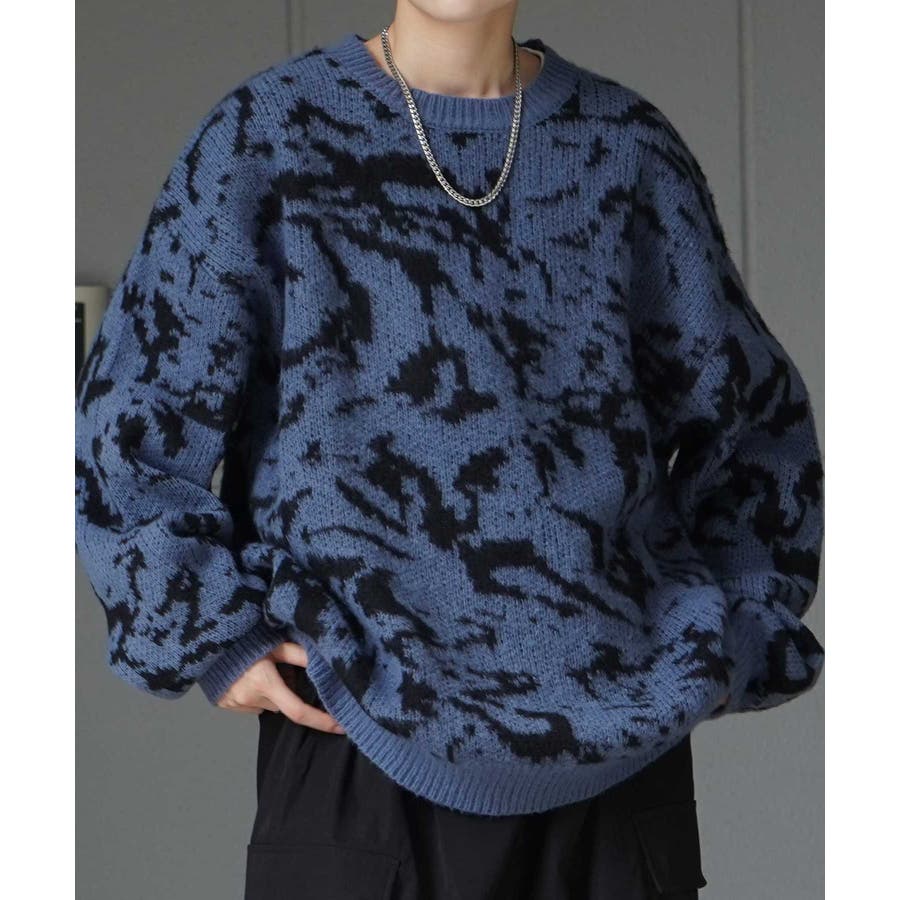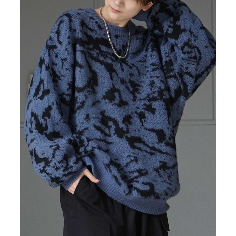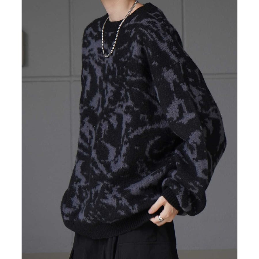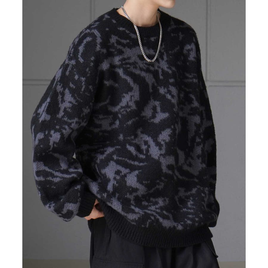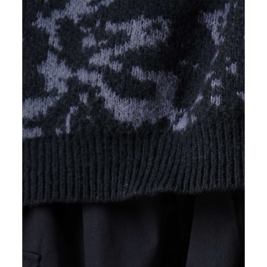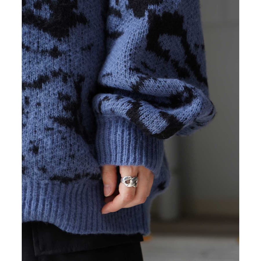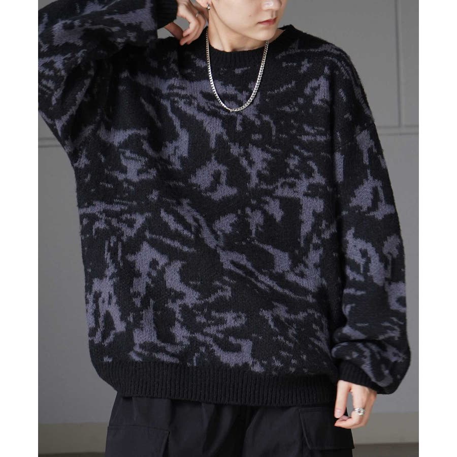 1枚切るだけでさまになる総柄クルーネックプルオーバーニット。