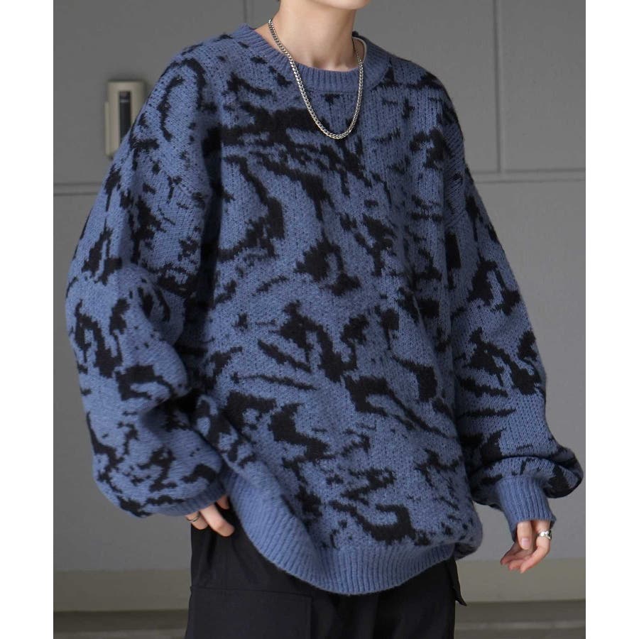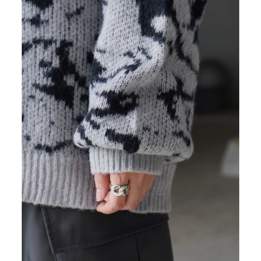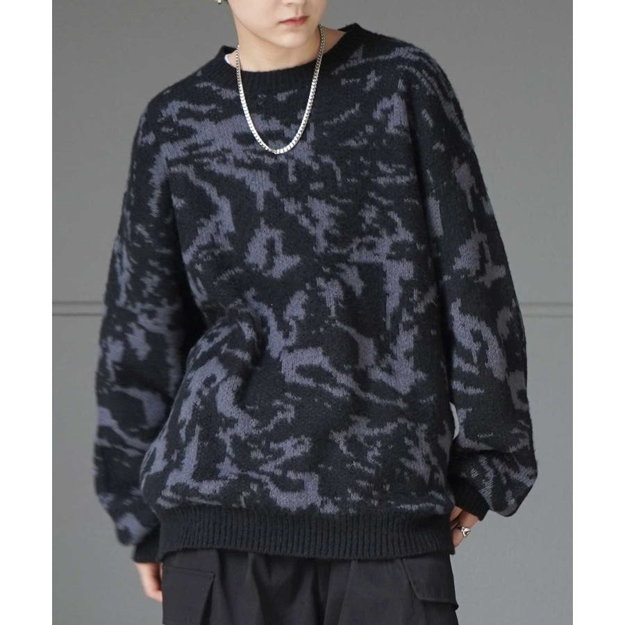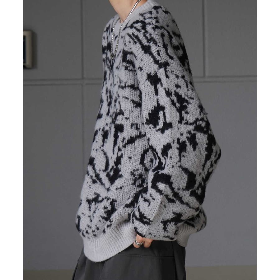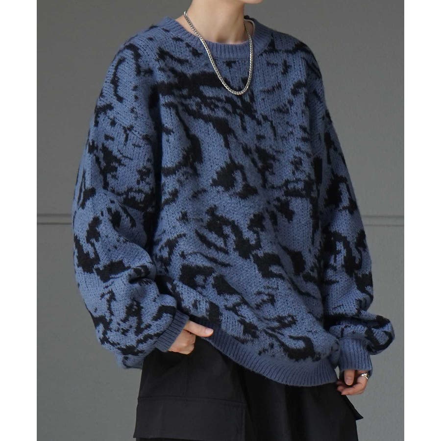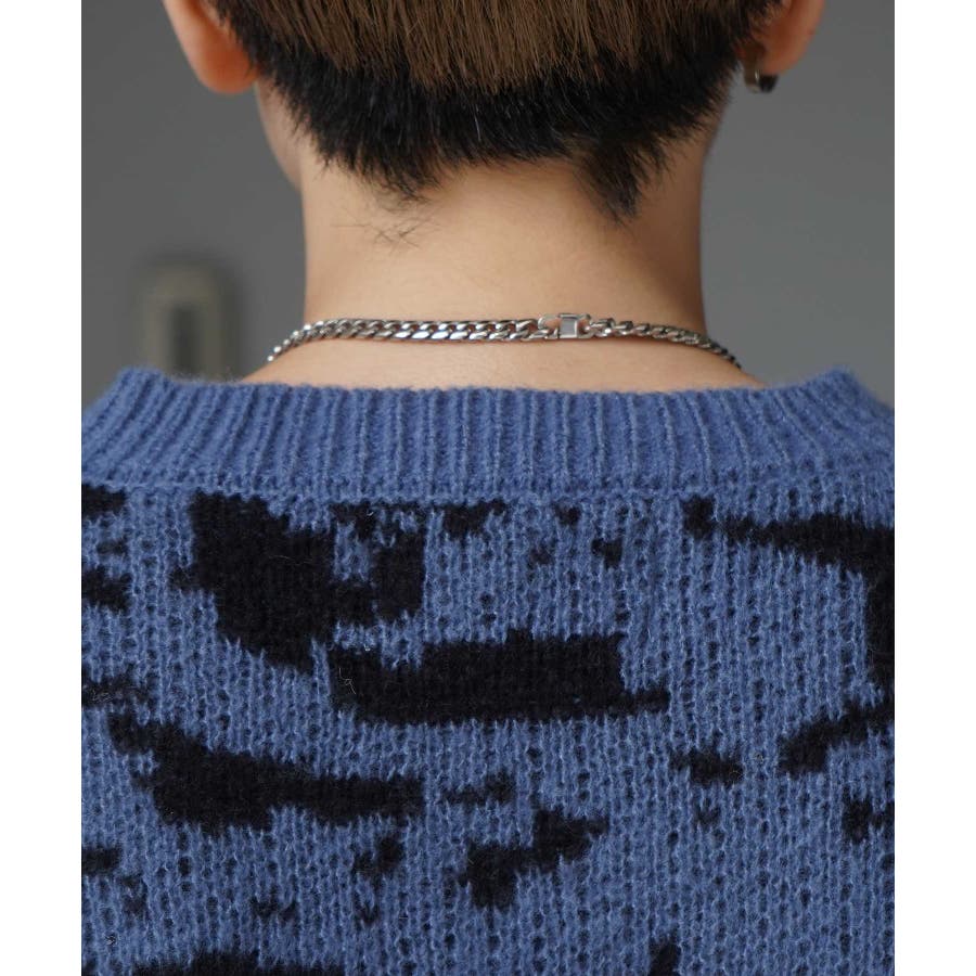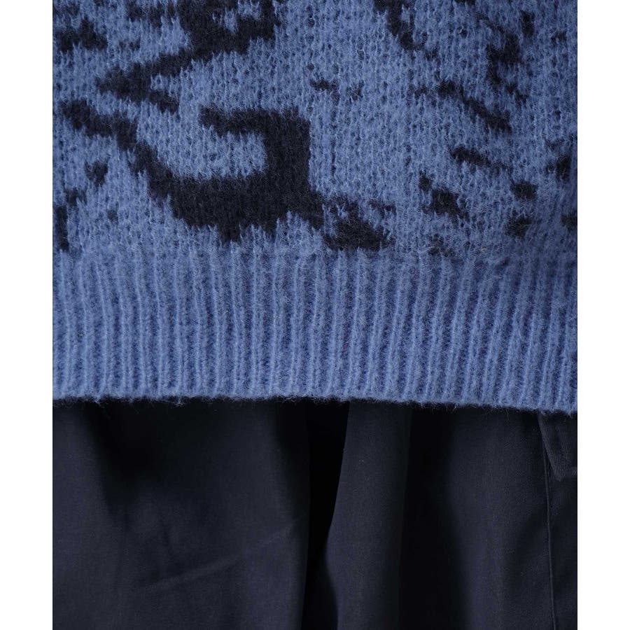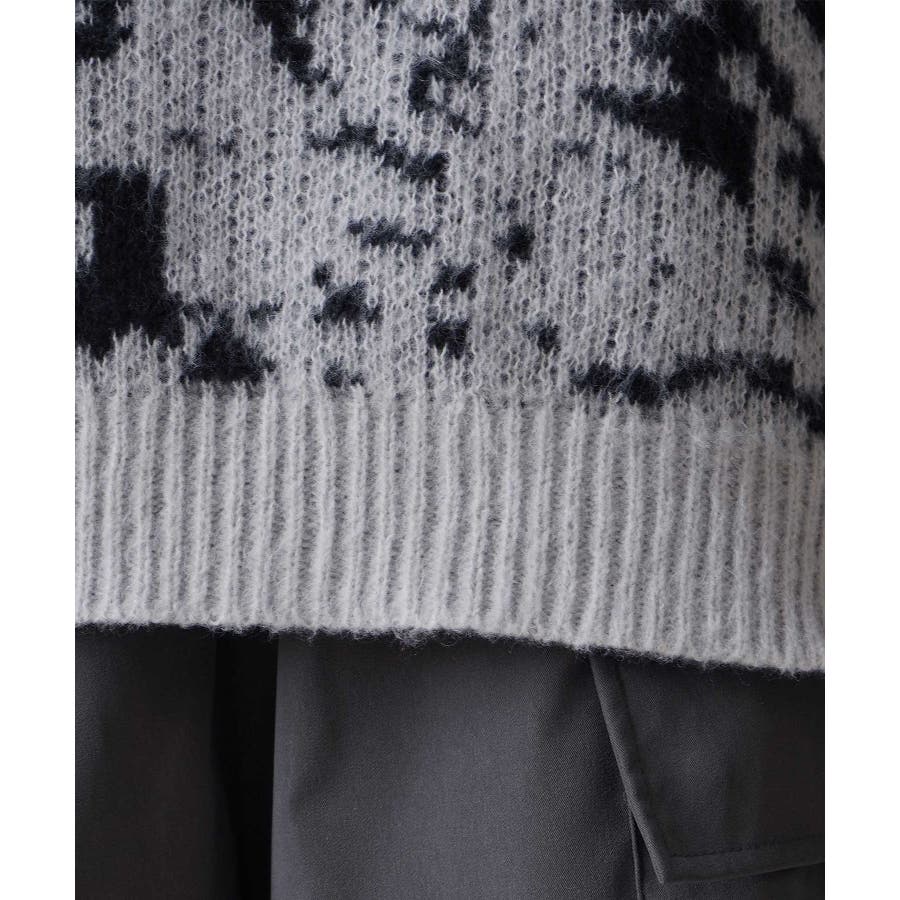 1枚切るだけでさまになる総柄クルーネックプルオーバーニット。