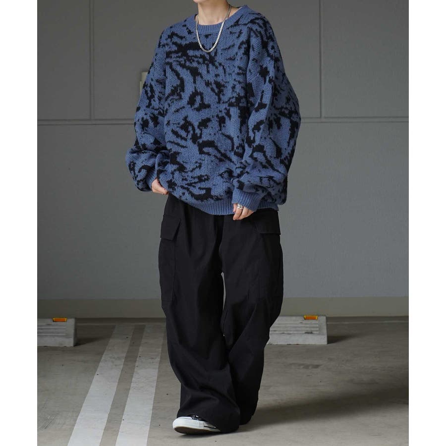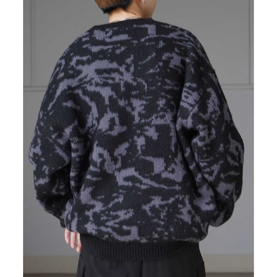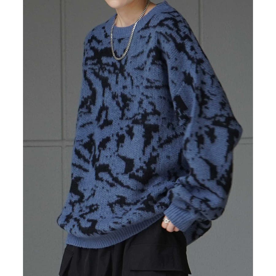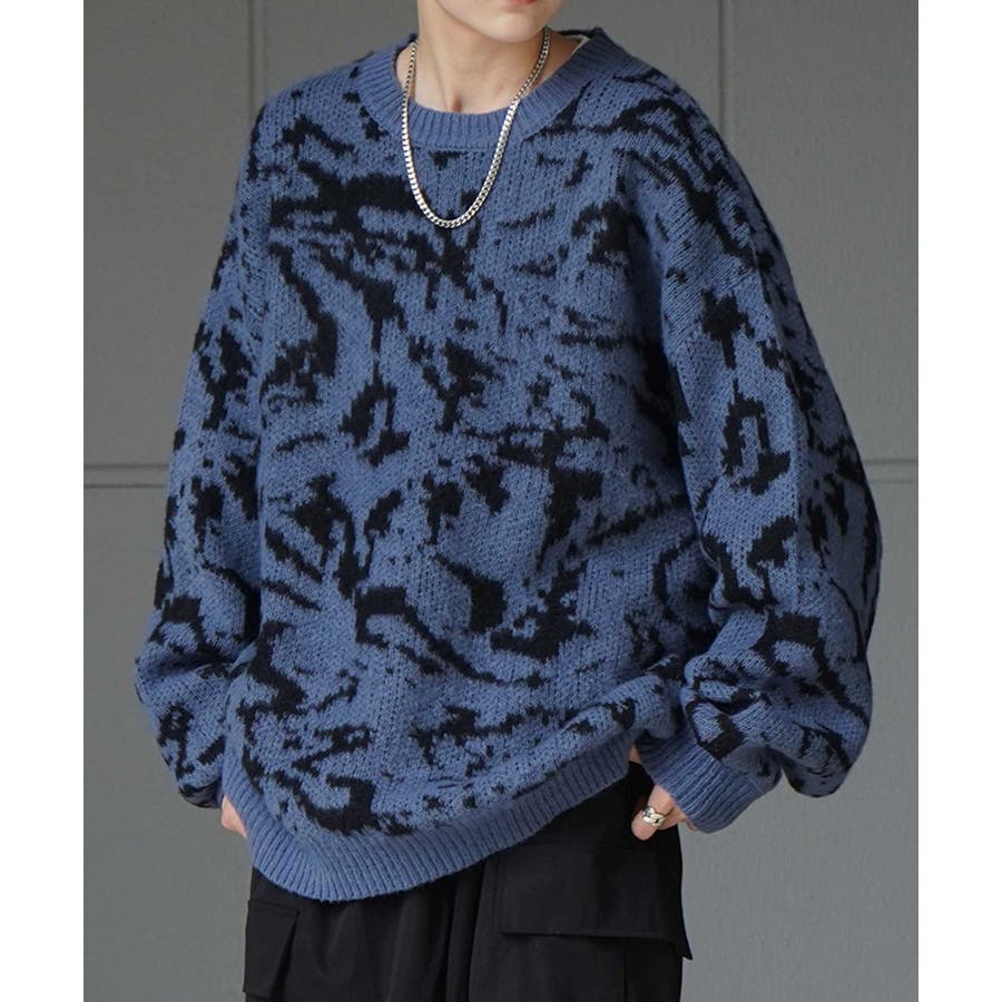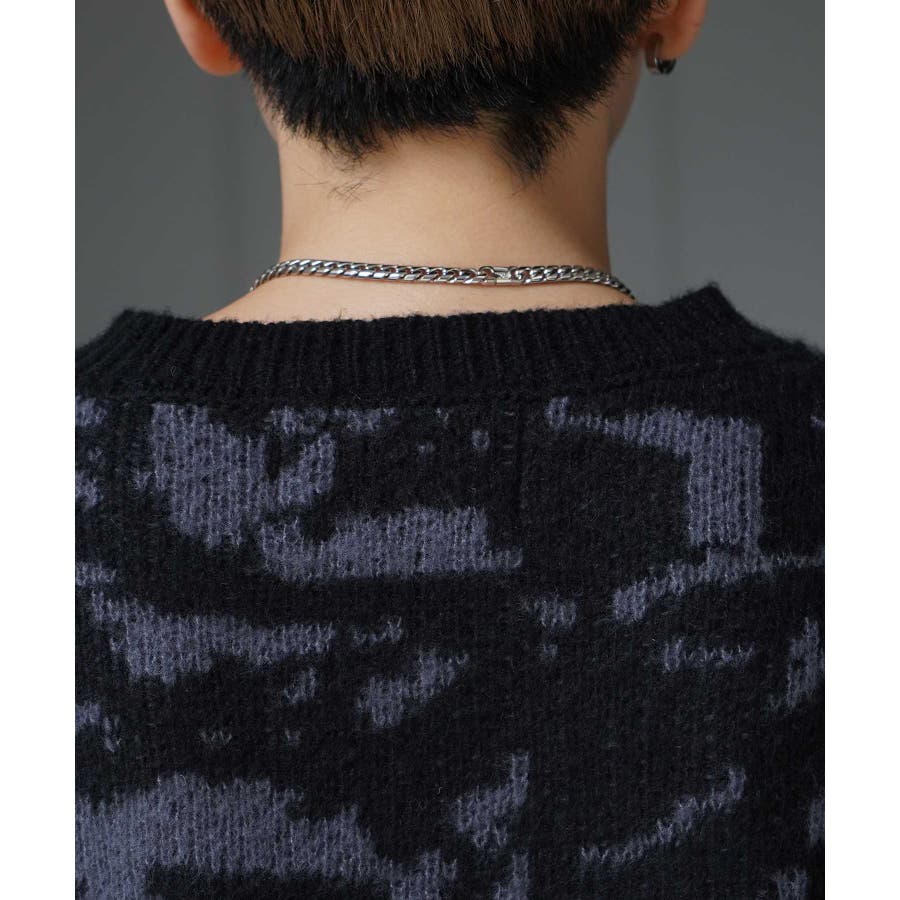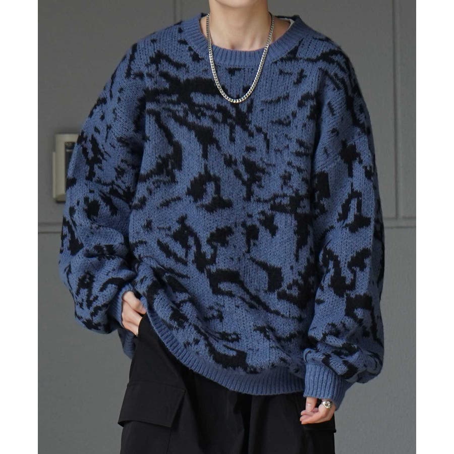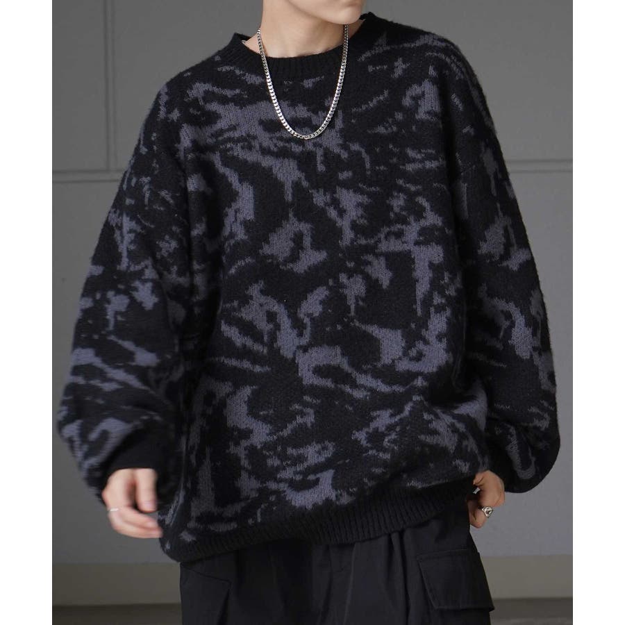 1枚切るだけでさまになる総柄クルーネックプルオーバーニット。