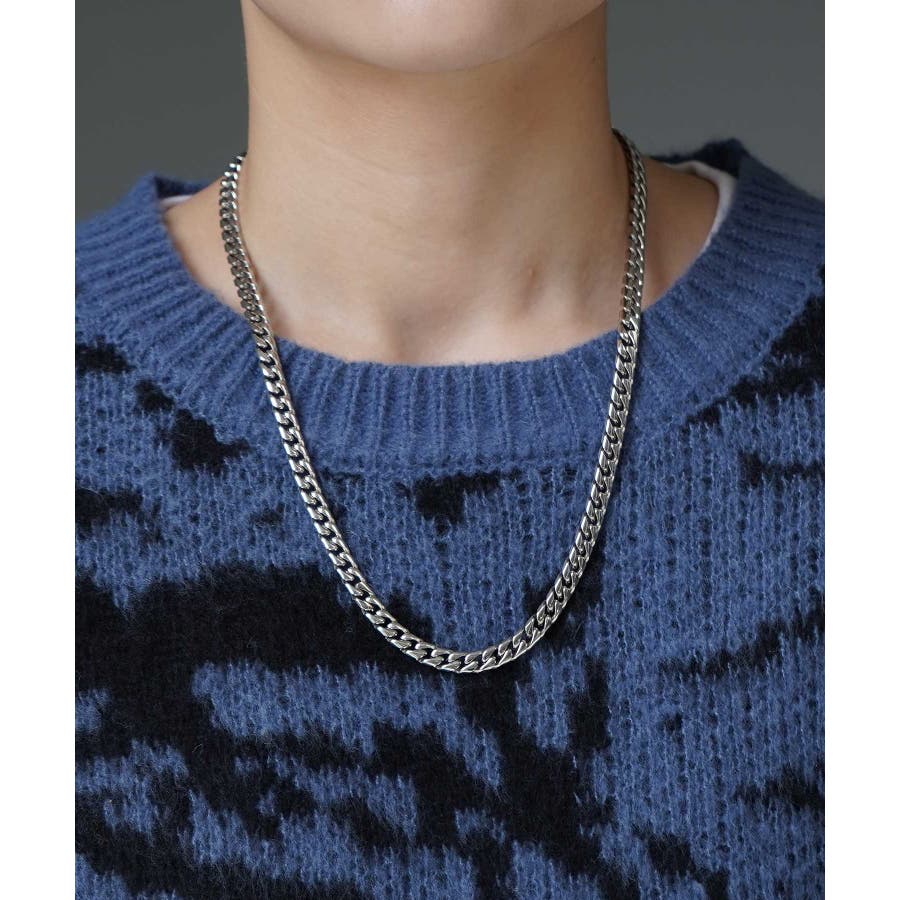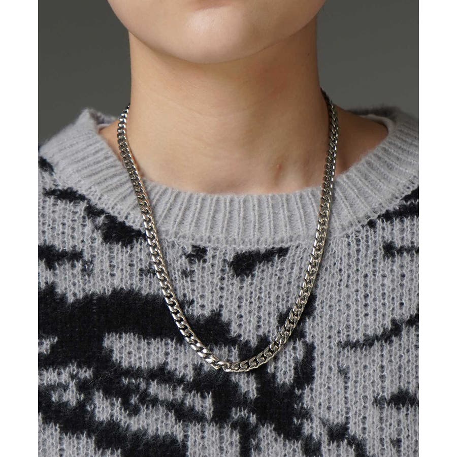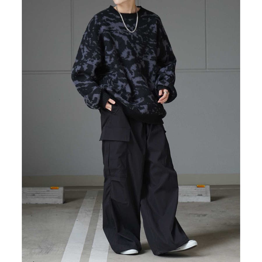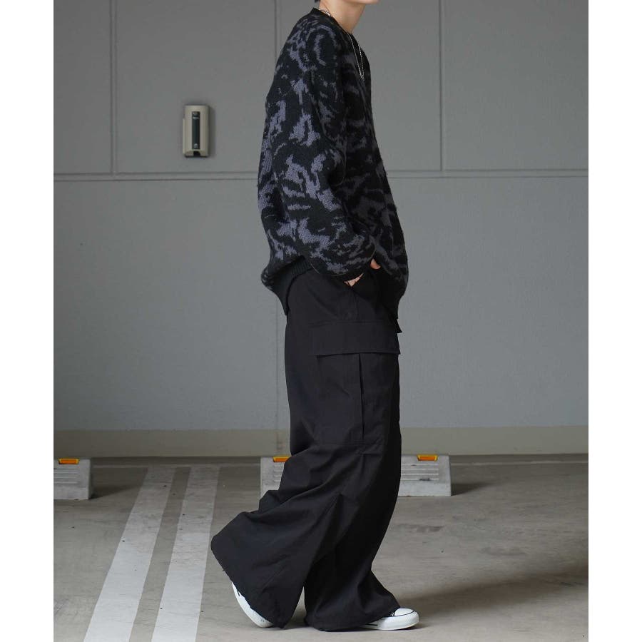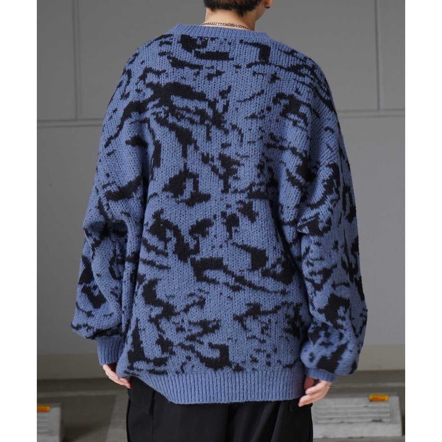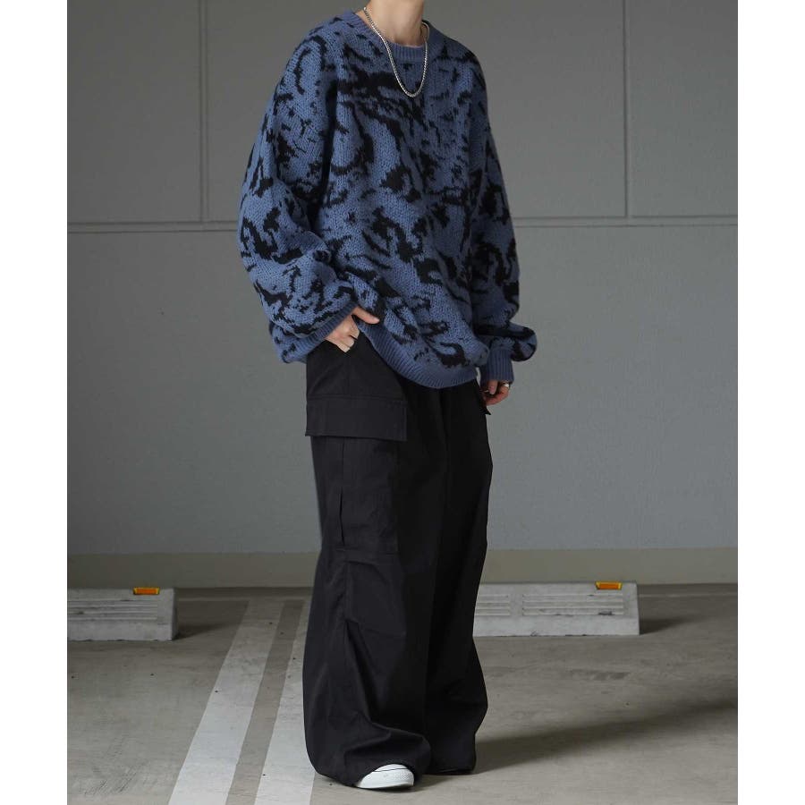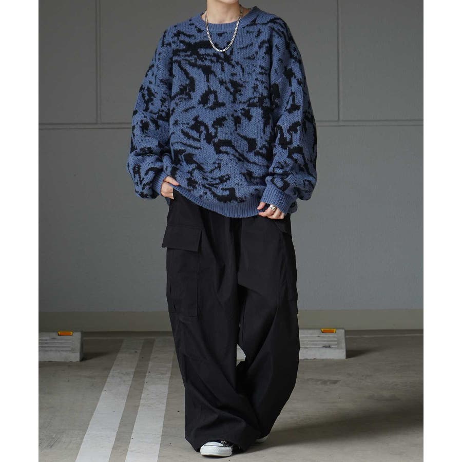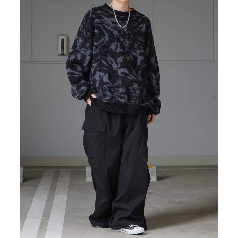 1枚切るだけでさまになる総柄クルーネックプルオーバーニット。