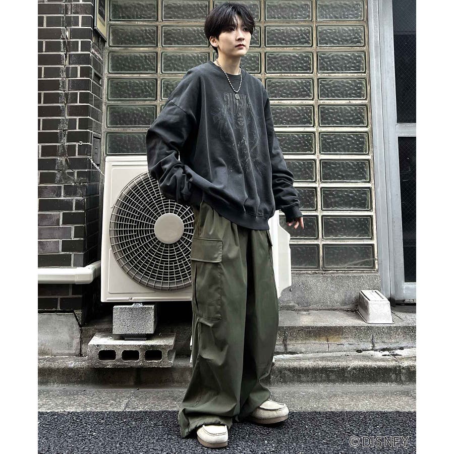ボトムスはデニムパンツやパラシュートパンツ、カーゴパンツ、スウェットパンツなどの