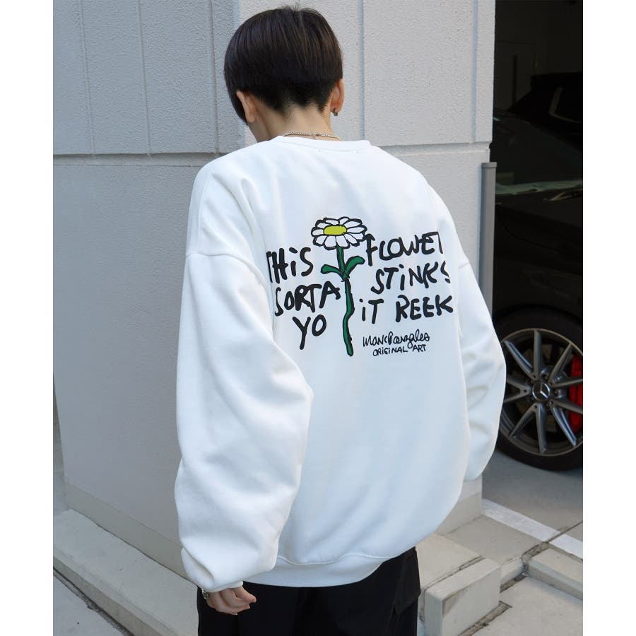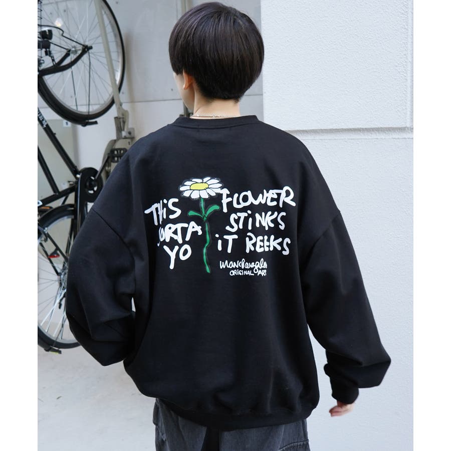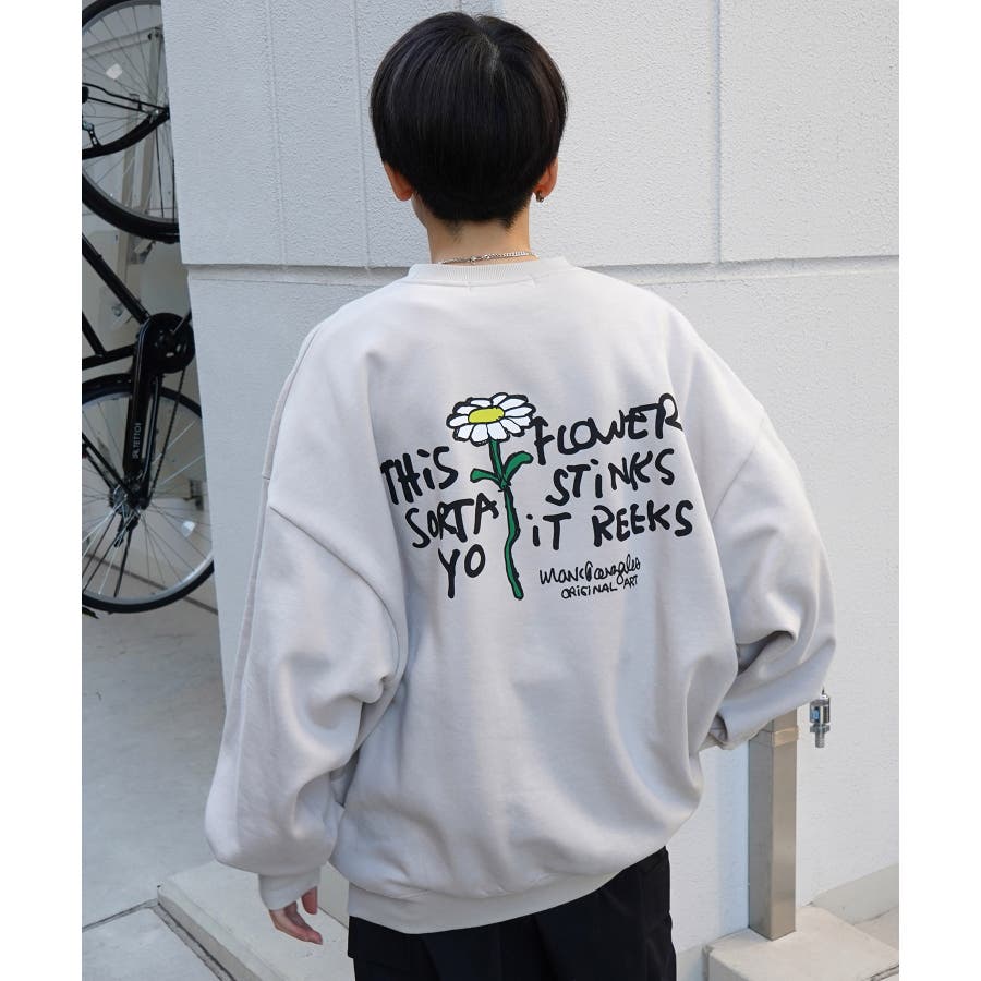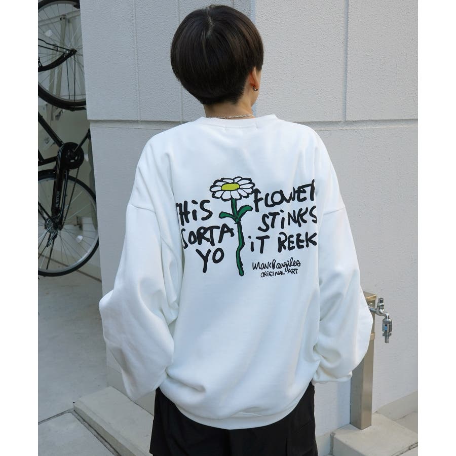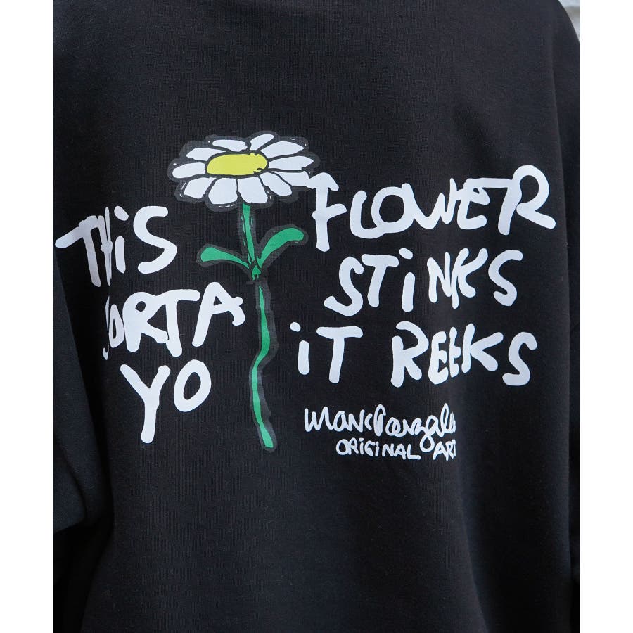 胸元の綺麗なフラワー刺繍とインパクトのあるバックプリントが魅力の1枚。