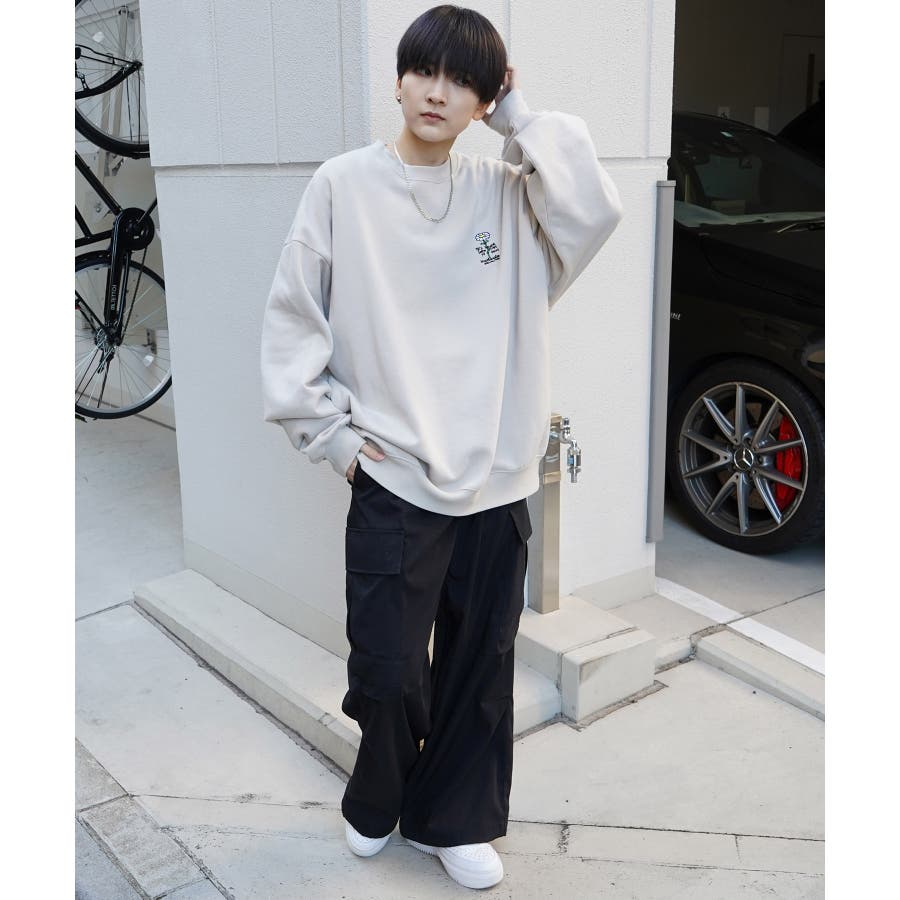 ワイドデニムパンツやパラシュートパンツ、カーゴパンツを合わせたカジュアルなストリートスタイルもおすすめ。