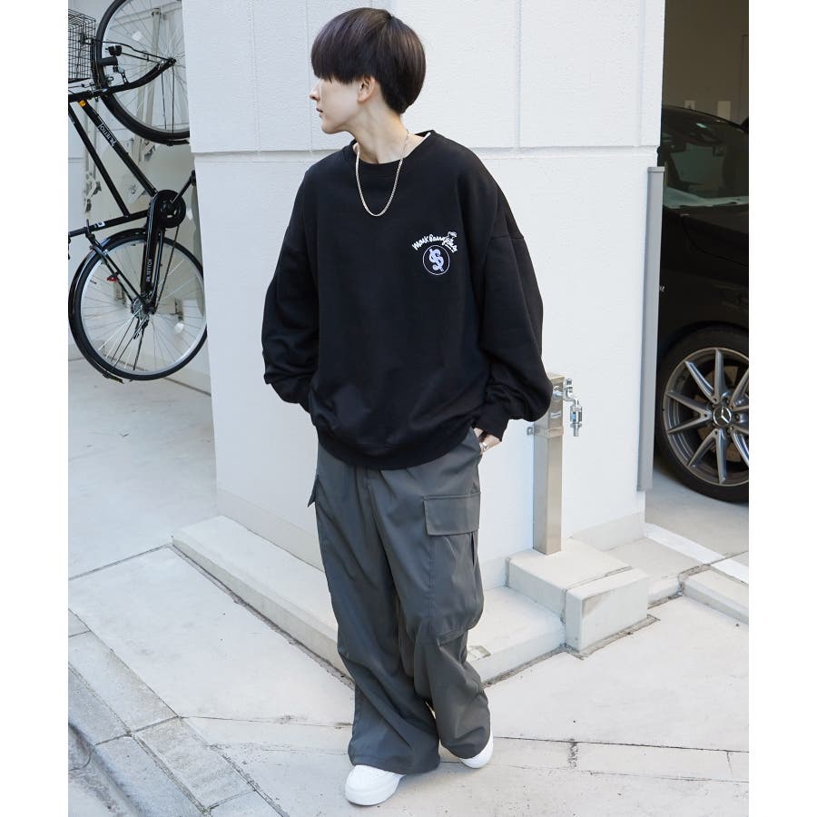 ワイドデニムパンツやパラシュートパンツ、カーゴパンツを合わせたカジュアルなストリートスタイルもおすすめ。