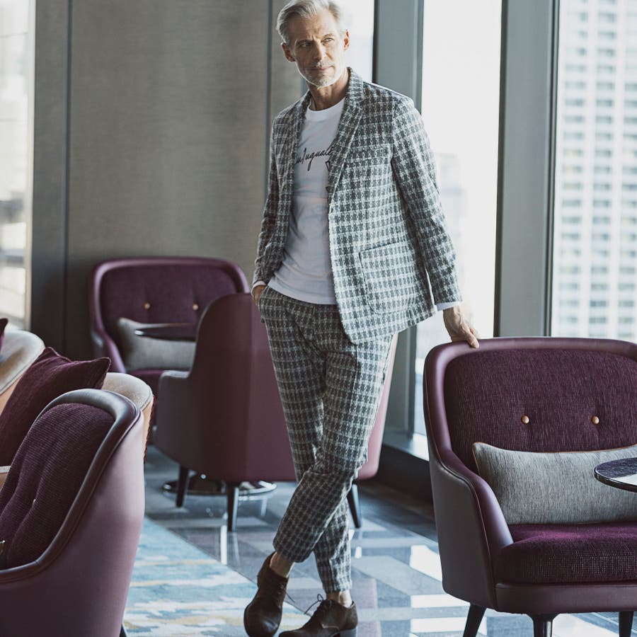 パーツの細部まで丁寧にこだわった、1PIU1UGUALE3 RELAXにしか作れない、シックかつラグジュアリーな普段着です。