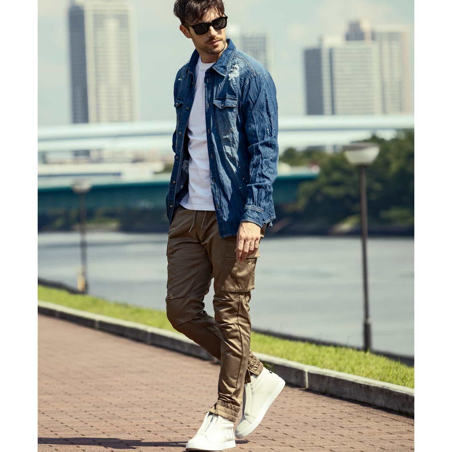 秋冬のスタイリングに欠かせないミリタリー要素を持つカーゴパンツ。