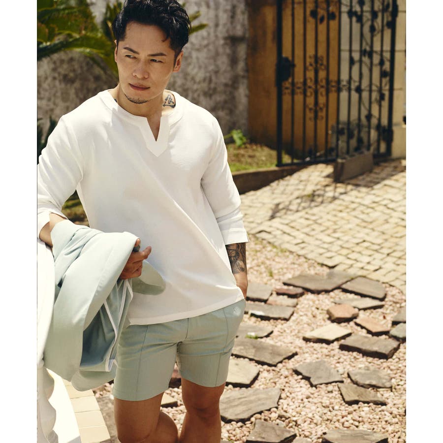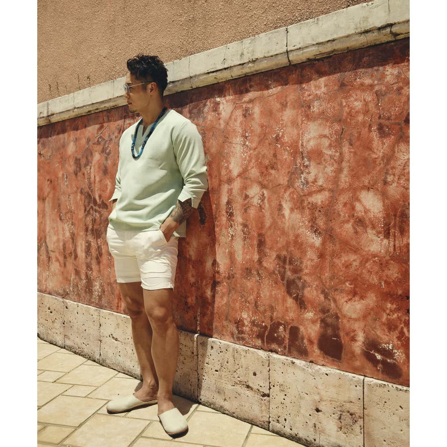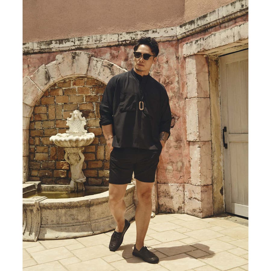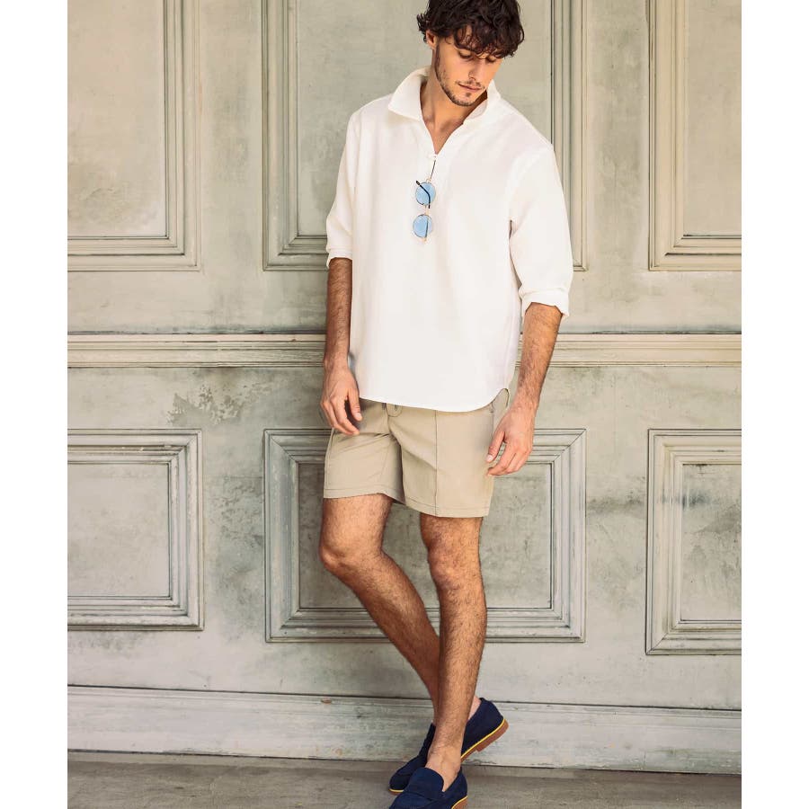 センターにピンタックを施すことでシルエットを引き締め、ラフすぎない大人の仕上がりに。