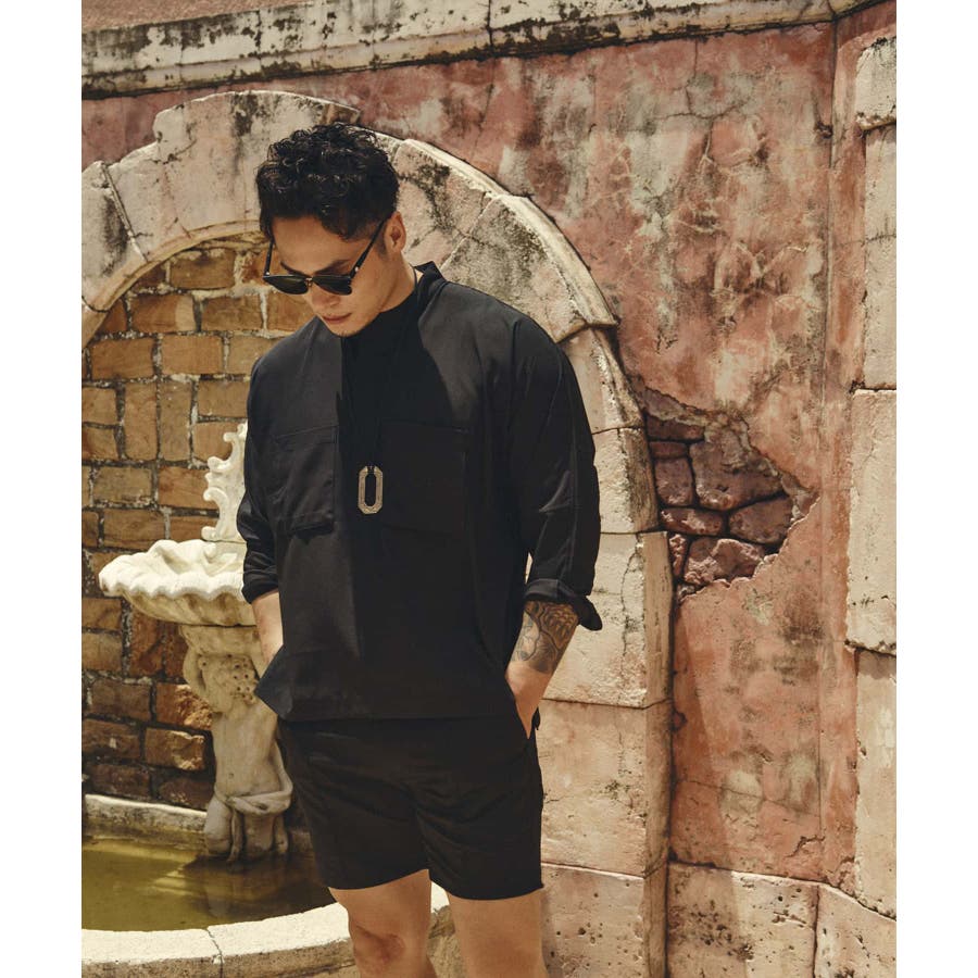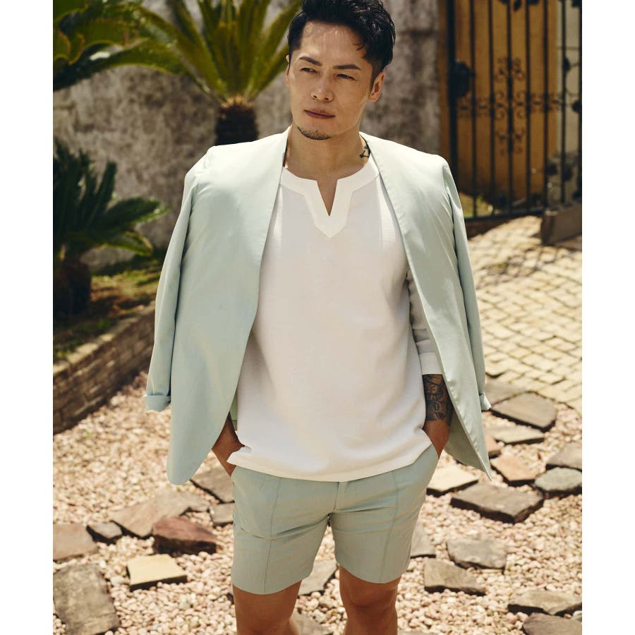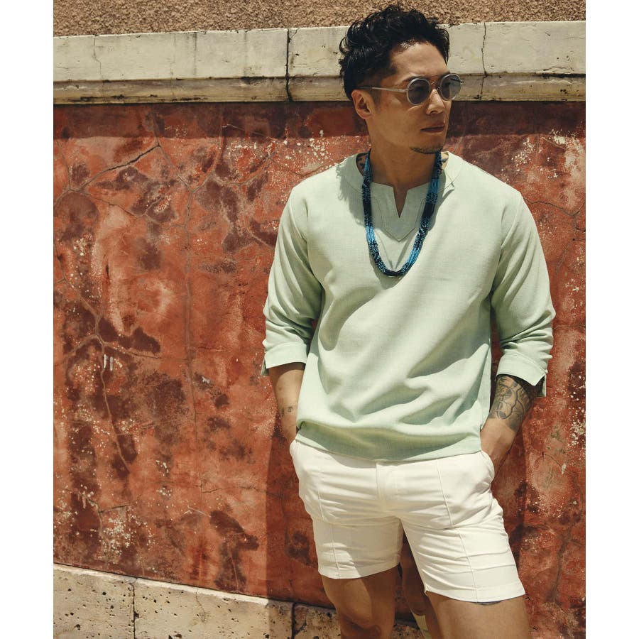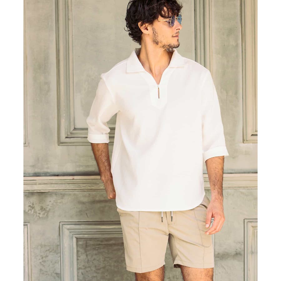 センターにピンタックを施すことでシルエットを引き締め、ラフすぎない大人の仕上がりに。