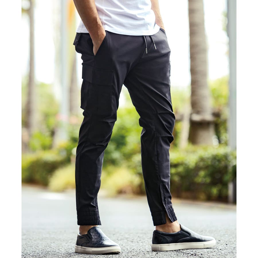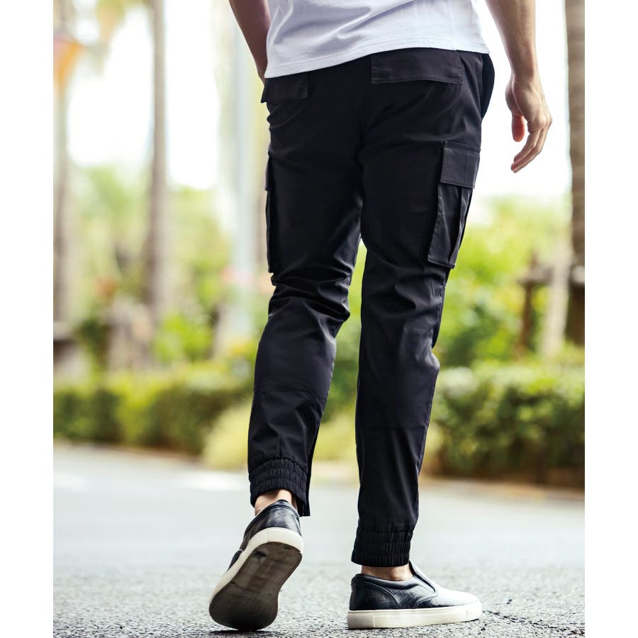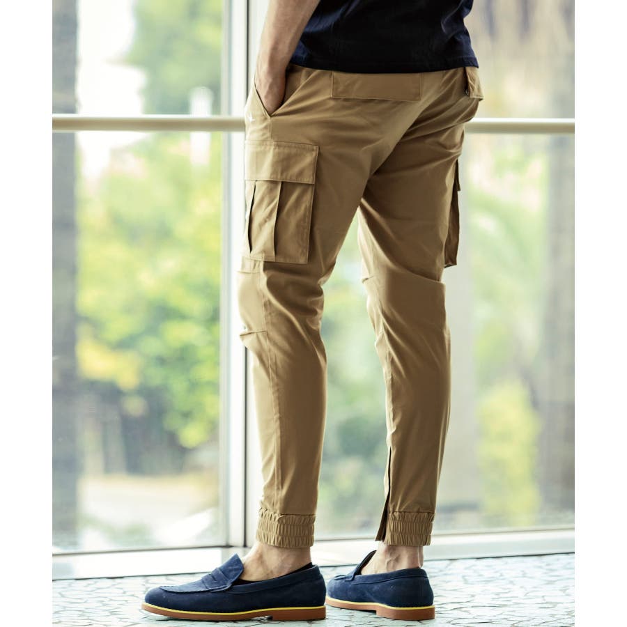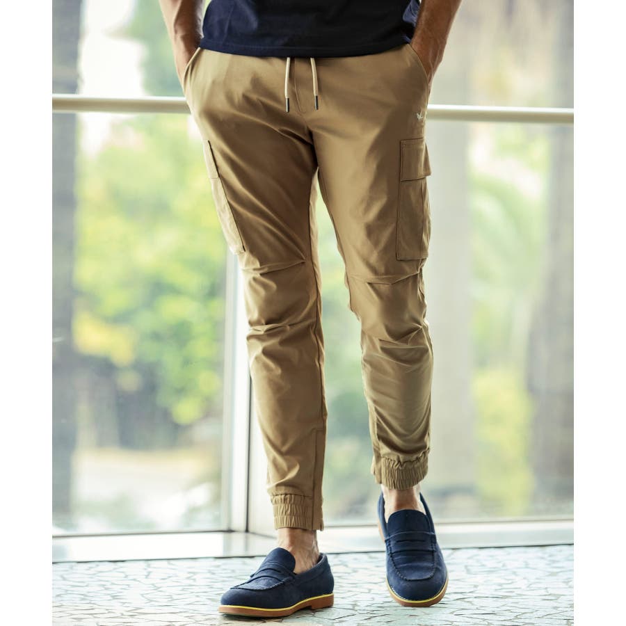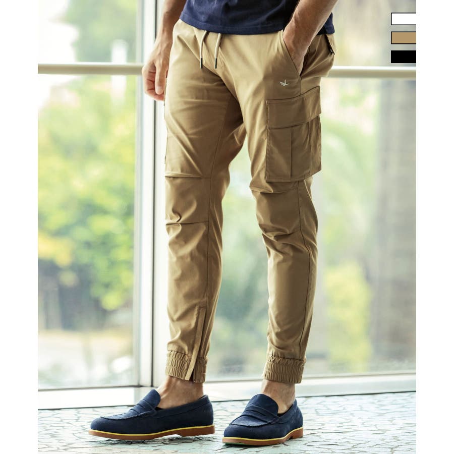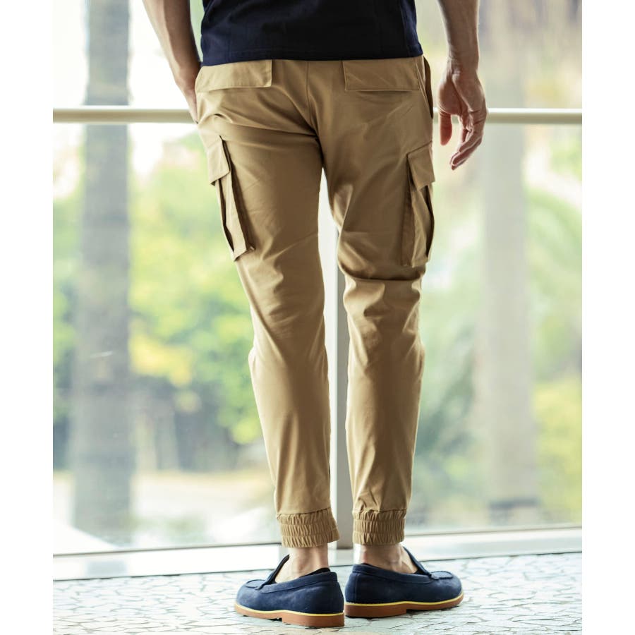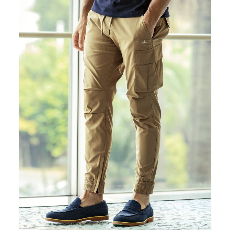 ミリタリー由来であるカーゴパンツ特有の男らしさと上品さを両立するため、細部にこだわりが光ります。