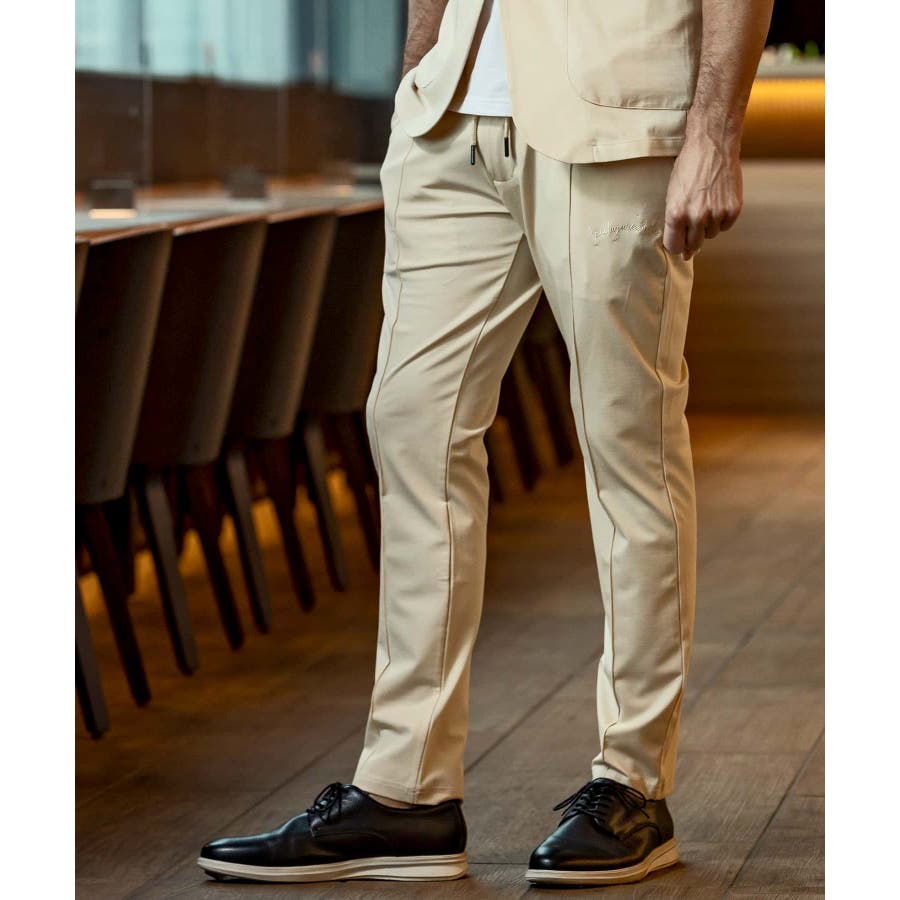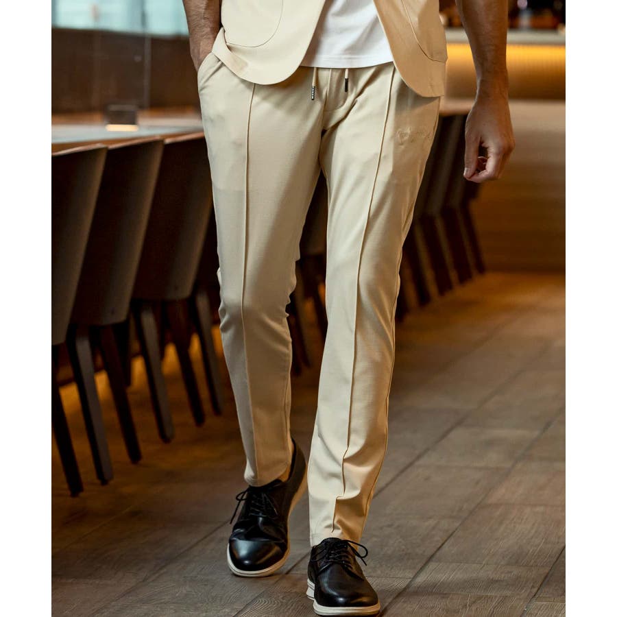 伸縮性に優れたカットソー生地を採用したロングパンツ。