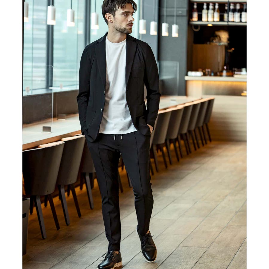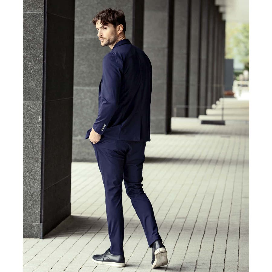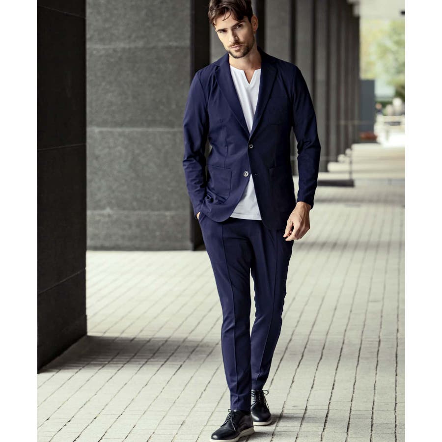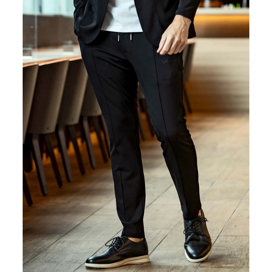 センターシームが縦のラインを強調し、フォーマルかつスタイリッシュな仕上がりに。