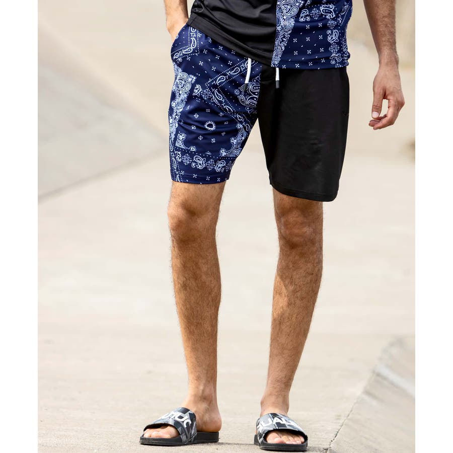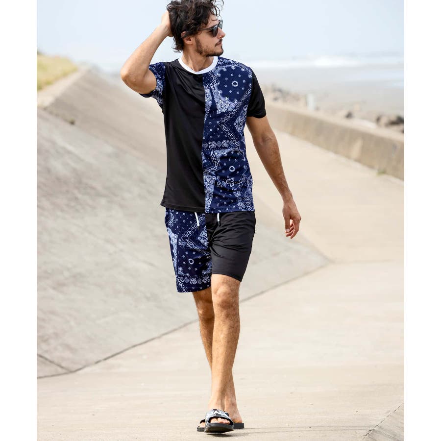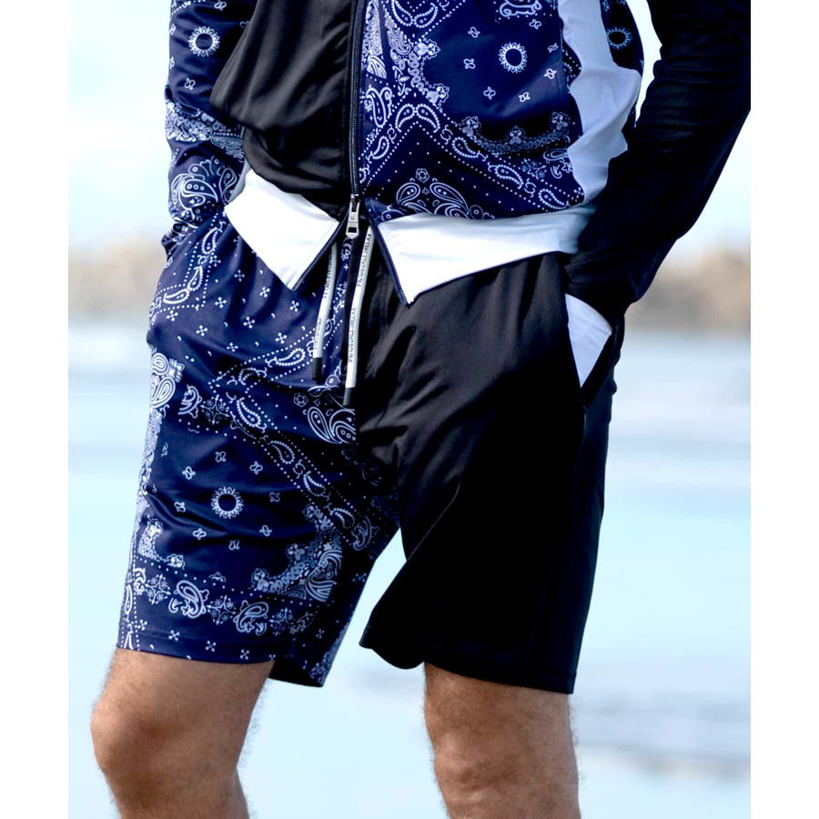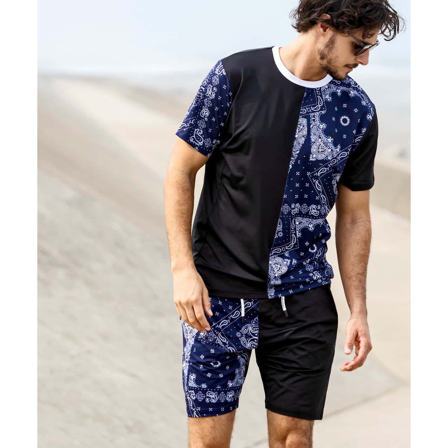 ブロッキングペイズリーラッシュガードショーツ⇒usb-24009