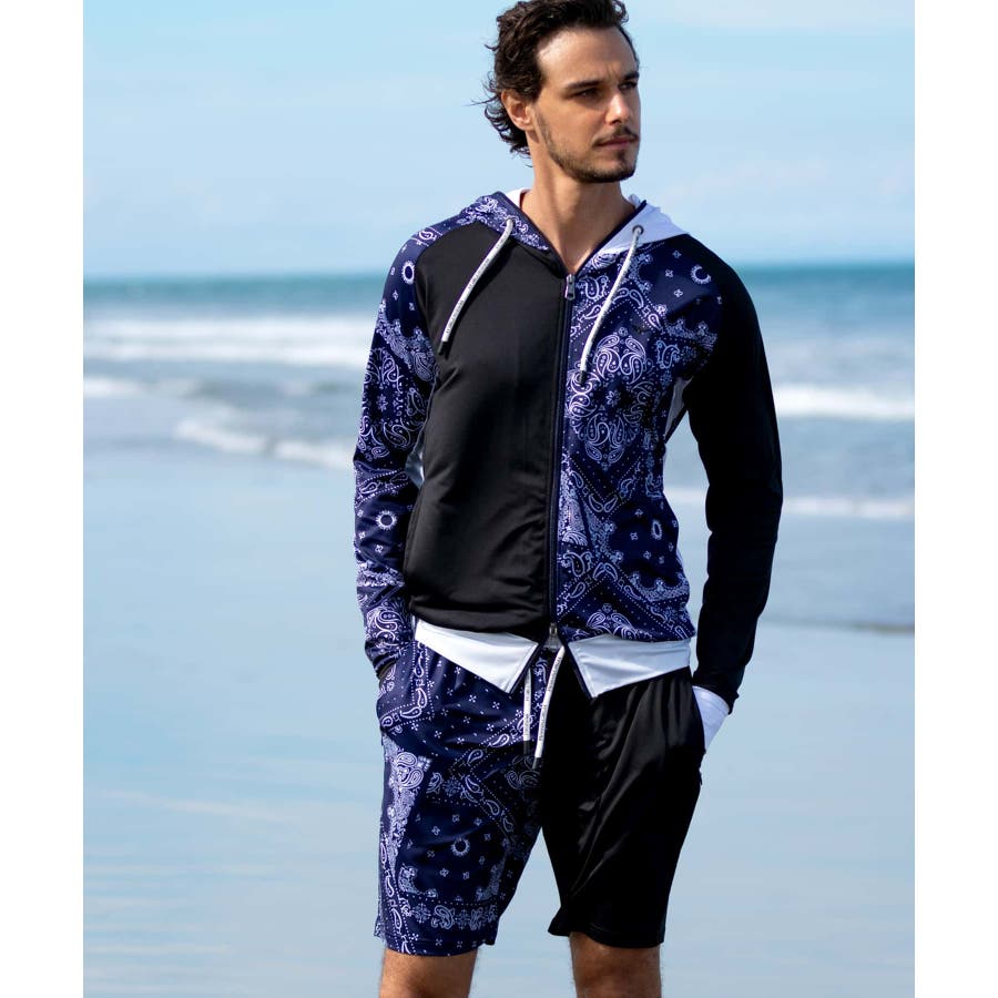 ブロッキングペイズリーラッシュガードパーカー⇒uso-24009