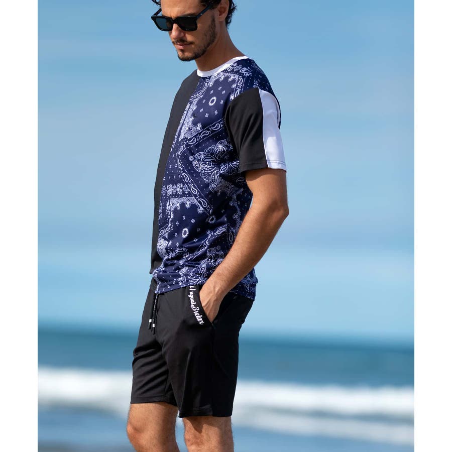 ブロッキングペイズリーラッシュガードショーツ⇒usb-24009