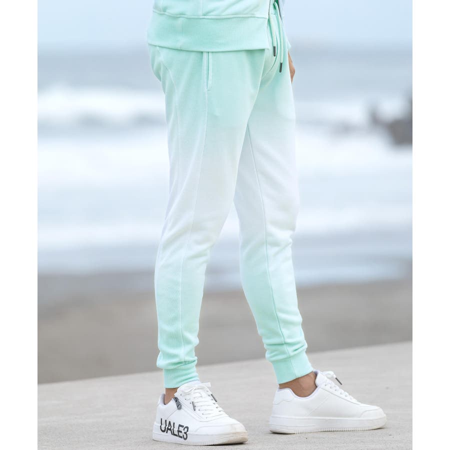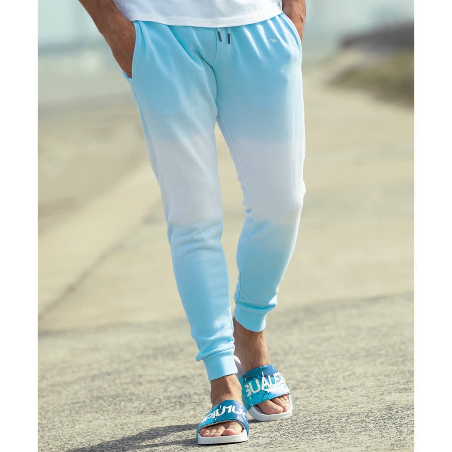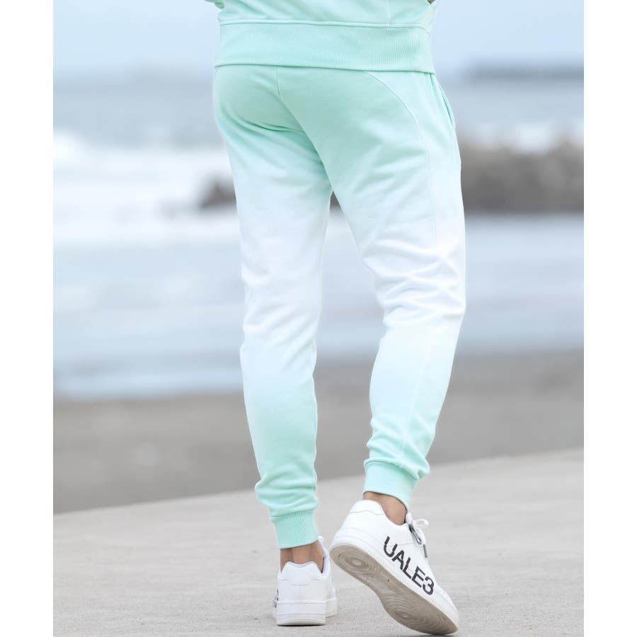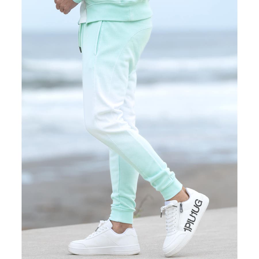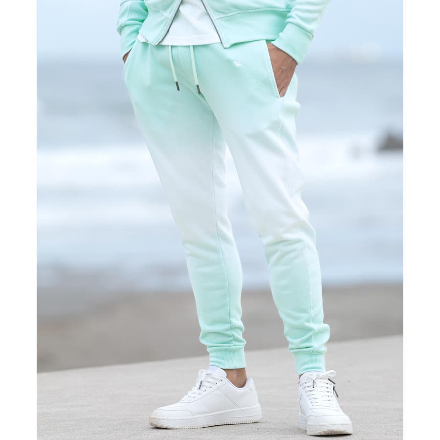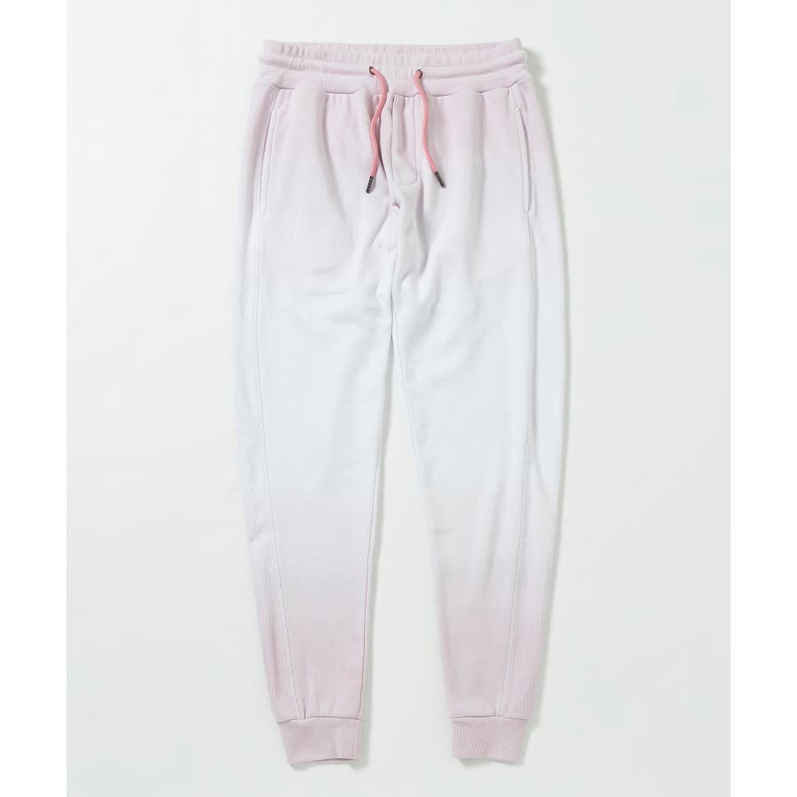 ペールカラーからホワイトへのグラデーションが華やかに彩るスウェットジョグパンツ。