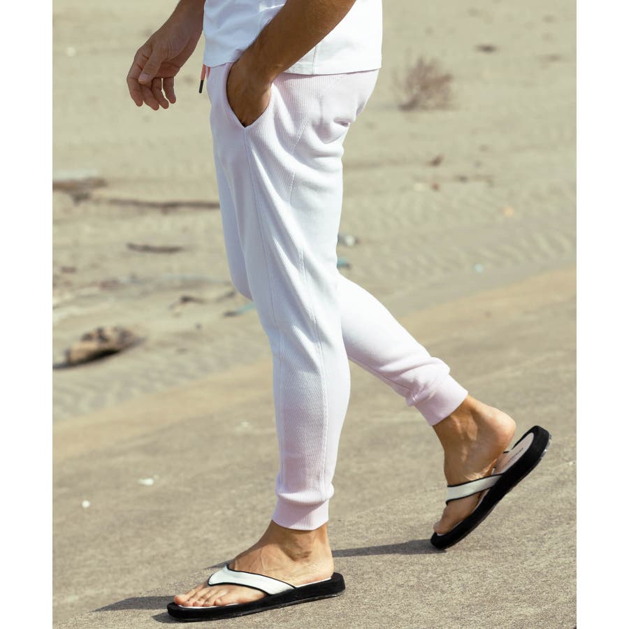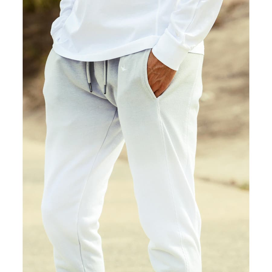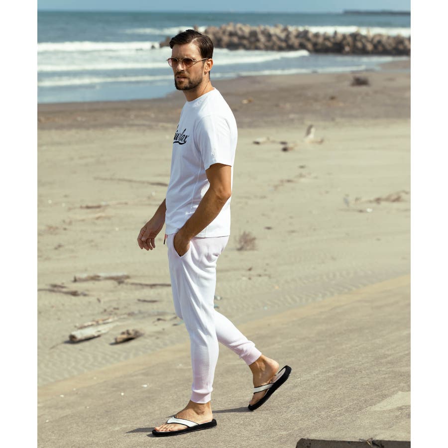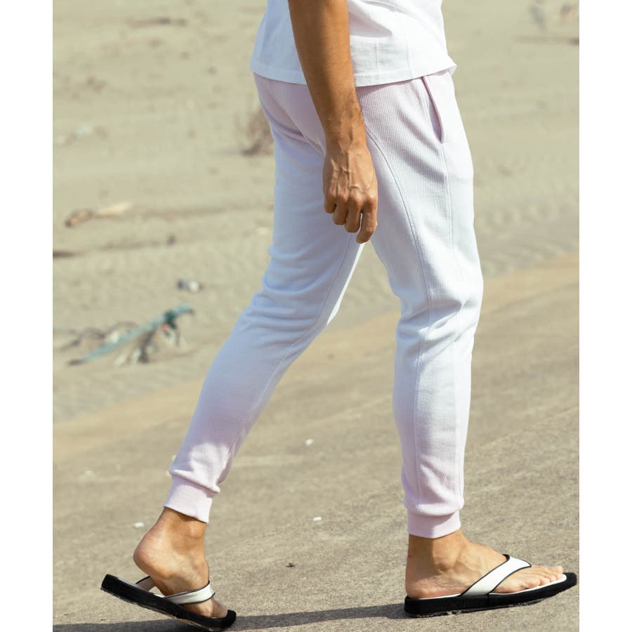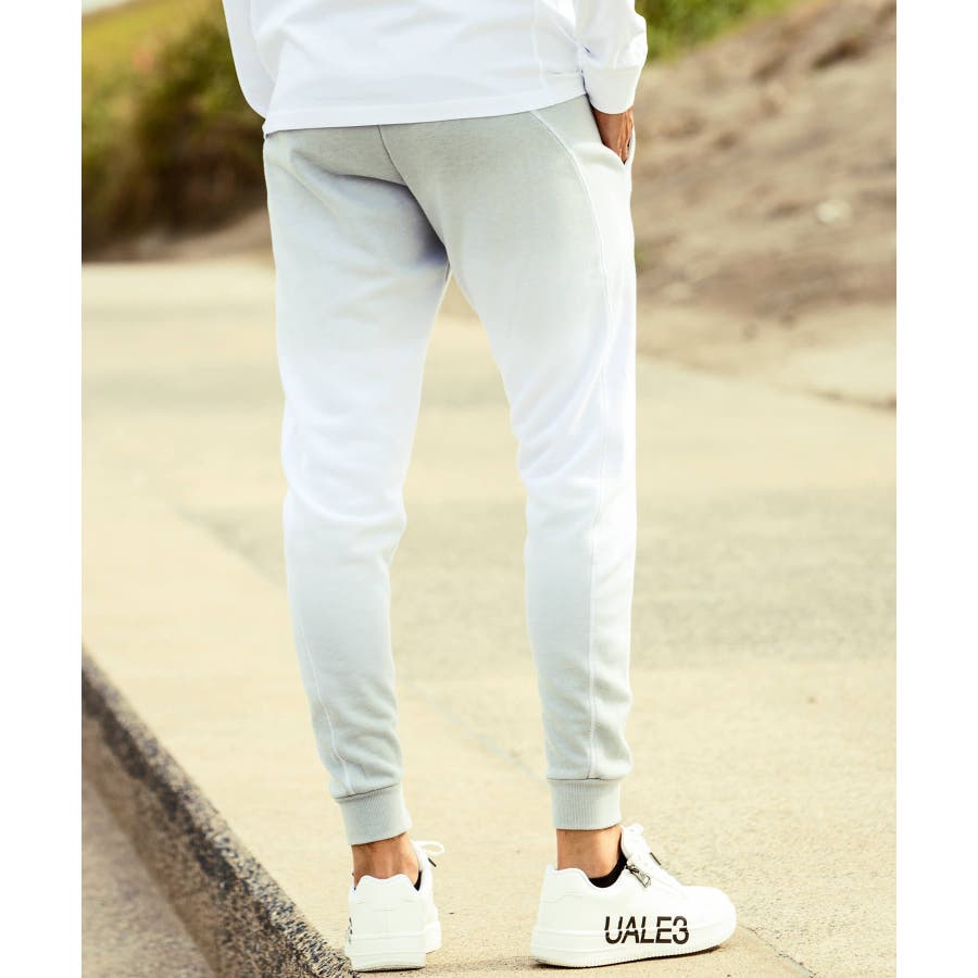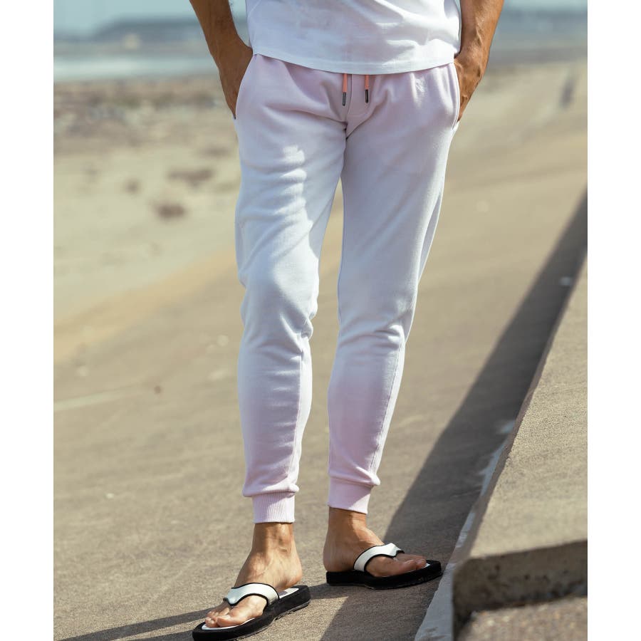ペールカラーからホワイトへのグラデーションが華やかに彩るスウェットジョグパンツ。