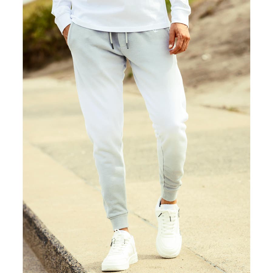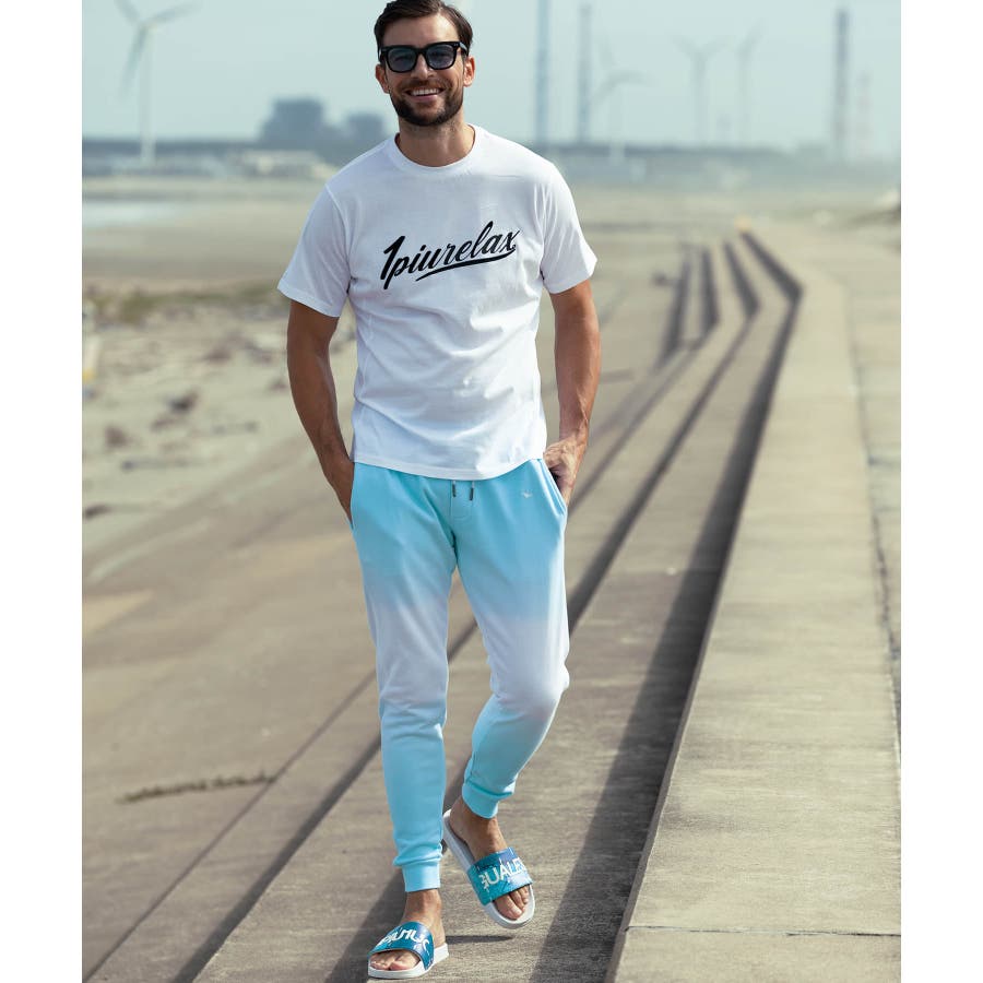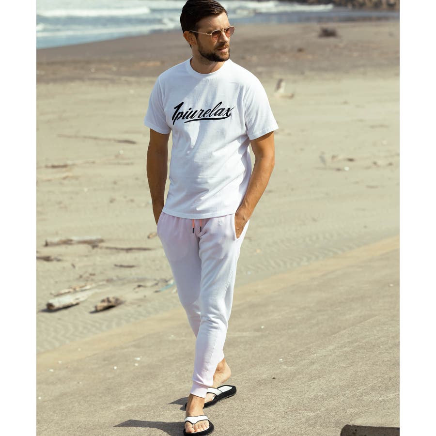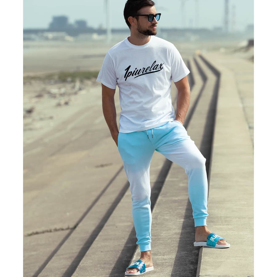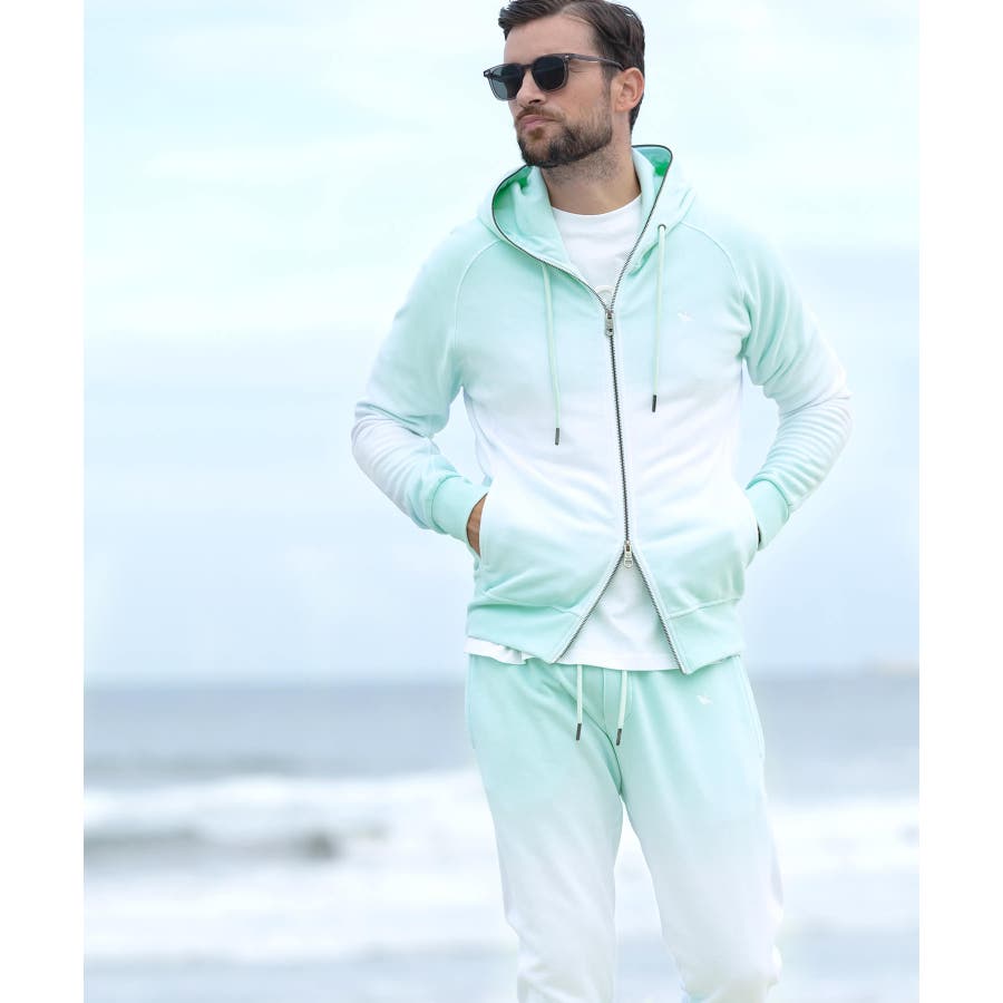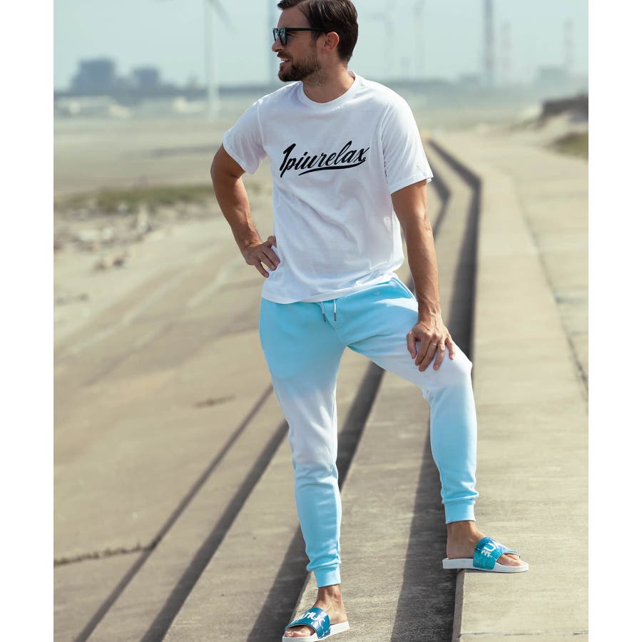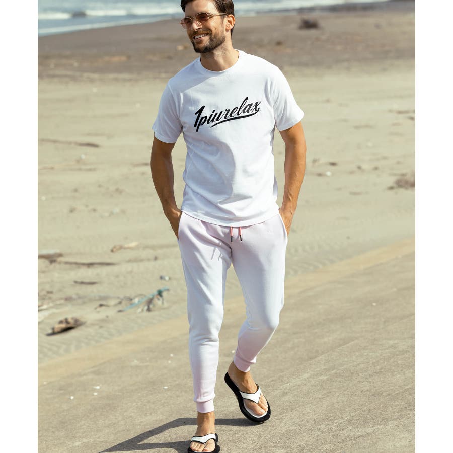 ペールカラーからホワイトへのグラデーションが華やかに彩るスウェットジョグパンツ。