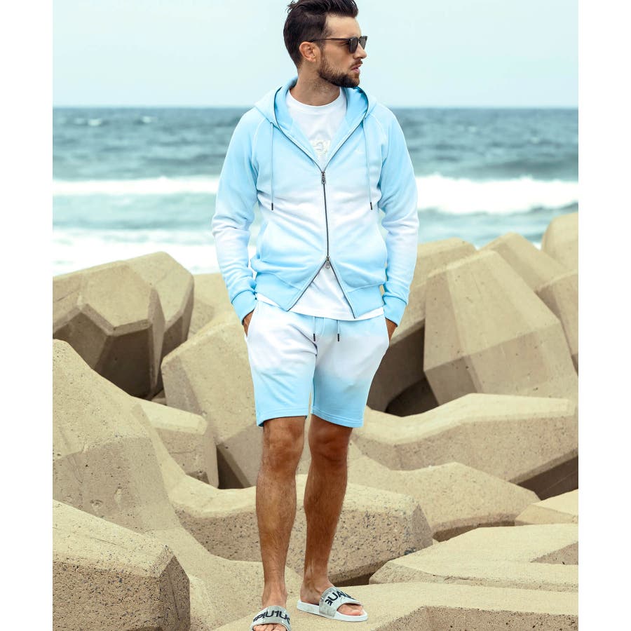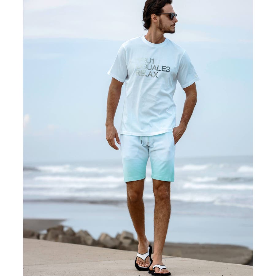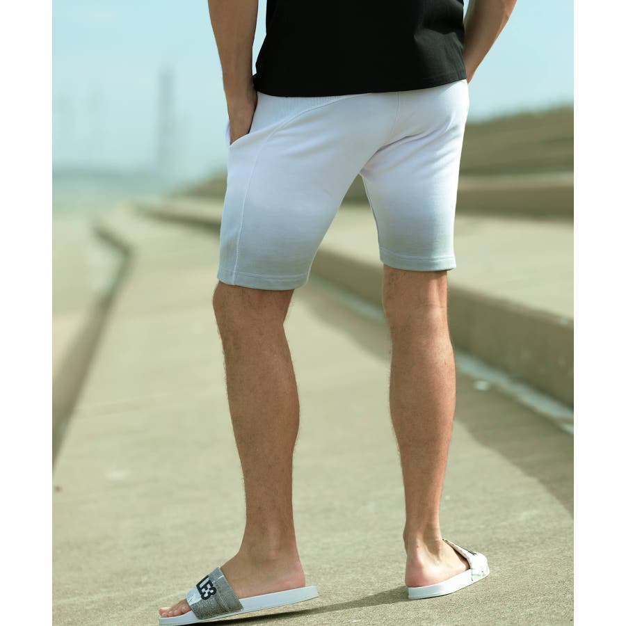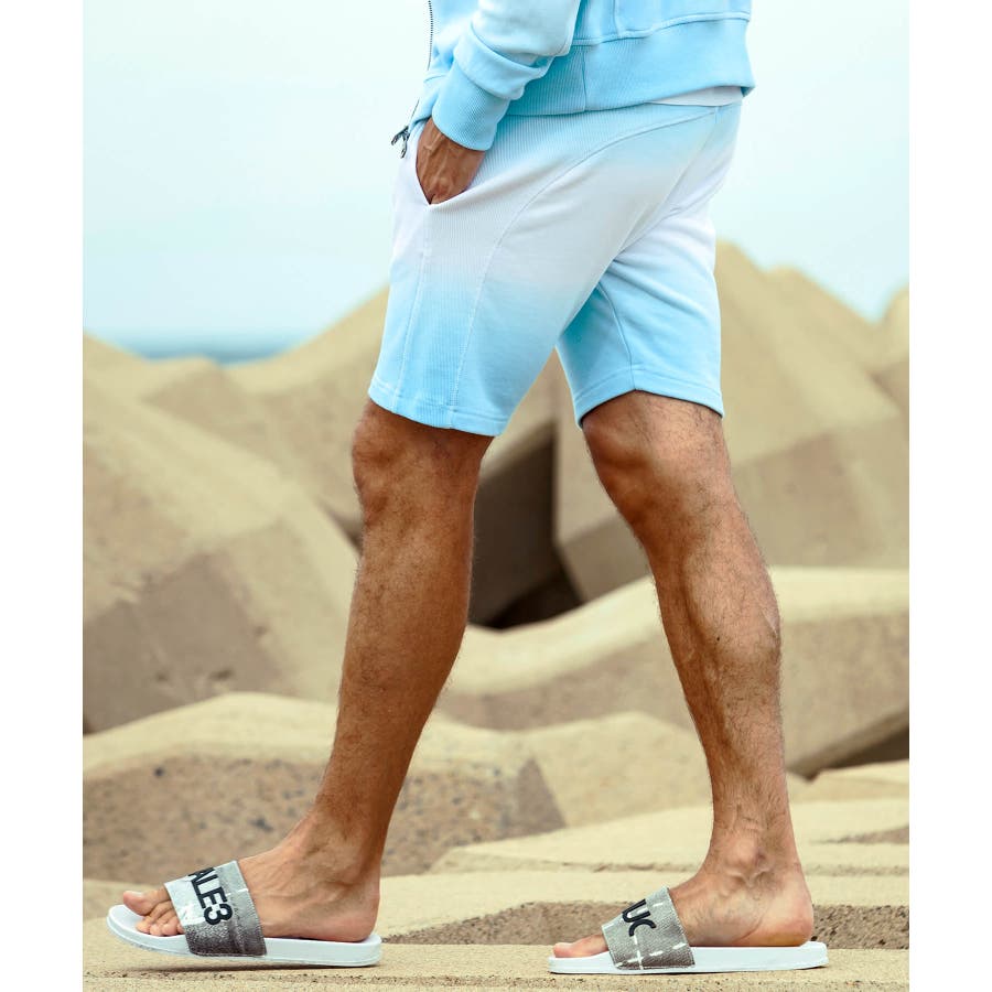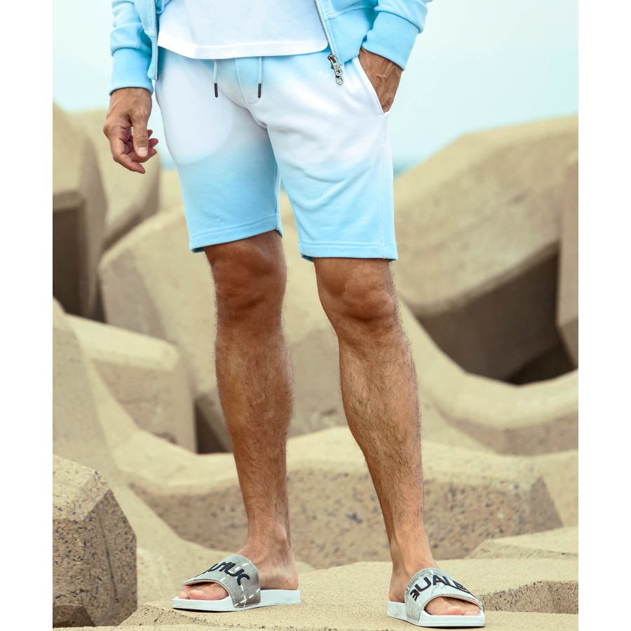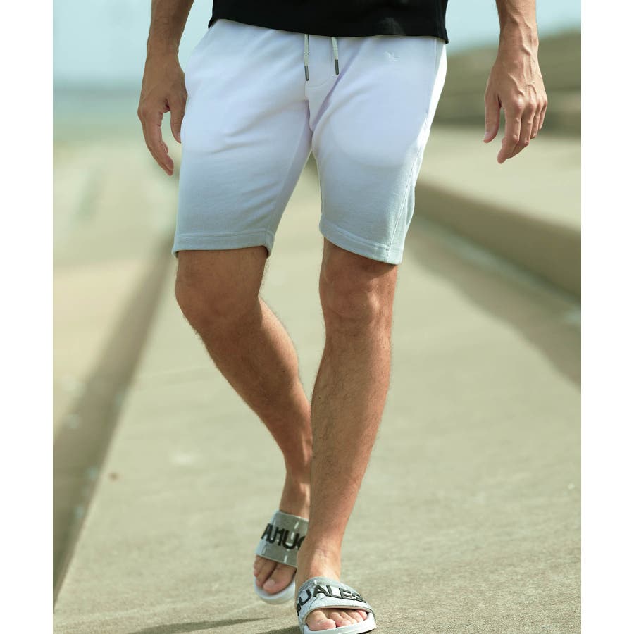 ペールカラーからホワイトへのグラデーションが華やかに彩るスウェットショーツ。