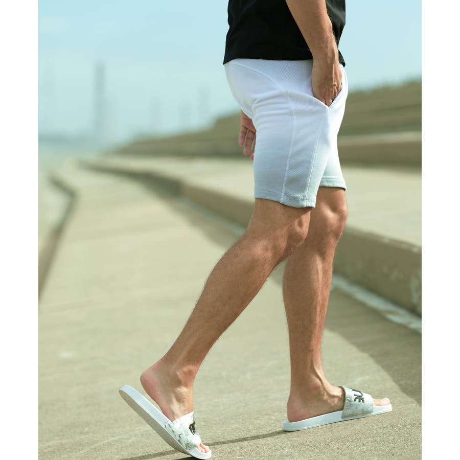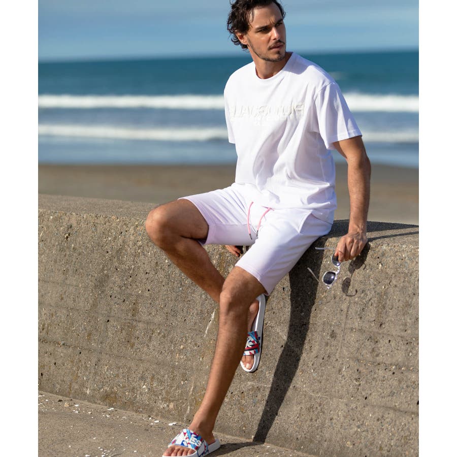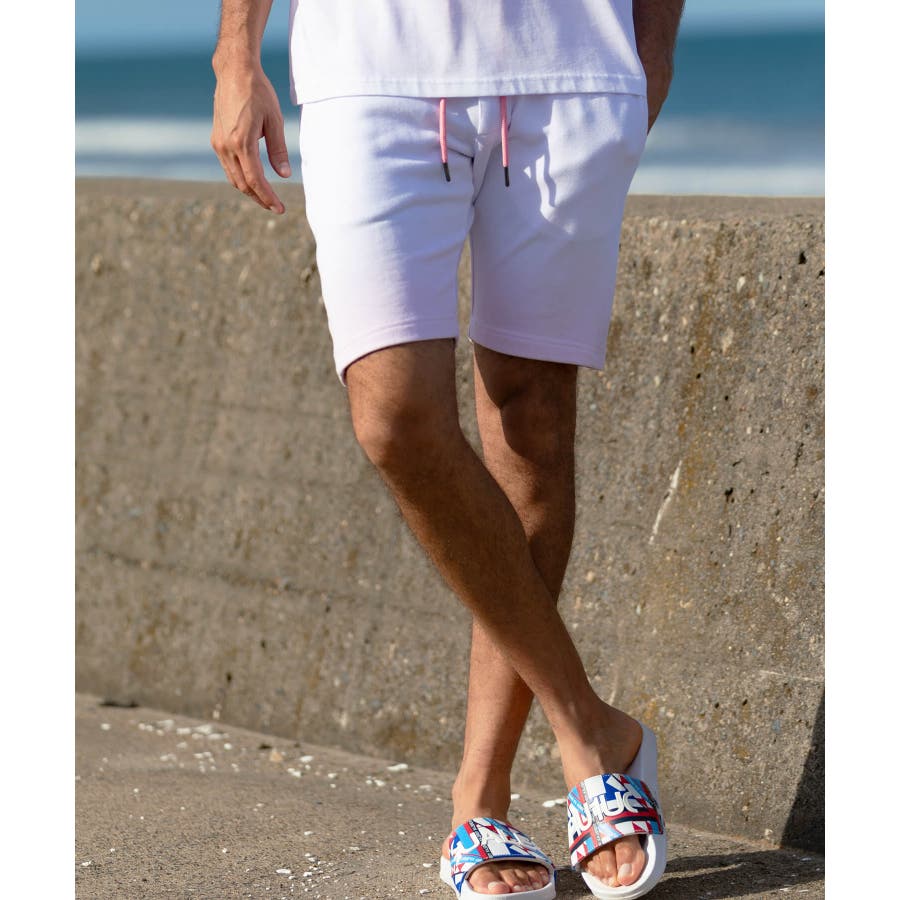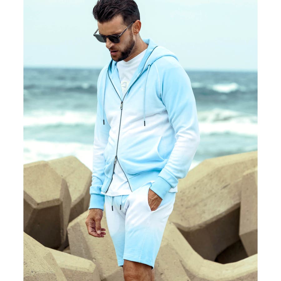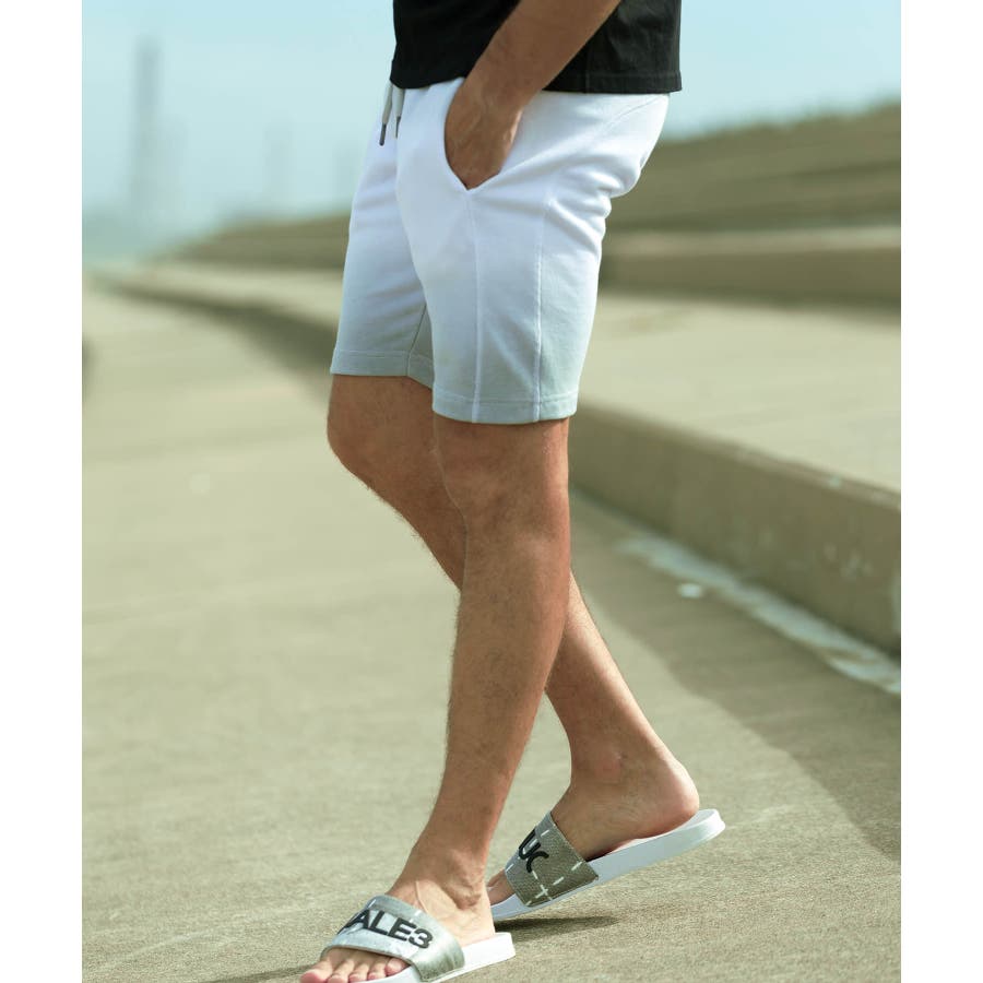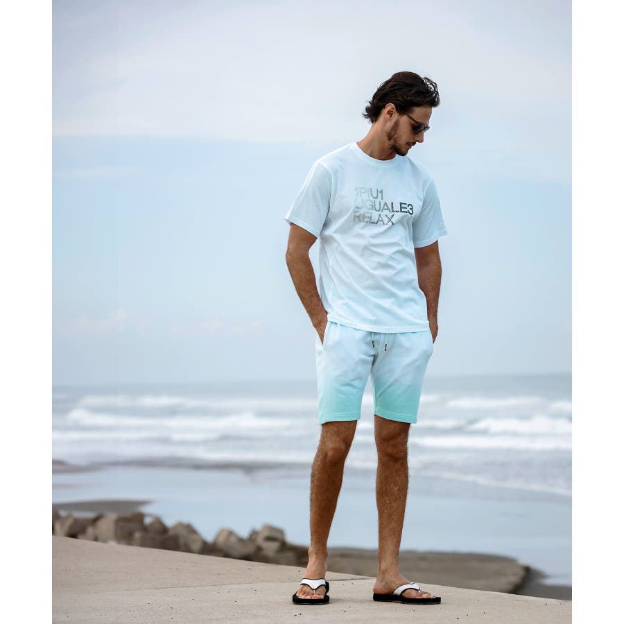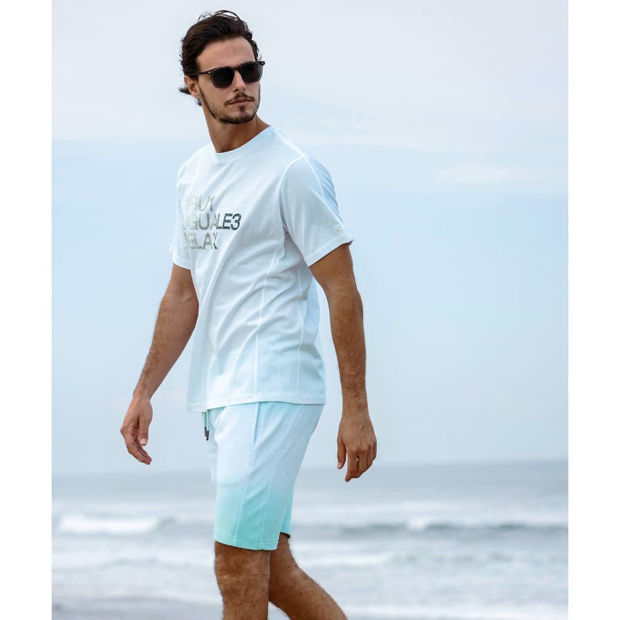 ペールカラーからホワイトへのグラデーションが華やかに彩るスウェットショーツ。