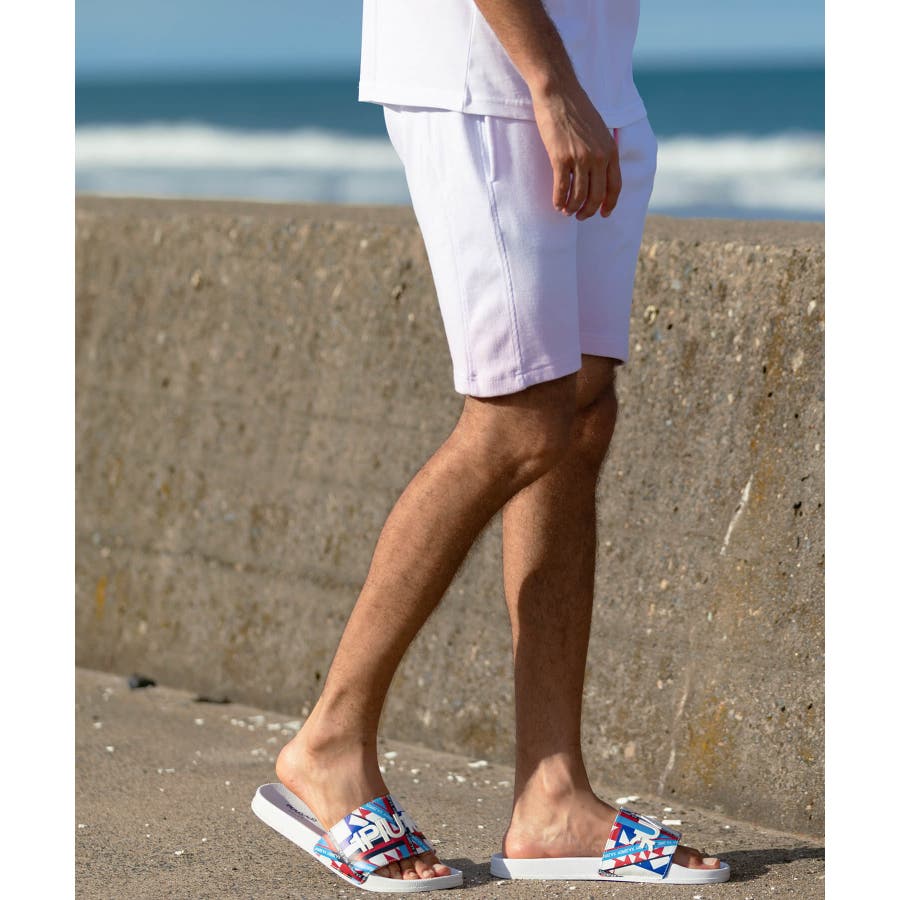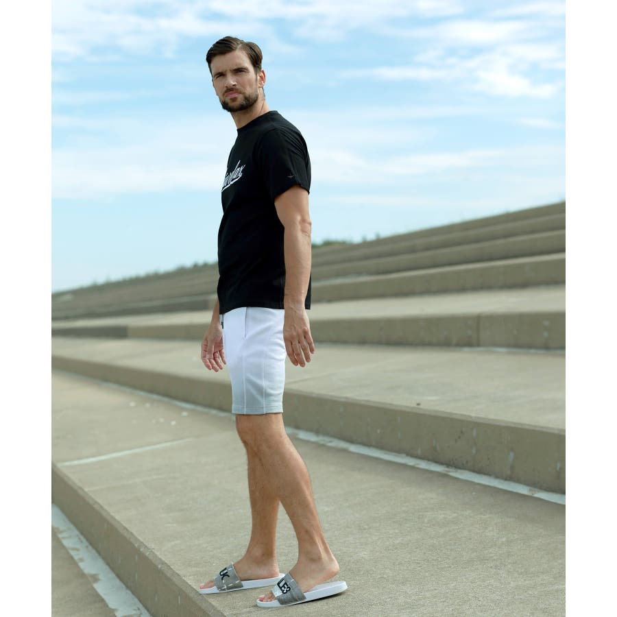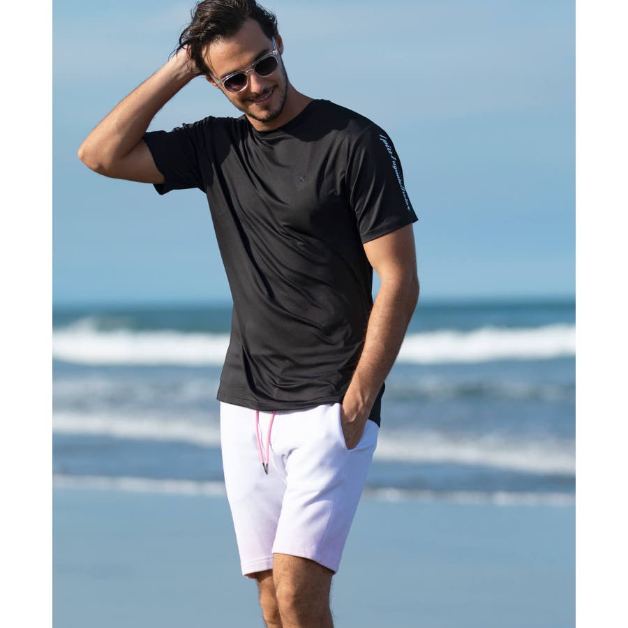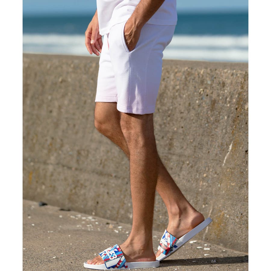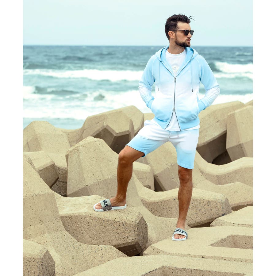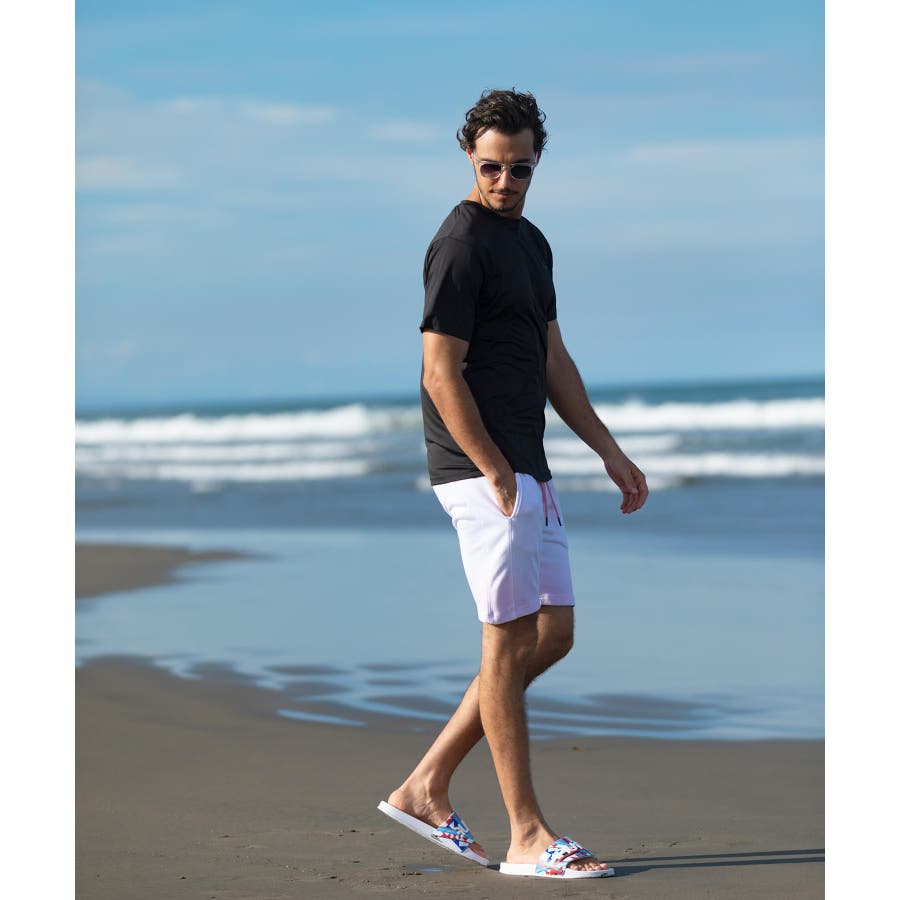 ペールカラーからホワイトへのグラデーションが華やかに彩るスウェットショーツ。