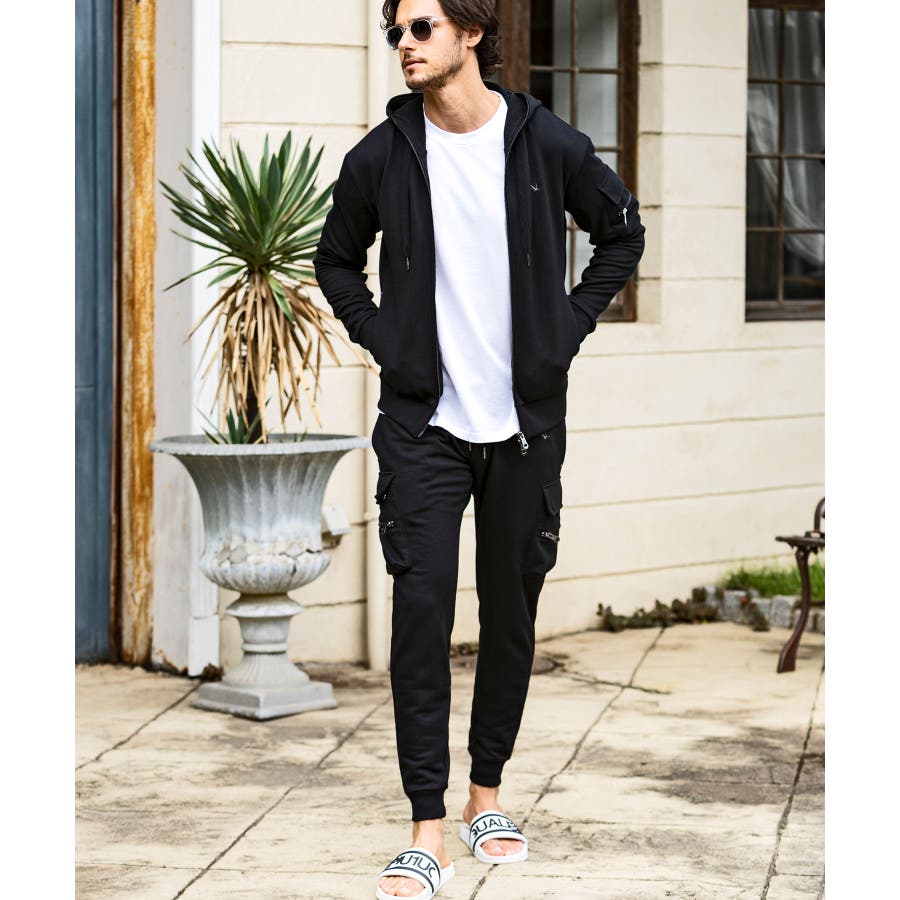 カーゴパンツの持つ男らしい無骨さと、スウェットならではのリラクシングな穿き心地を両立しています。