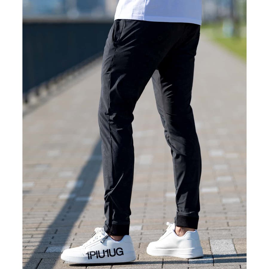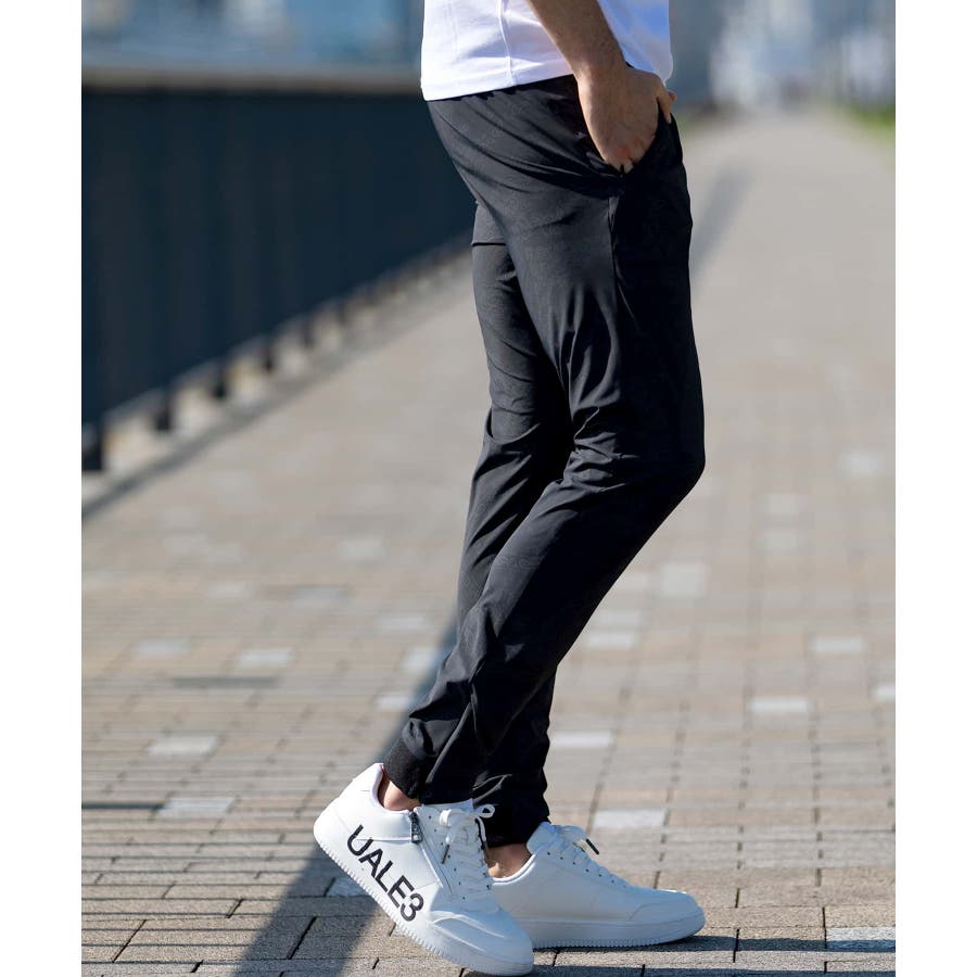 接触冷感機能を備えた生地を採用したロングパンツ。