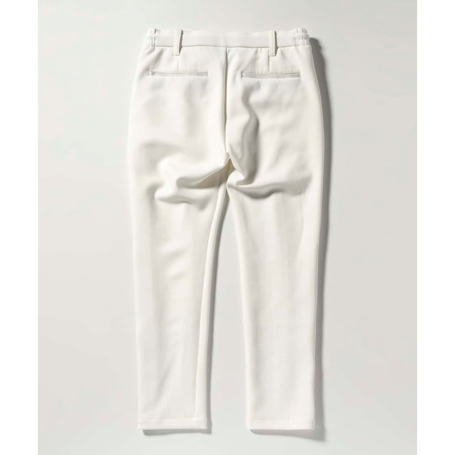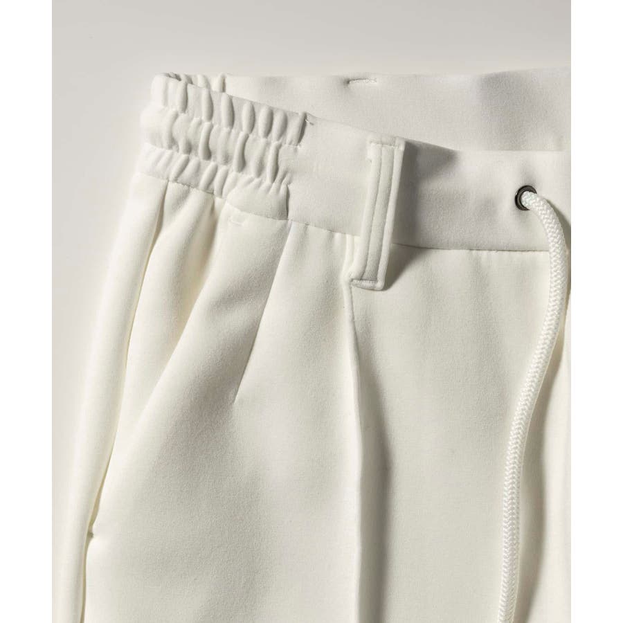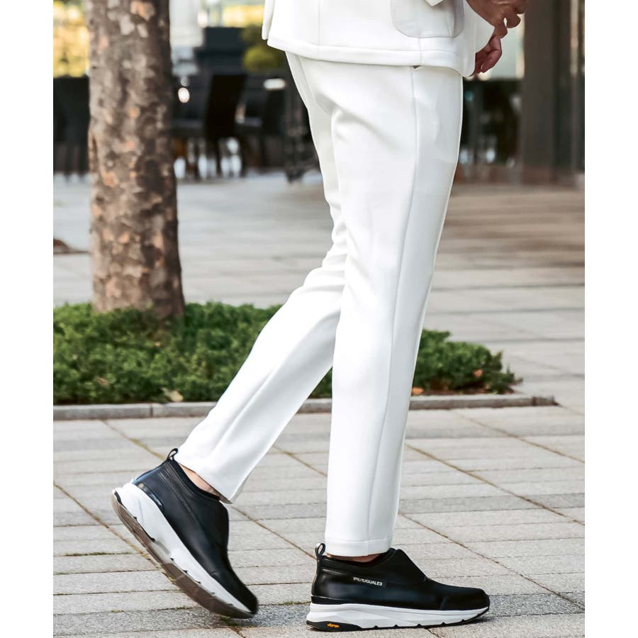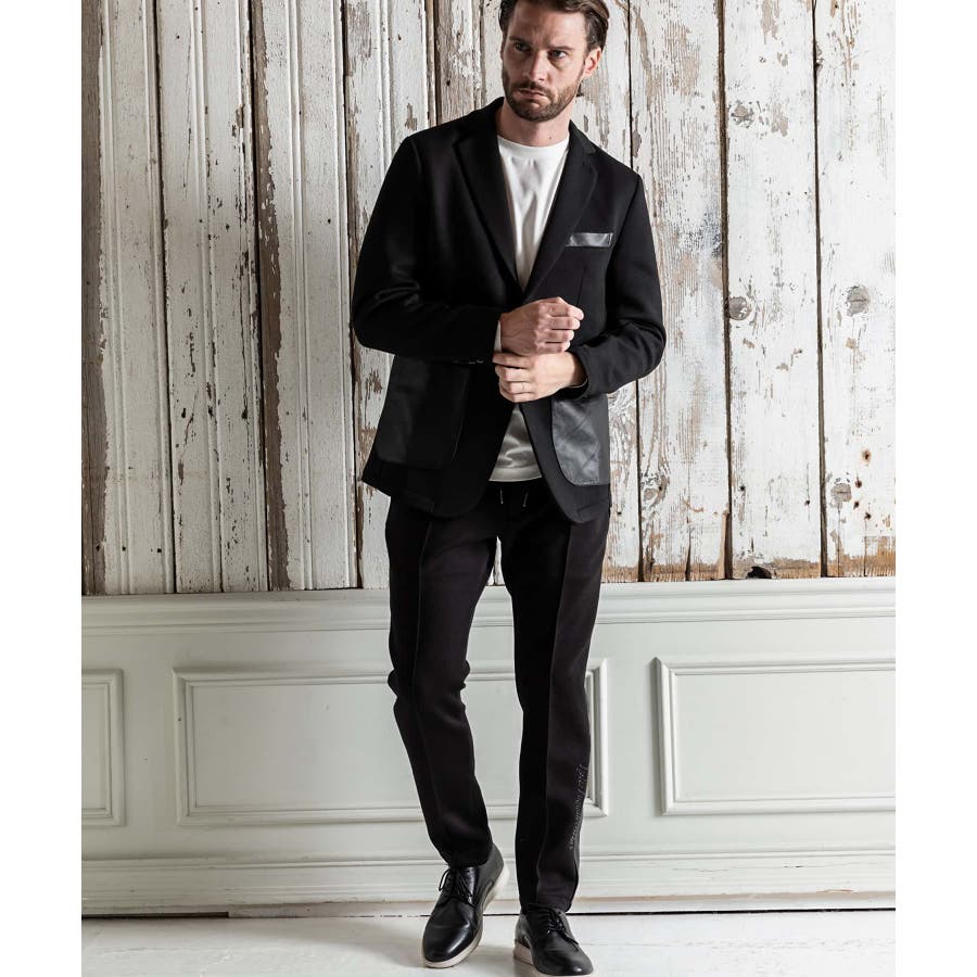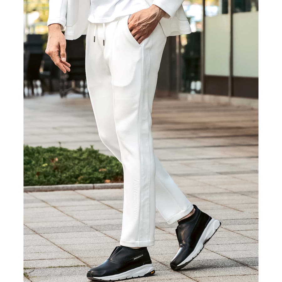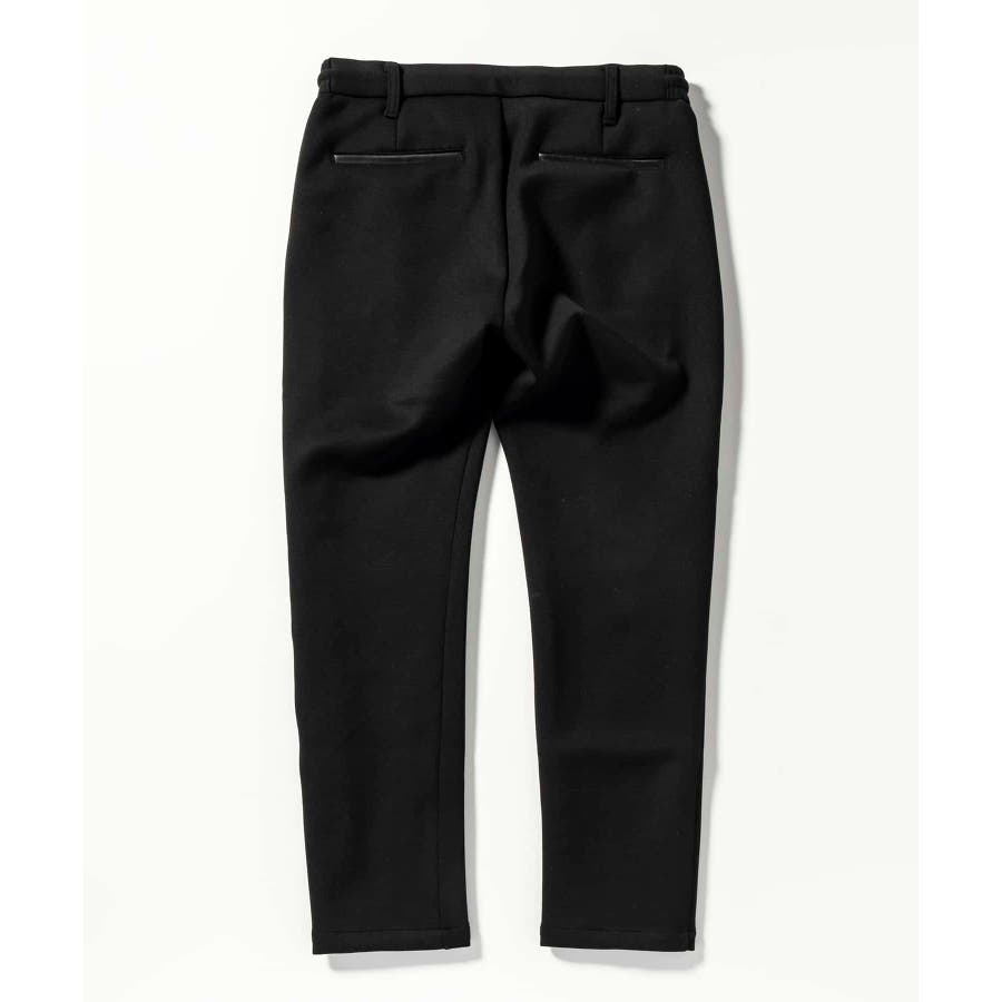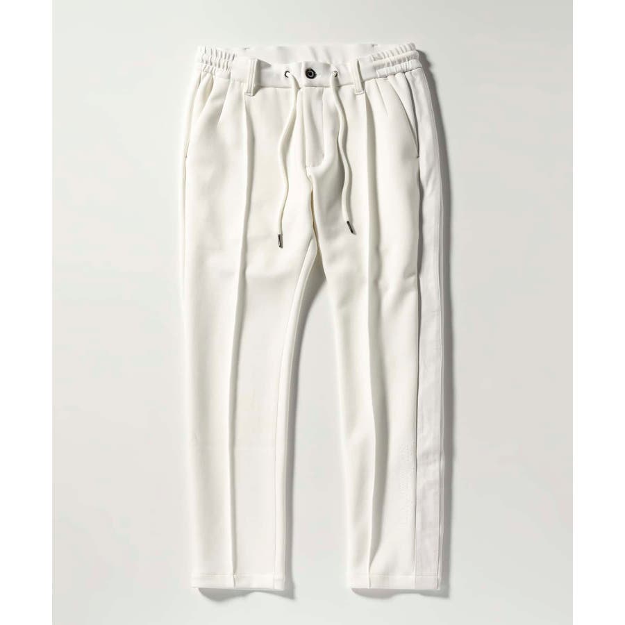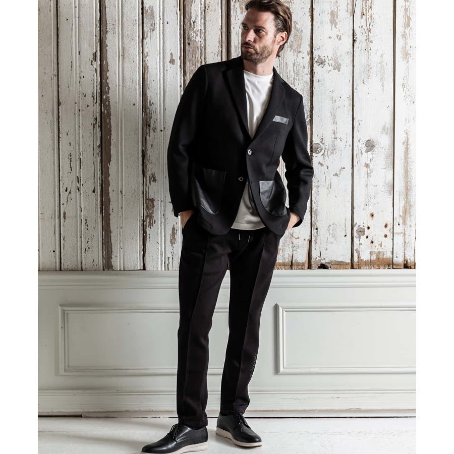 サイド部分にレザーをオンしたロングパンツ。
