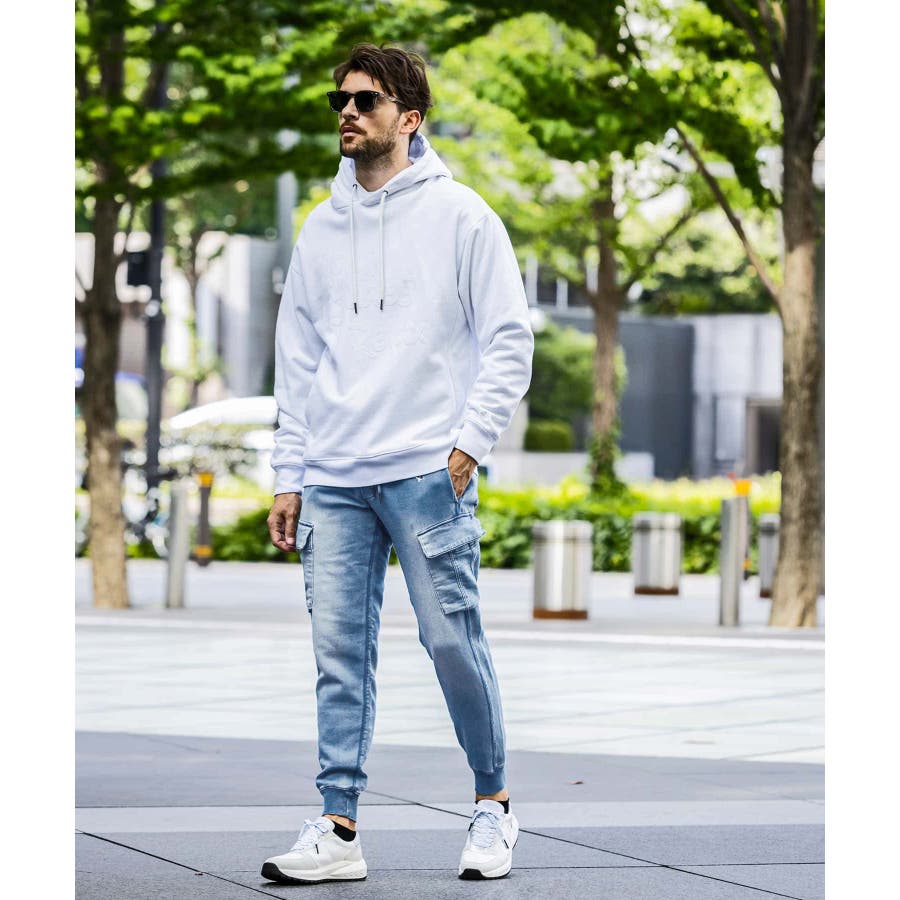 両サイドには人気のカーゴポケットを配置し男らしさも兼ね備えた仕上がりに。