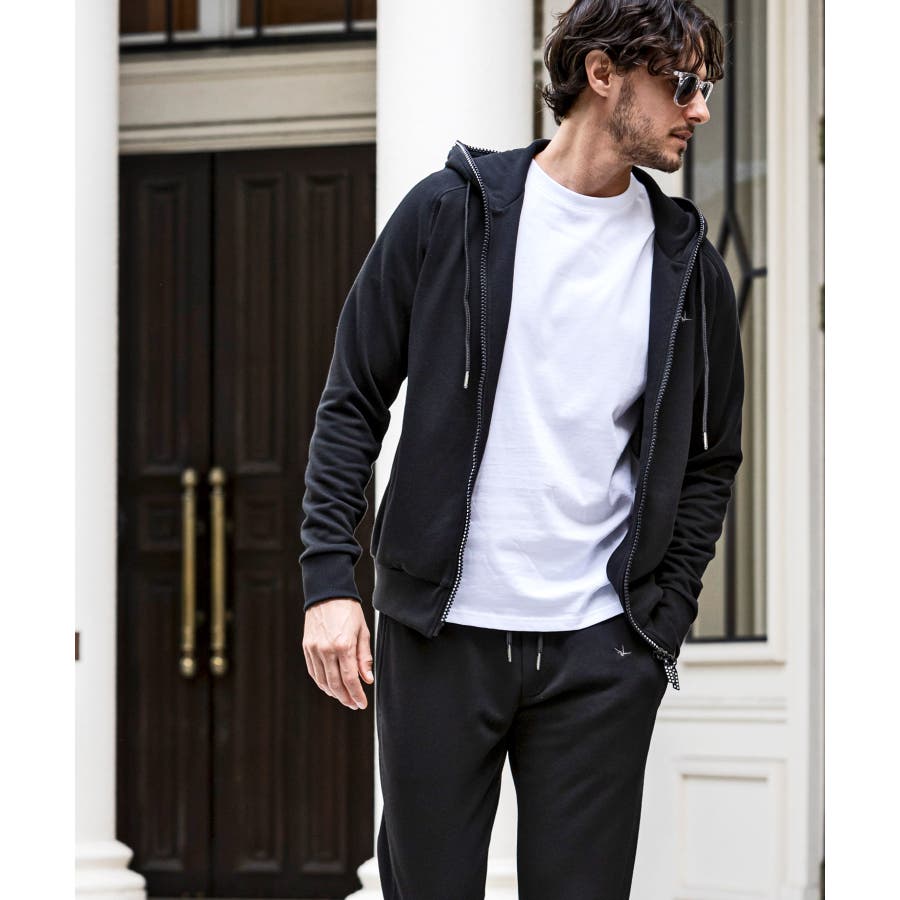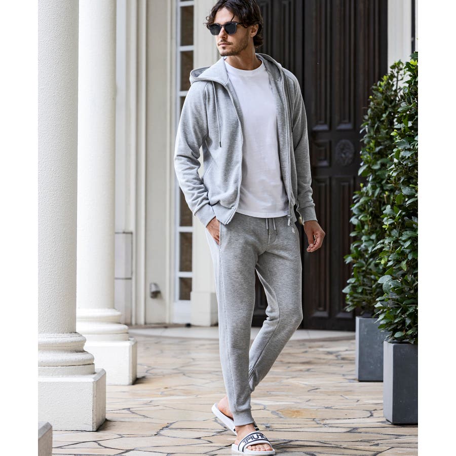 柔らかなスウェット素材で仕立てたロングパンツ。