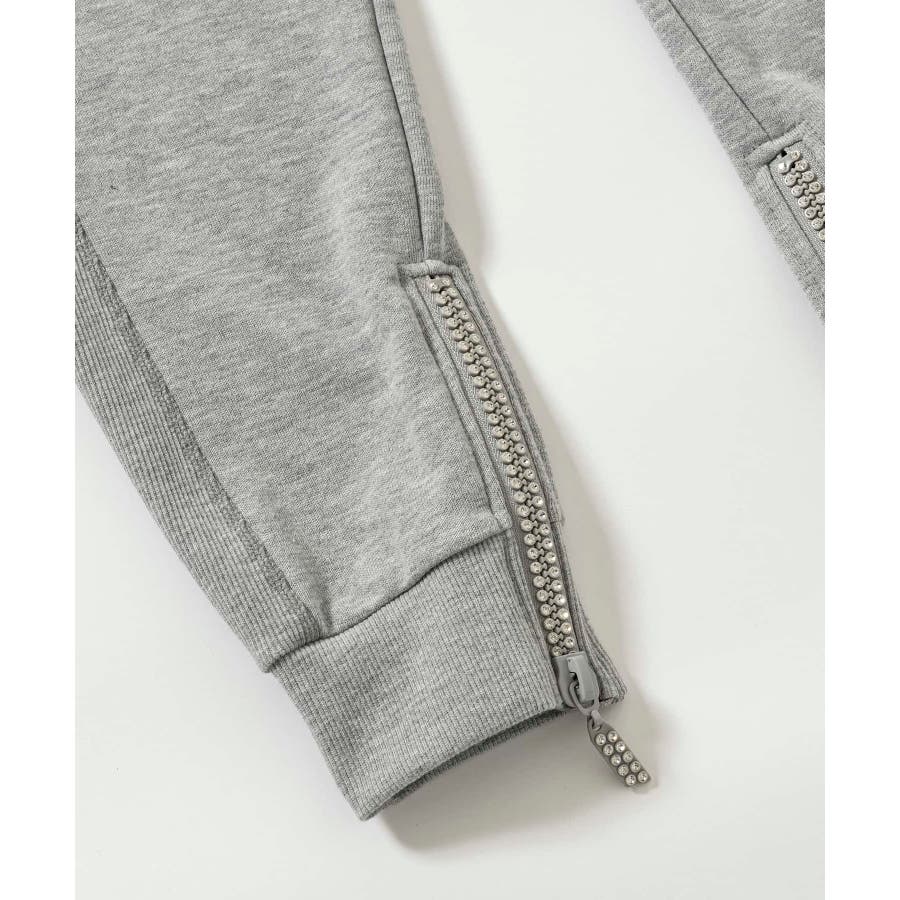 裾に仕込んだファスナーにはラインストーンを贅沢に使用。