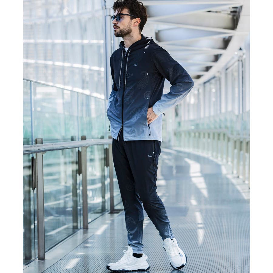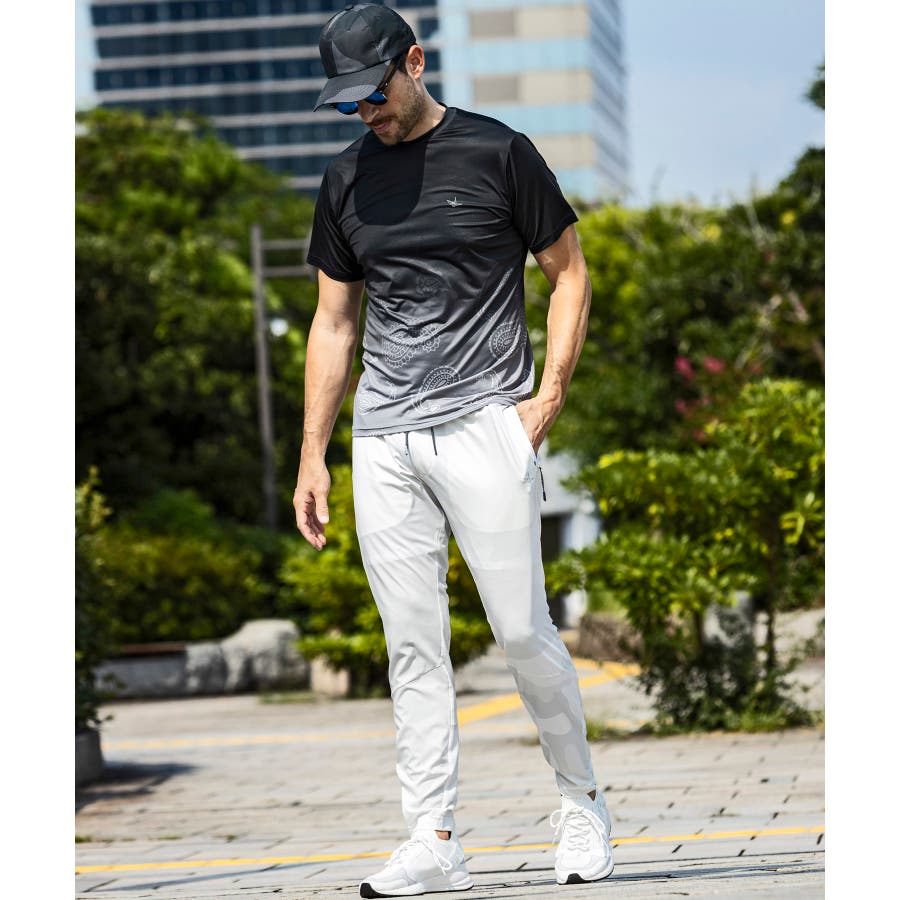 アクティブに適した伸縮性の高い、吸水速乾混率素材を使用しており、大きいカモ柄/ペイズリー柄は着用しやすい程よいグラデーション。