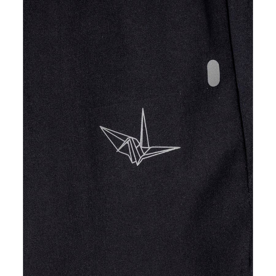 腿にブランドアイコン「折り鶴」や、ドローコードにも反射性能を備えています。