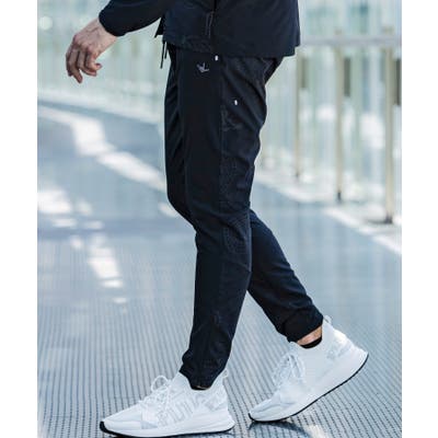 アクティブに適した伸縮性の高い、吸水速乾混率素材を使用しており、テーパードされた3D立体パターンでスタイリッシュなランニングを楽しめます。