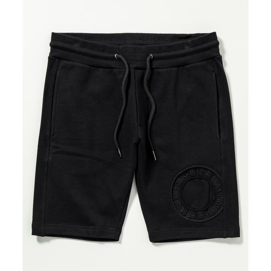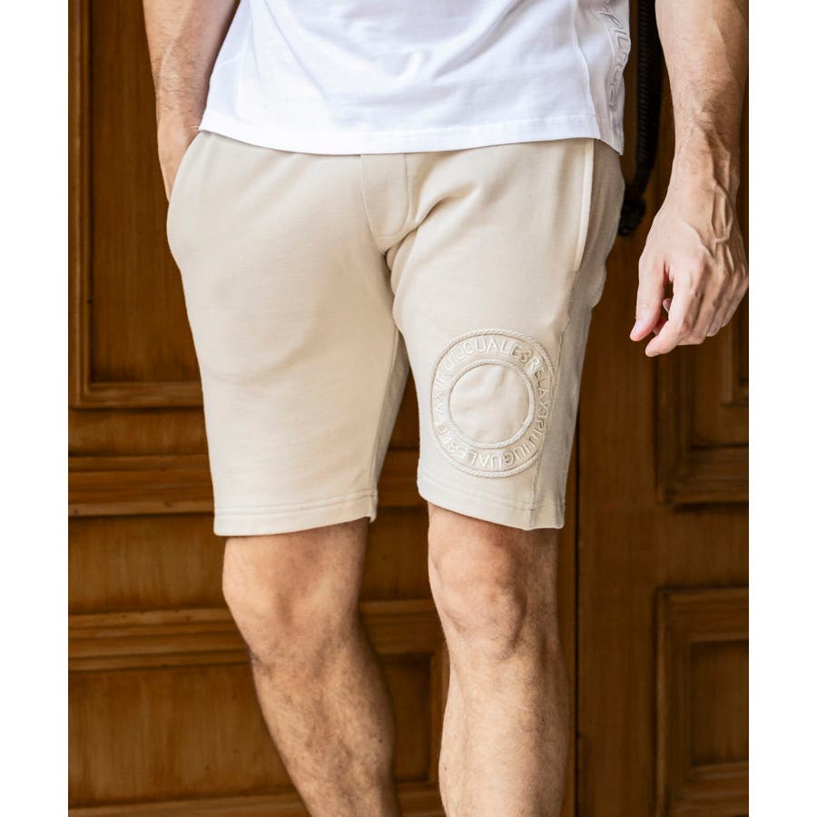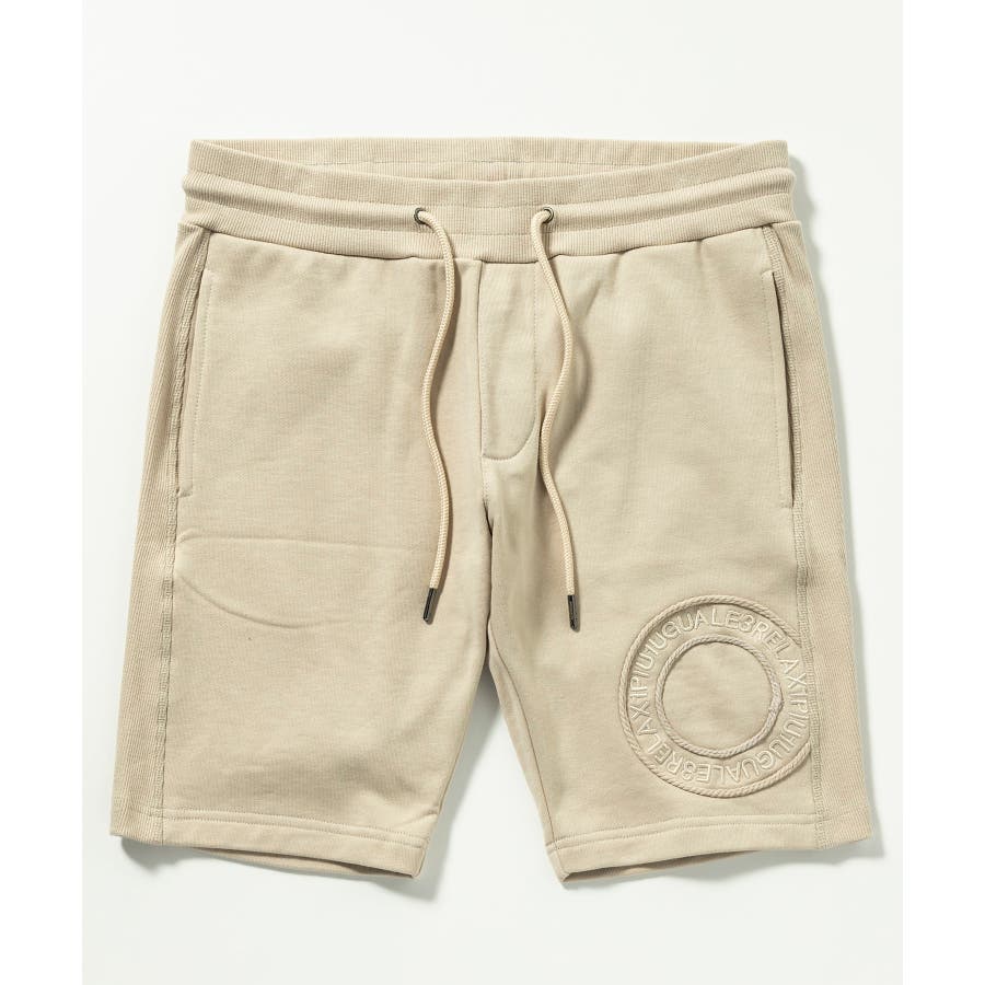 ももに身頃同色系のサークルロープ刺繍(コード刺繍)と、内側には身頃同色系グラデーション刺繍ロゴを配置したデザインになっています。