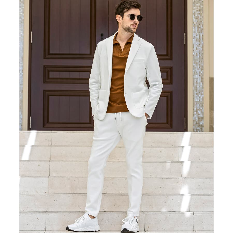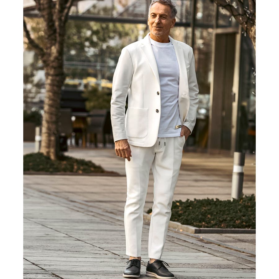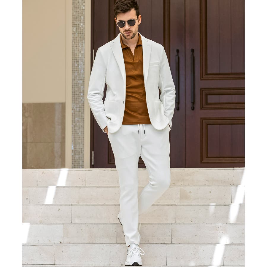 同生地のジャケット(uso-25096)と合わせればワンランク上のセットアップスタイルの完成です。