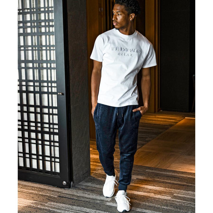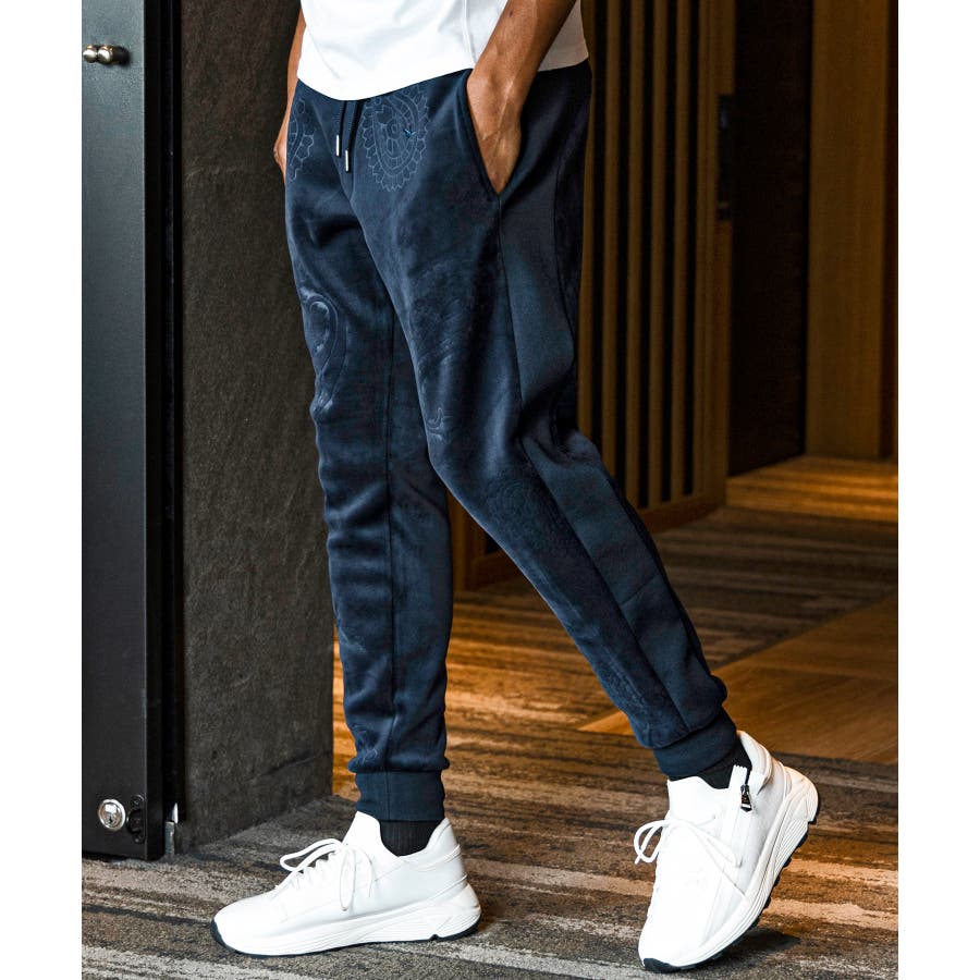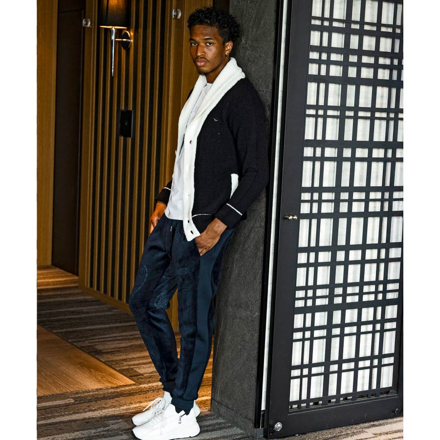 カジュアルなジョガーパンツの形に落とし込みながら、ラグジュアリーな佇まいを両立しました。