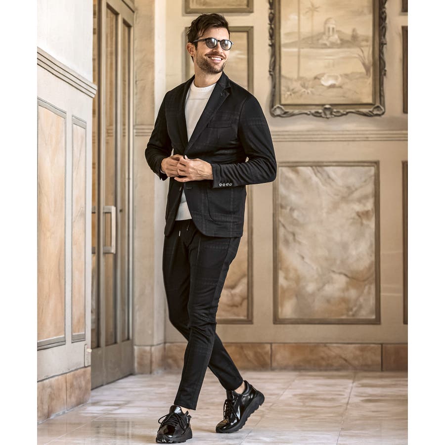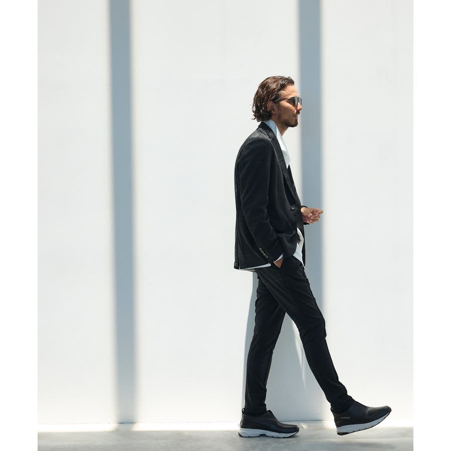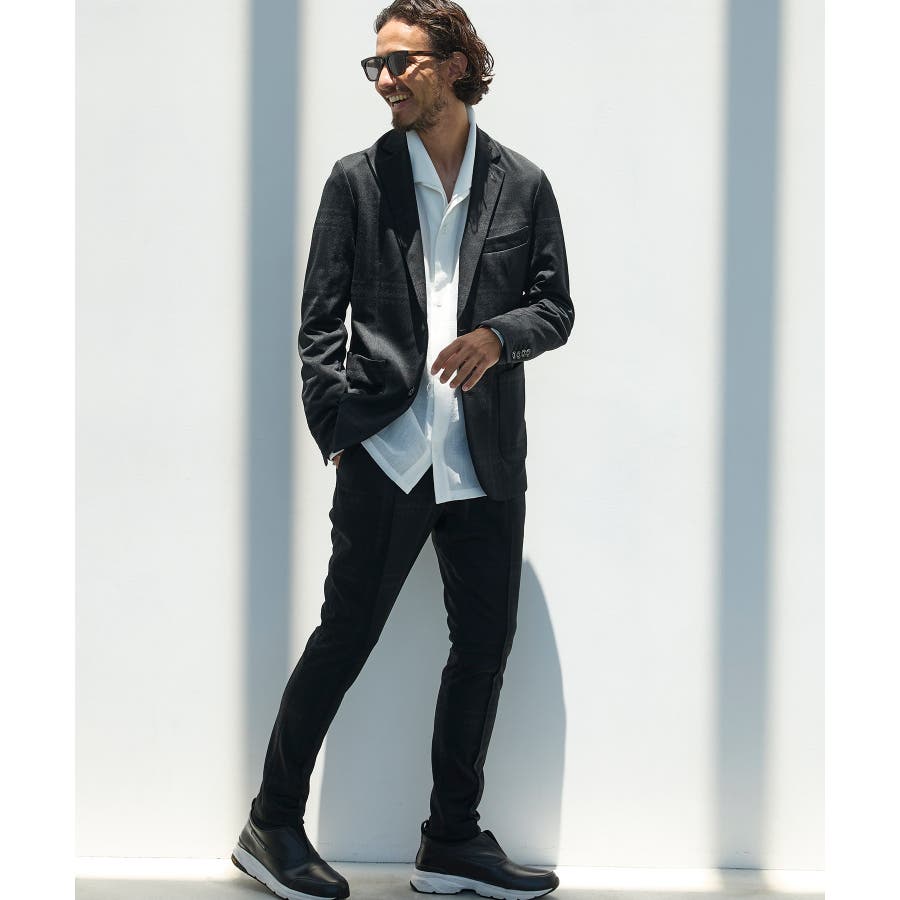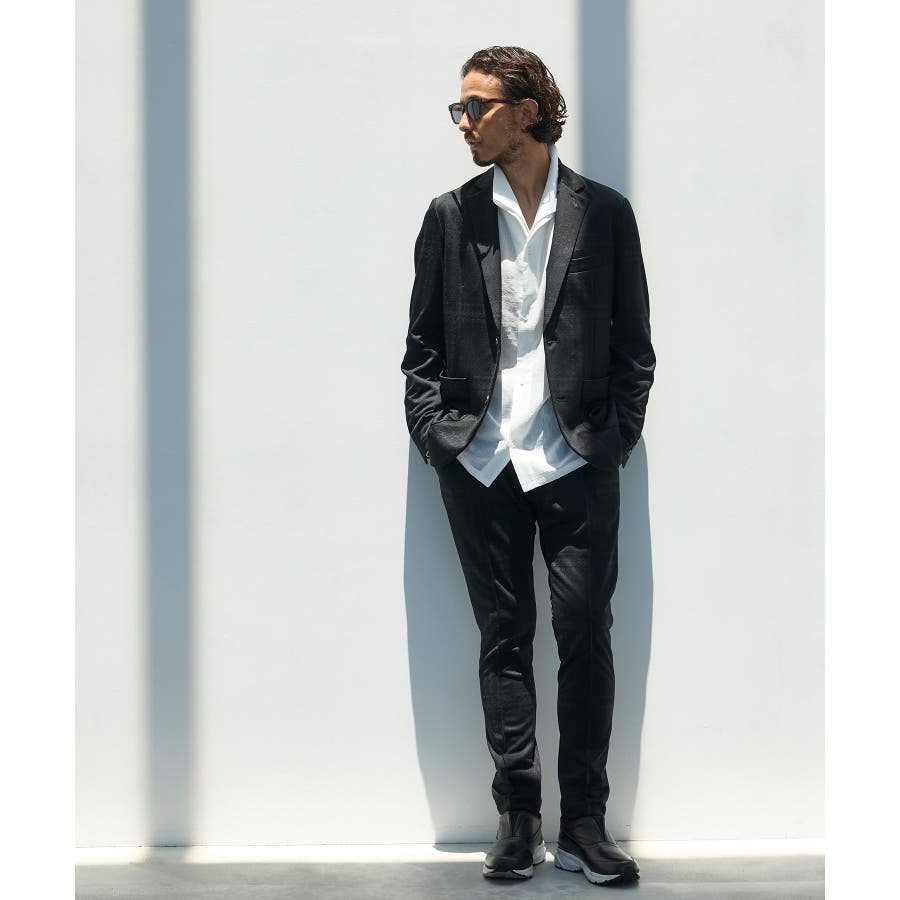 ストレッチ性に優れた生地により、スマートなシルエットとリラックス感を両立。