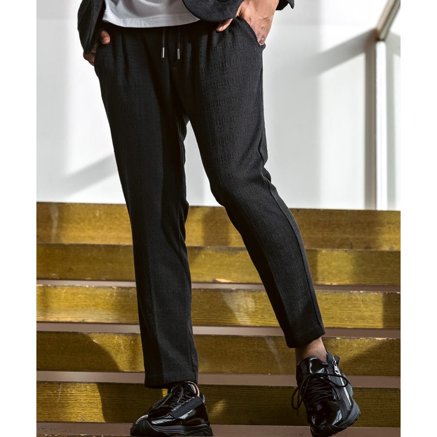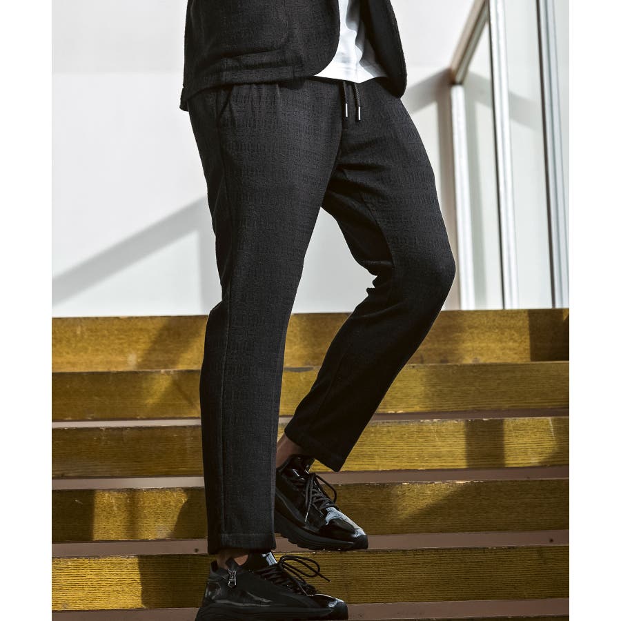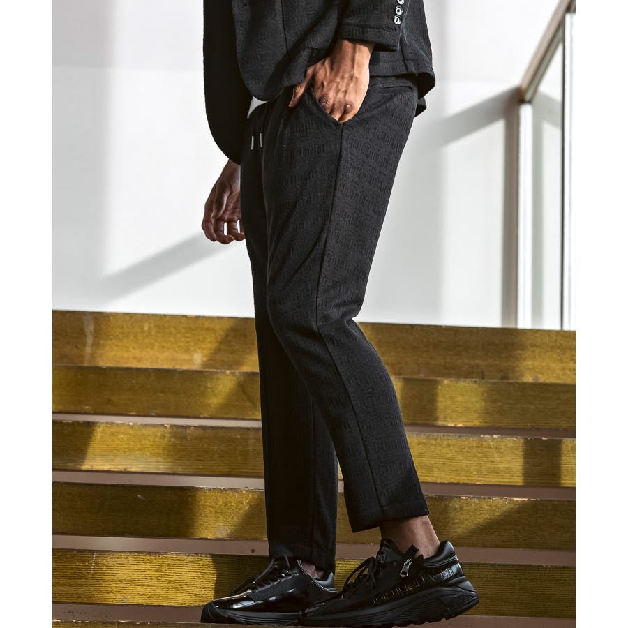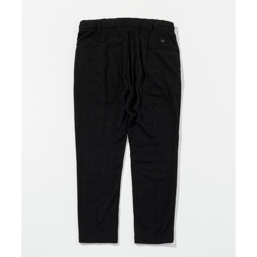 ブランドオリジナルで織り上げたジャガード生地を使用したロングパンツ。