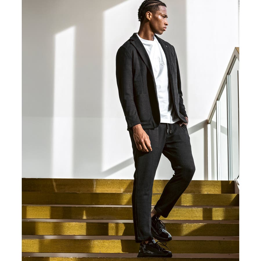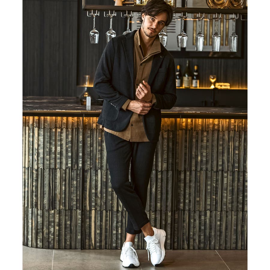 スラックスでありながらリラックス感が漂い、きちんと感と抜け感を絶妙なバランスで兼ね備えています。