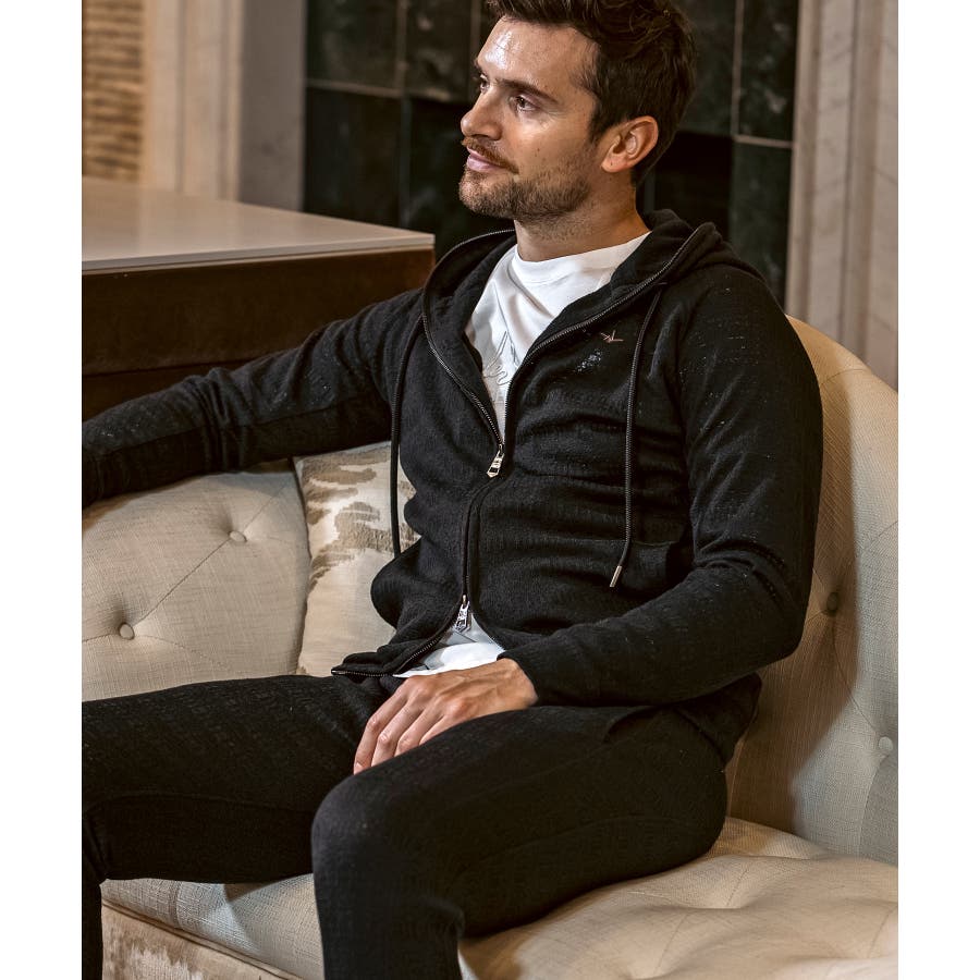同素材のパーカーと組み合わせれば、程よい抜け感と上品さを兼ね備えたセットアップスタイルに。