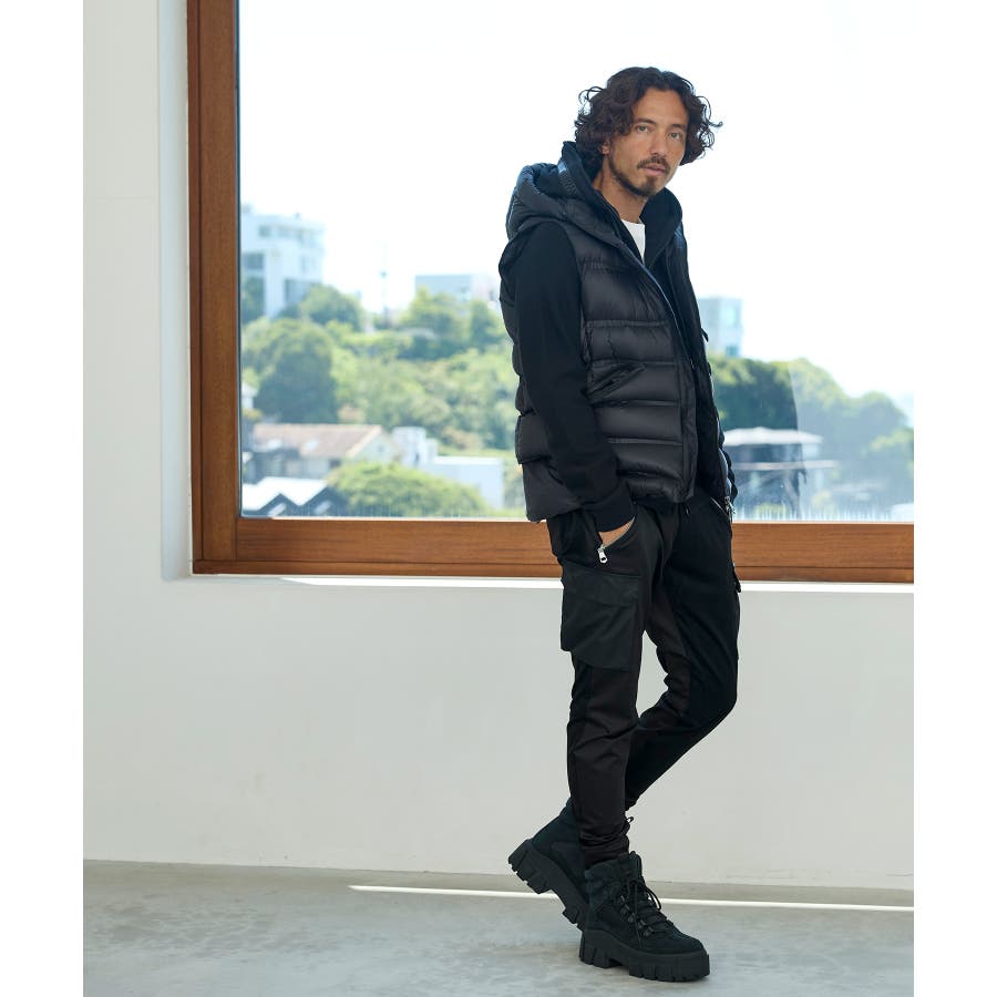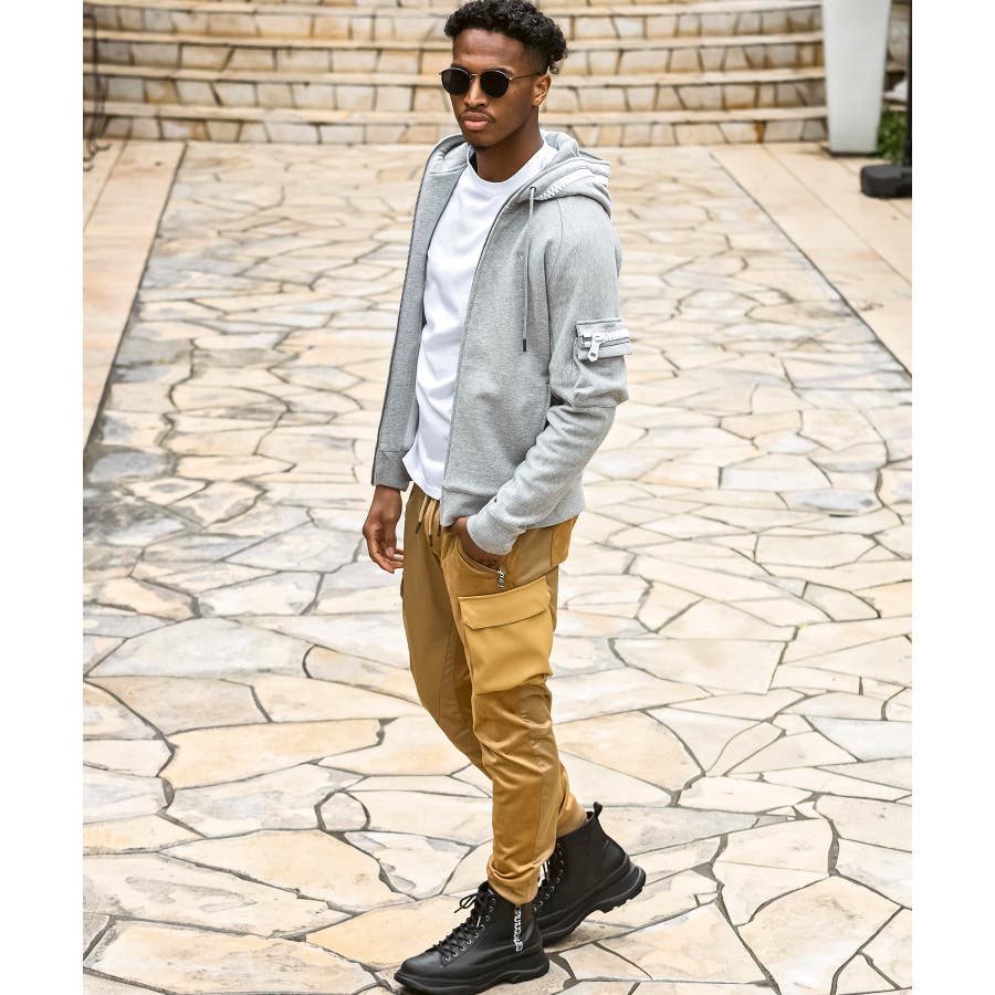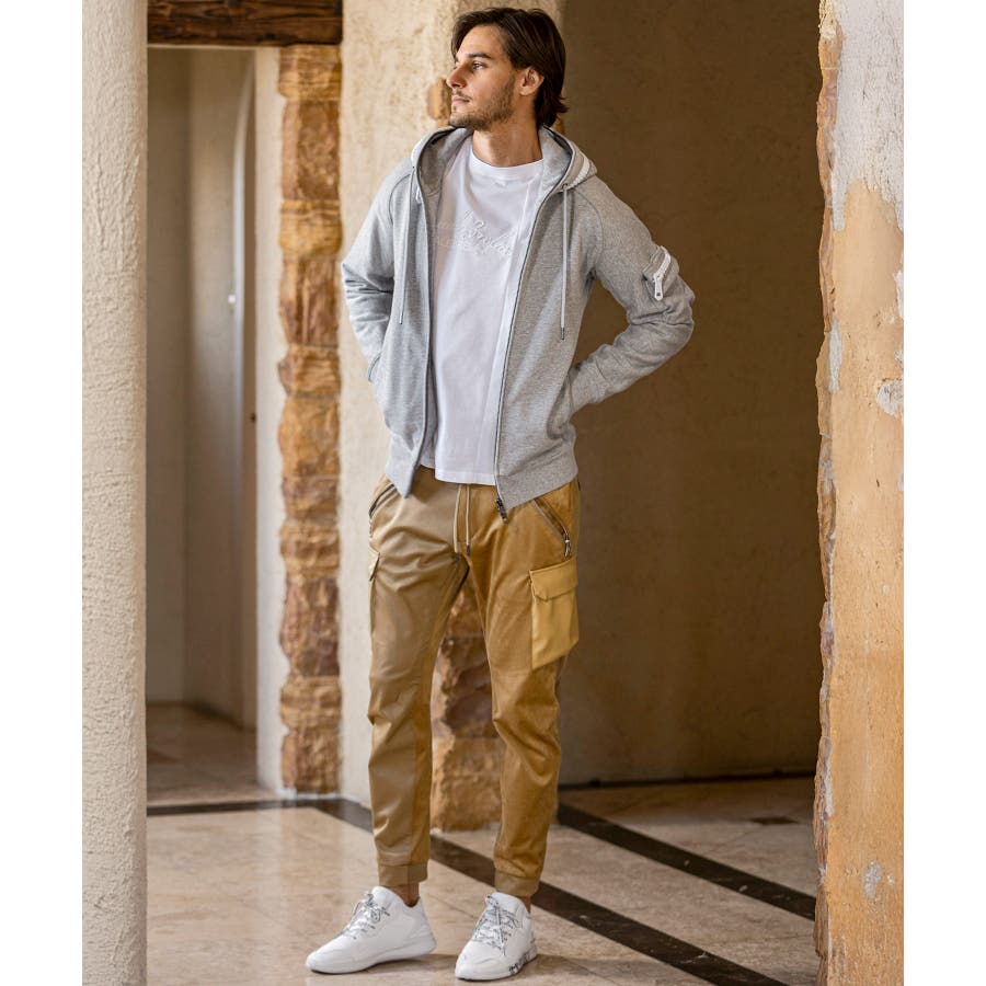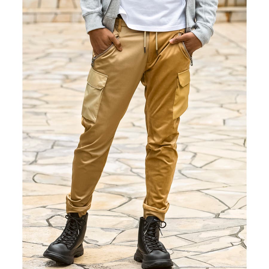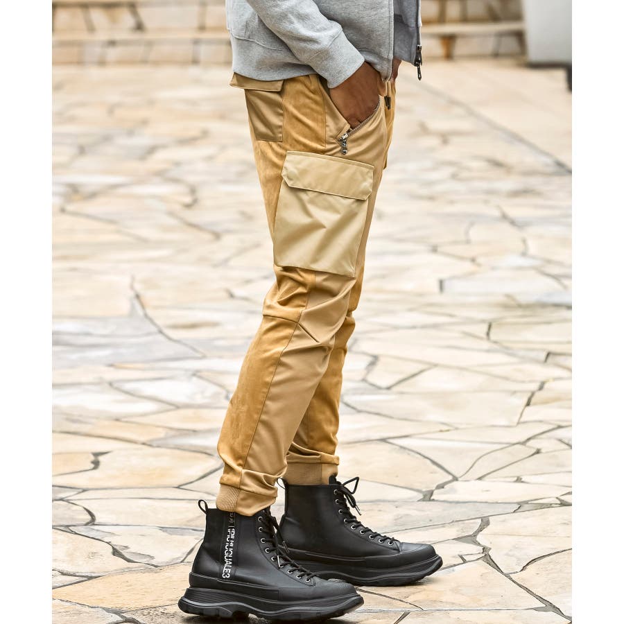 両サイドに配置したカーゴポケットが男らしいミリタリー要素を演出。