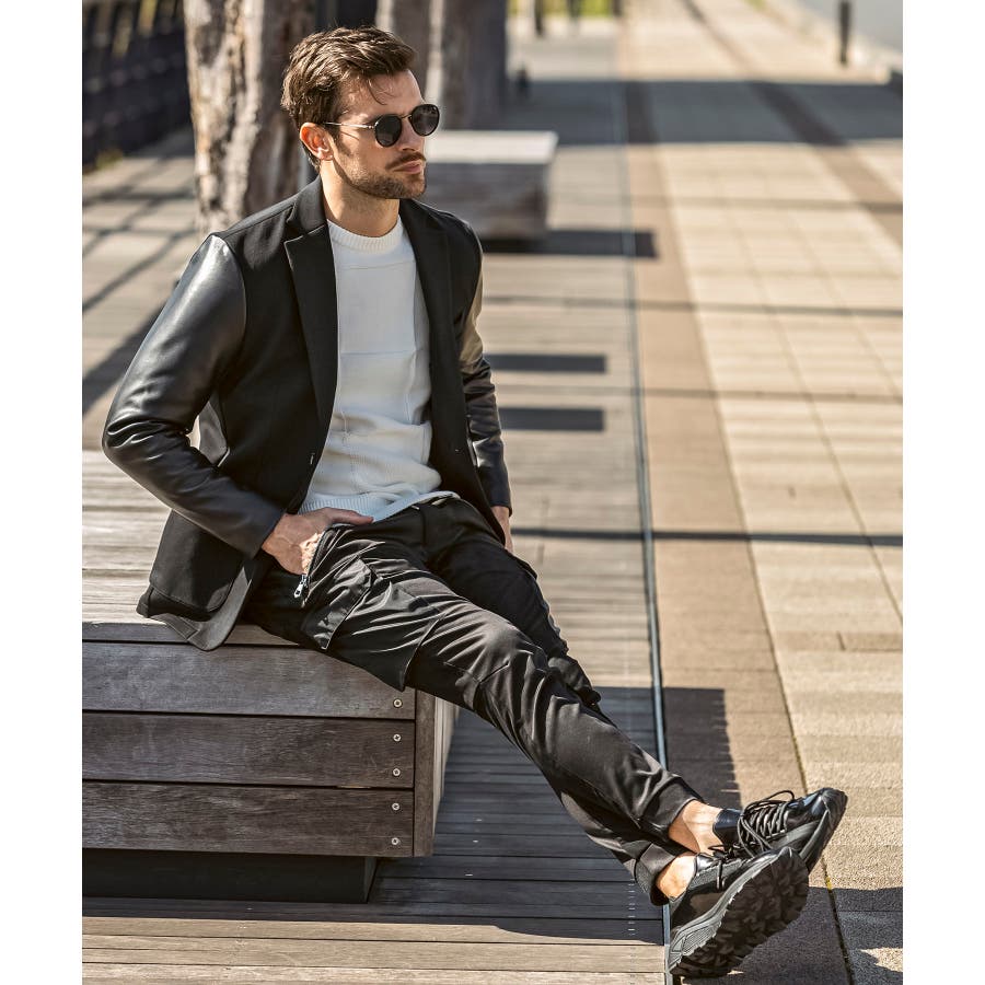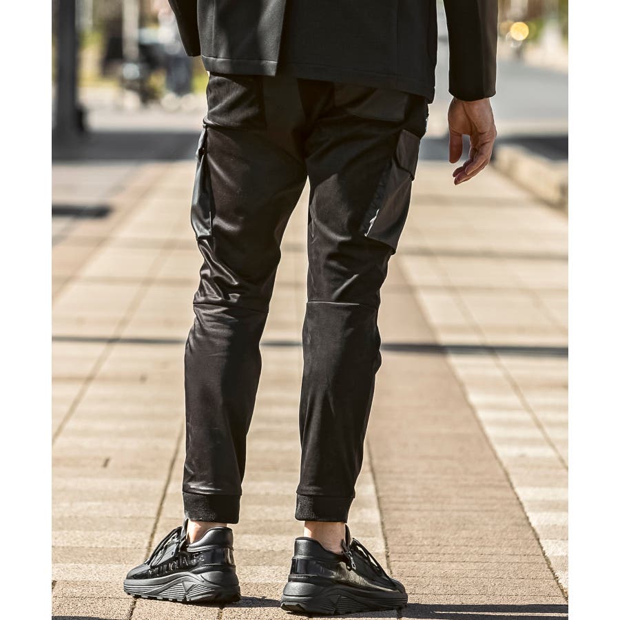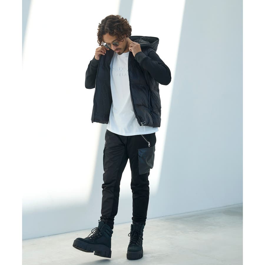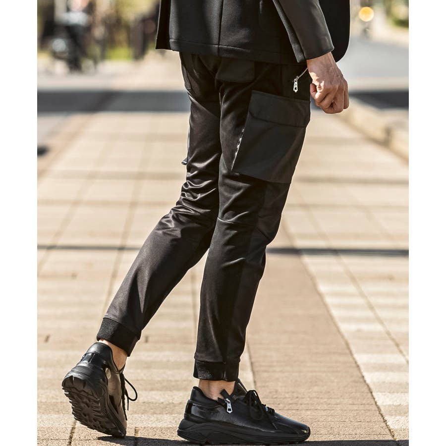 同素材のブルゾン(uso-25150)と合わせれば、統一感のあるモダンなセットアップスタイルに。