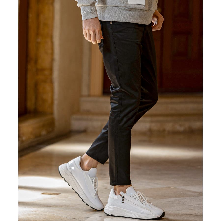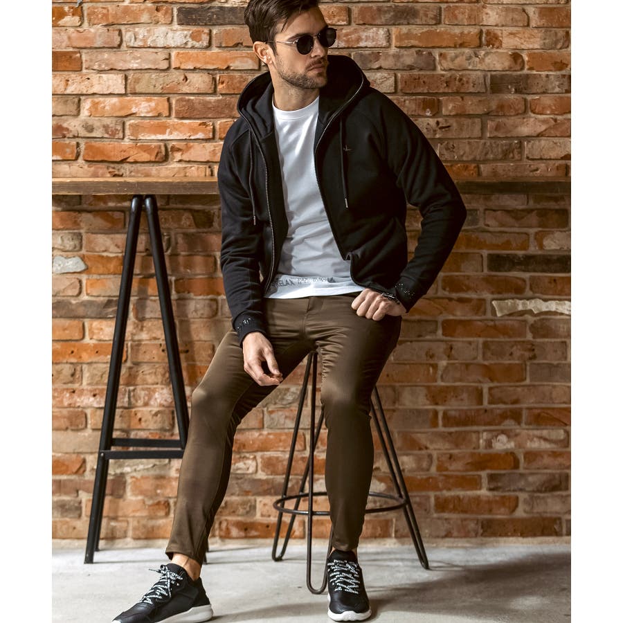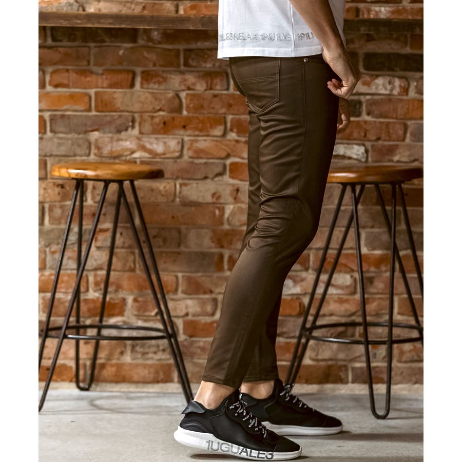 同素材のブルゾン(uso-25150)と合わせれば、統一感のあるモダンなセットアップスタイルに。