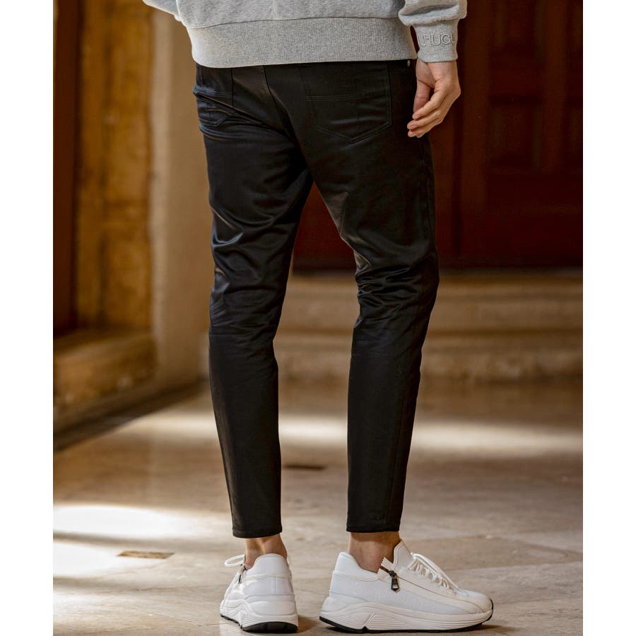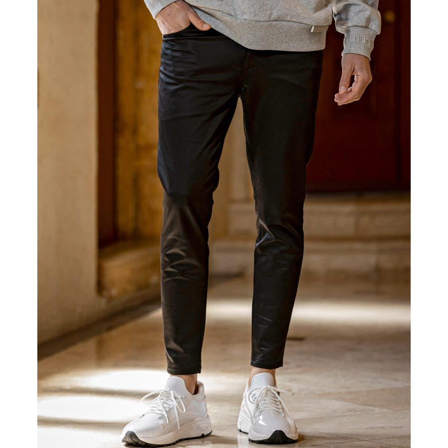 膝から裾にかけて絞りを強めたこだわりの細身シルエットがスレンダーなラインを形成。