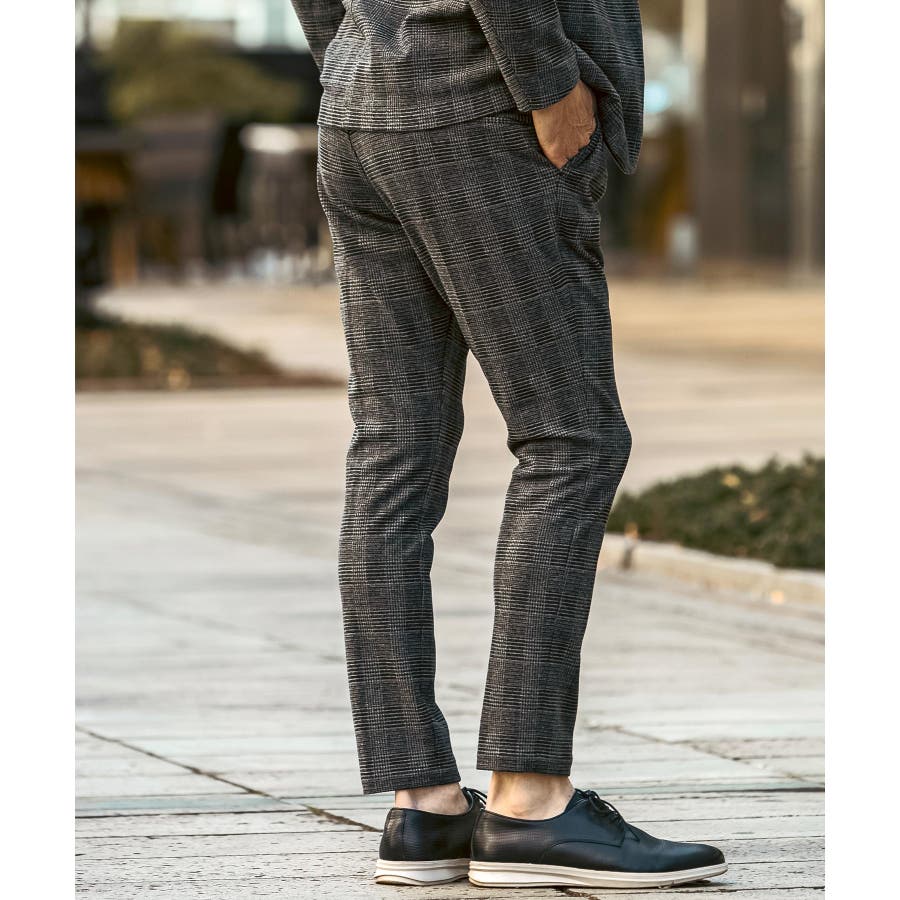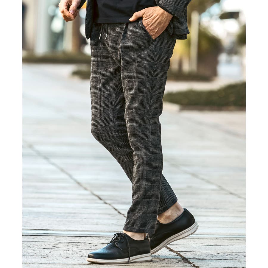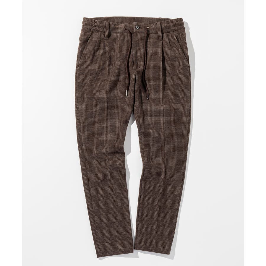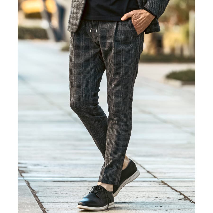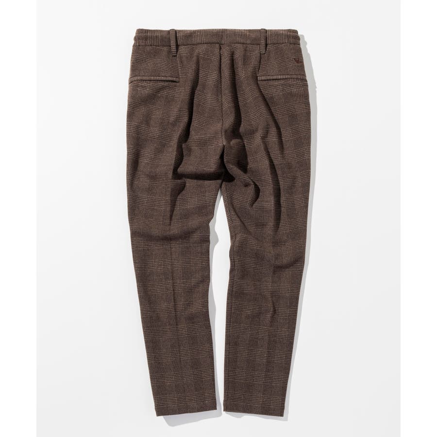 クラシカルなグレンチェック柄が落ち着いた品格を演出するロングパンツ。