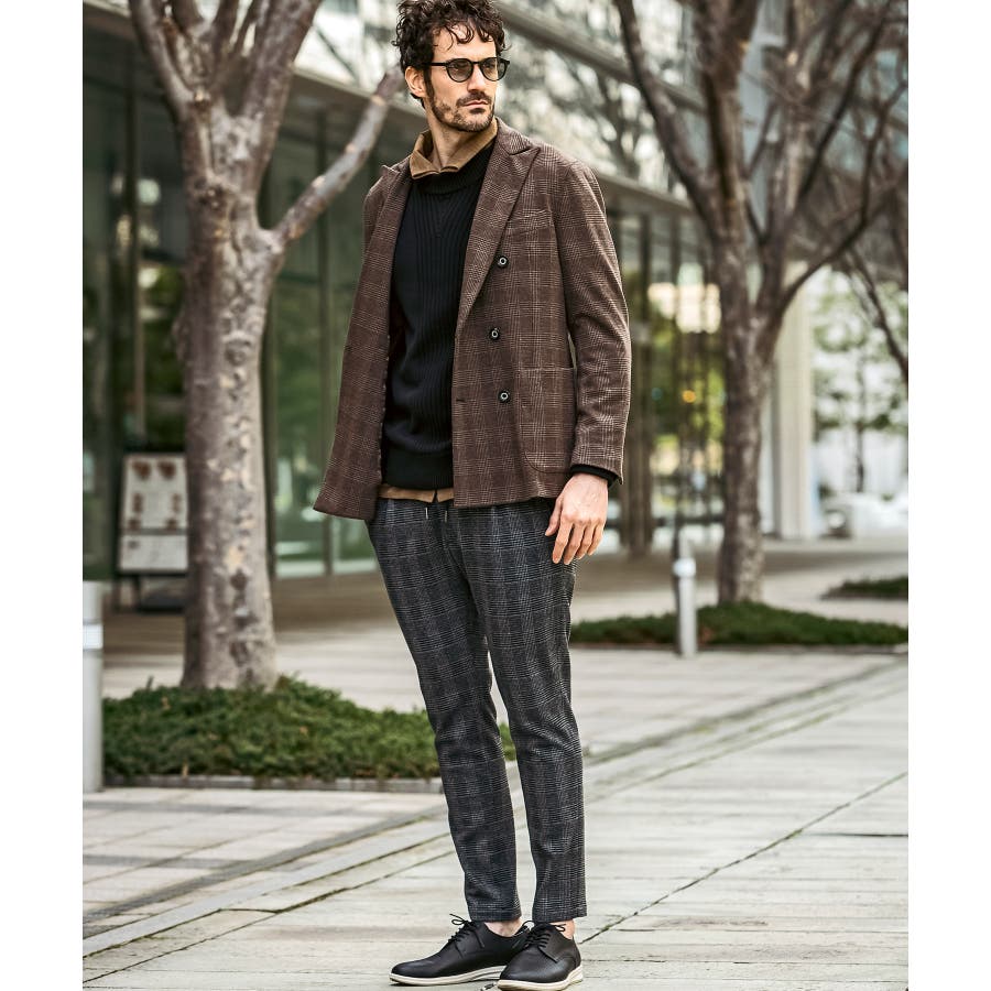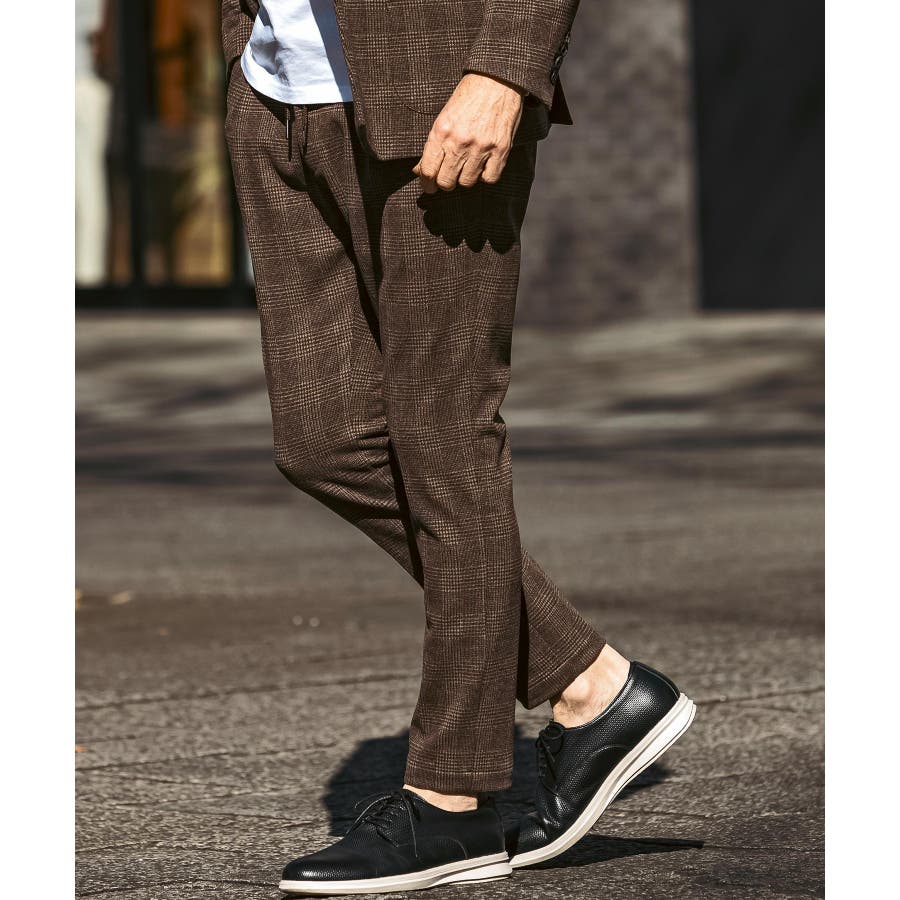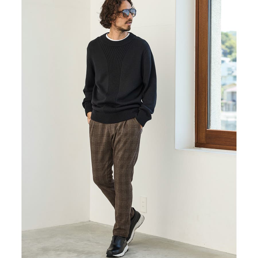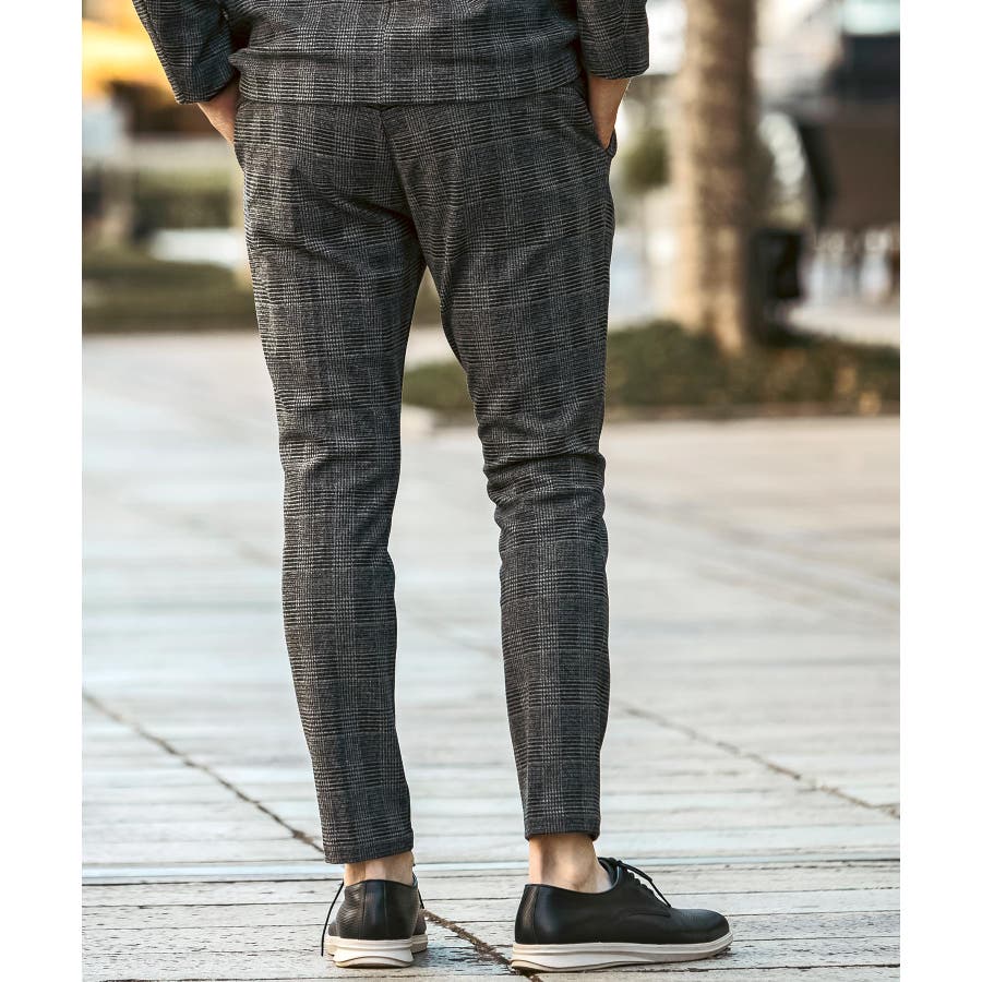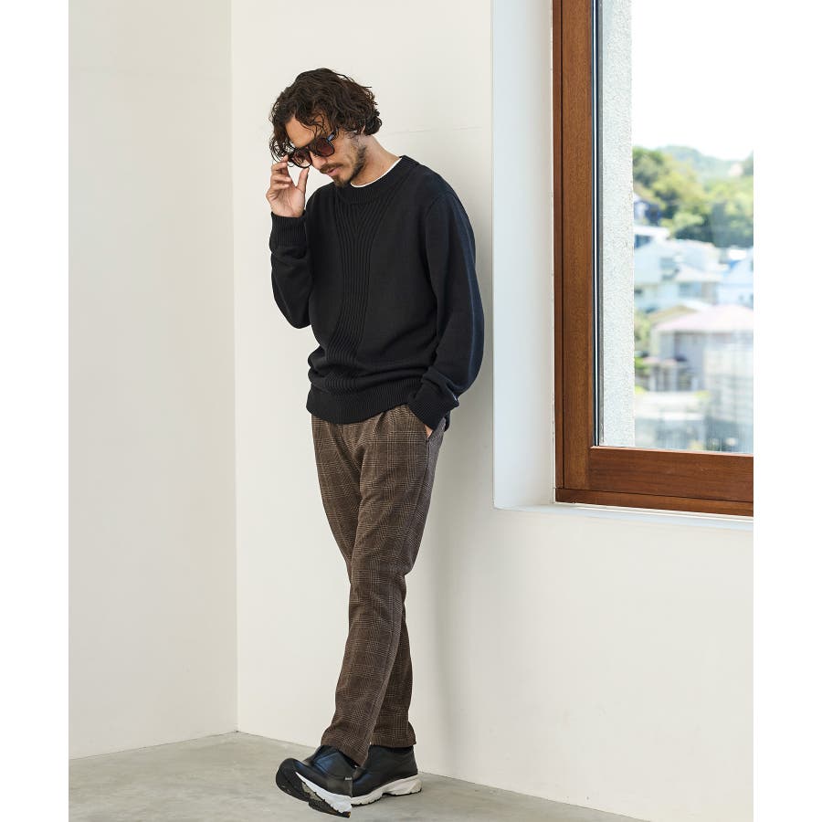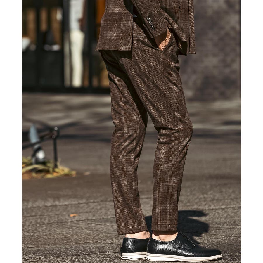 クラシカルなグレンチェック柄が落ち着いた品格を演出するロングパンツ。