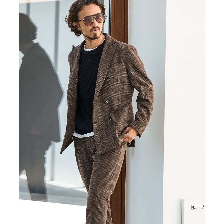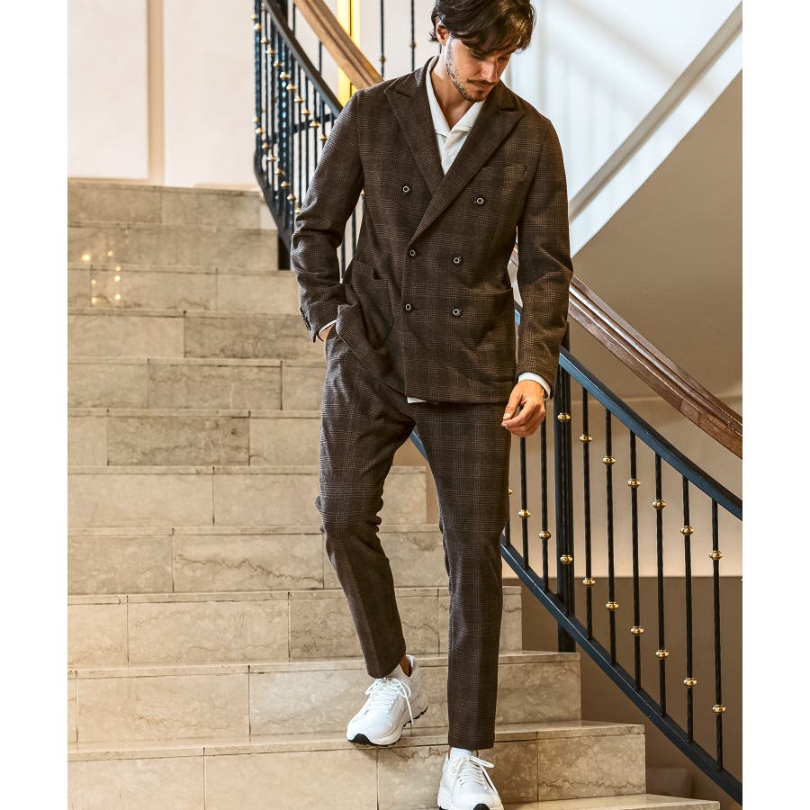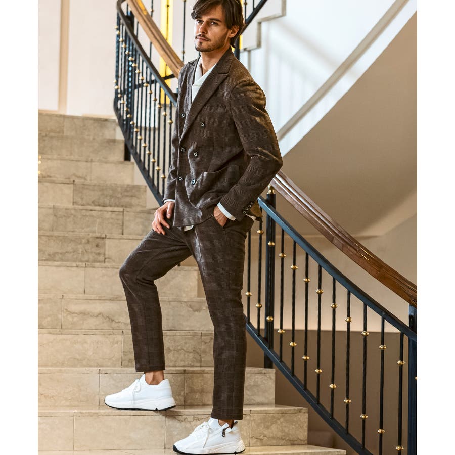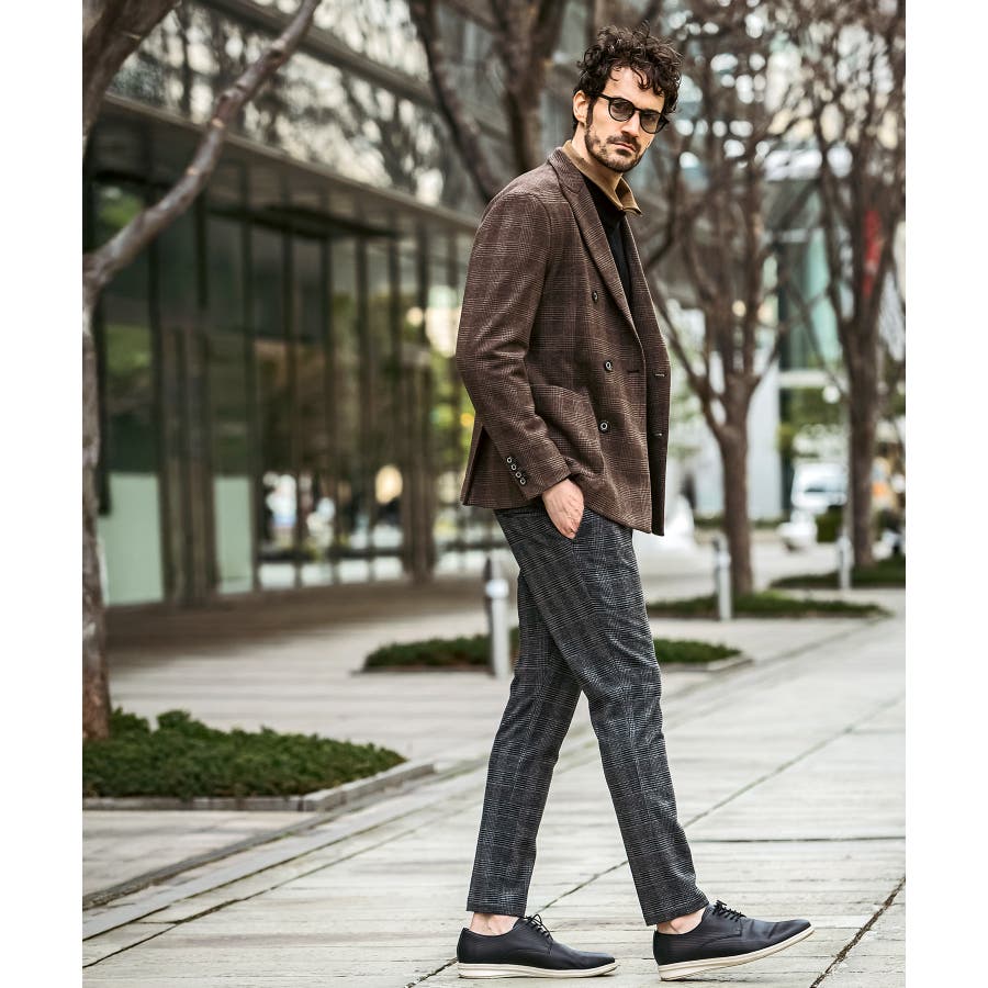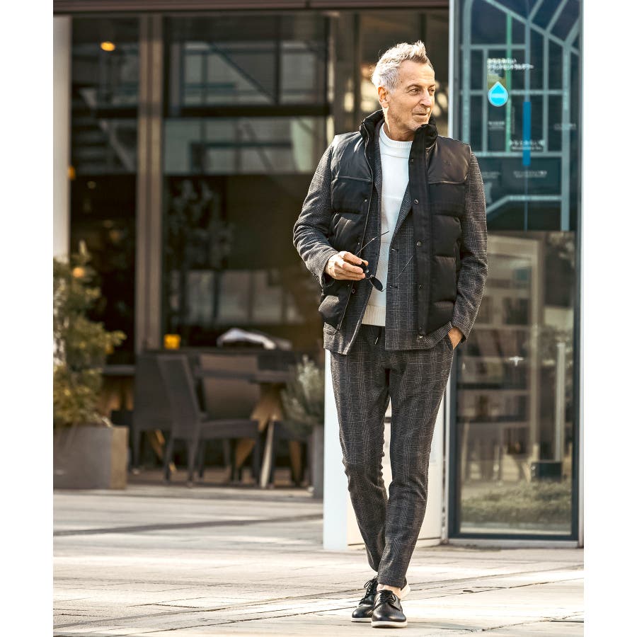 クラシカルなグレンチェック柄が落ち着いた品格を演出するロングパンツ。