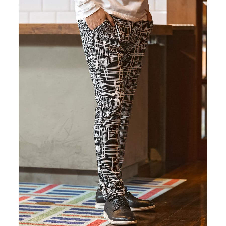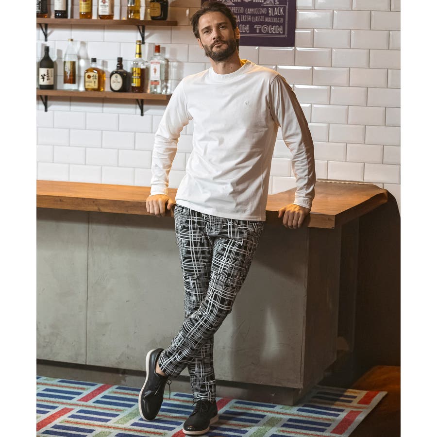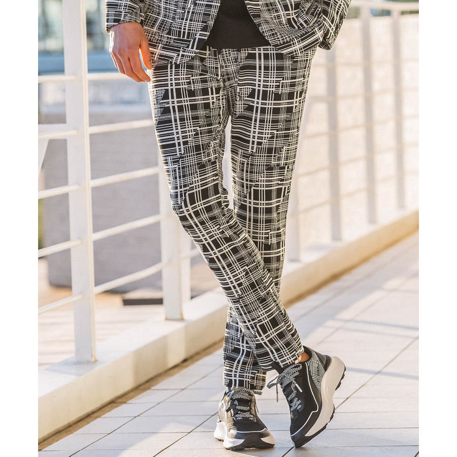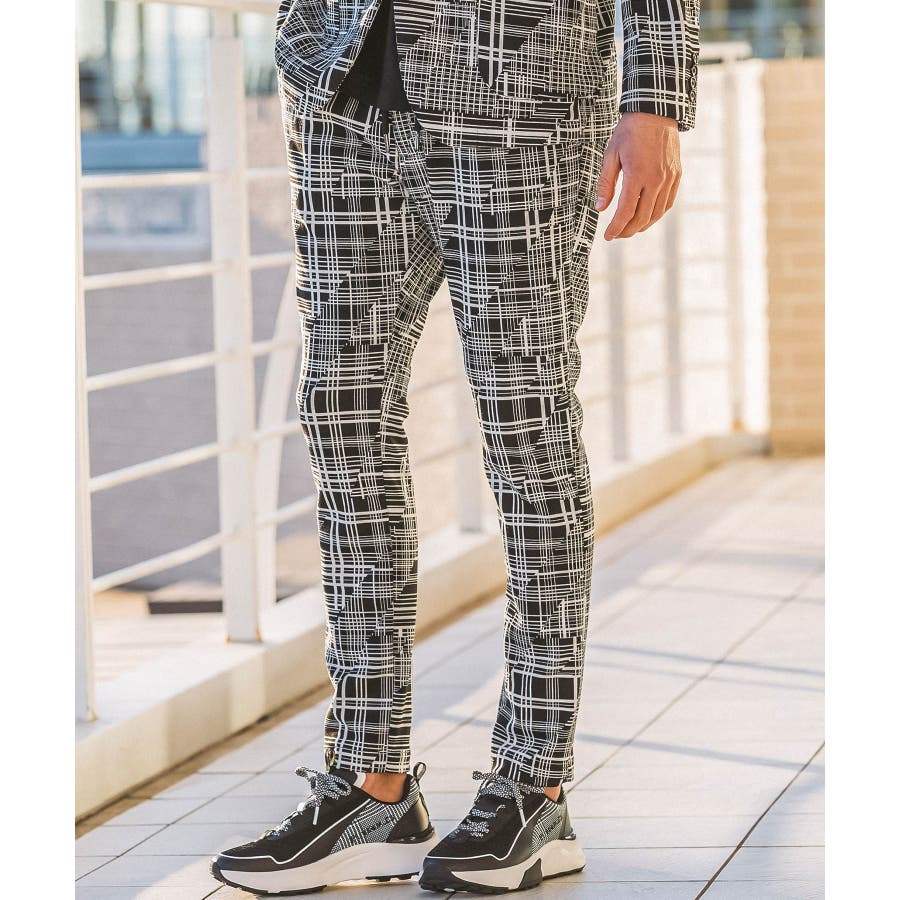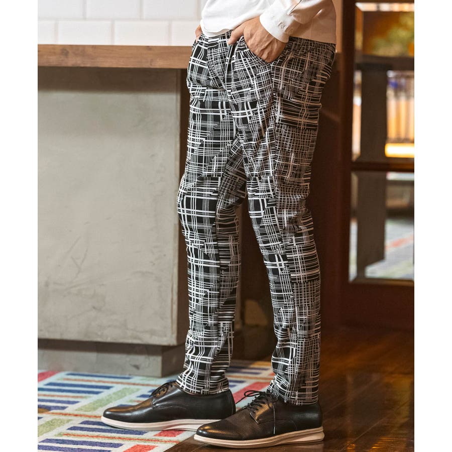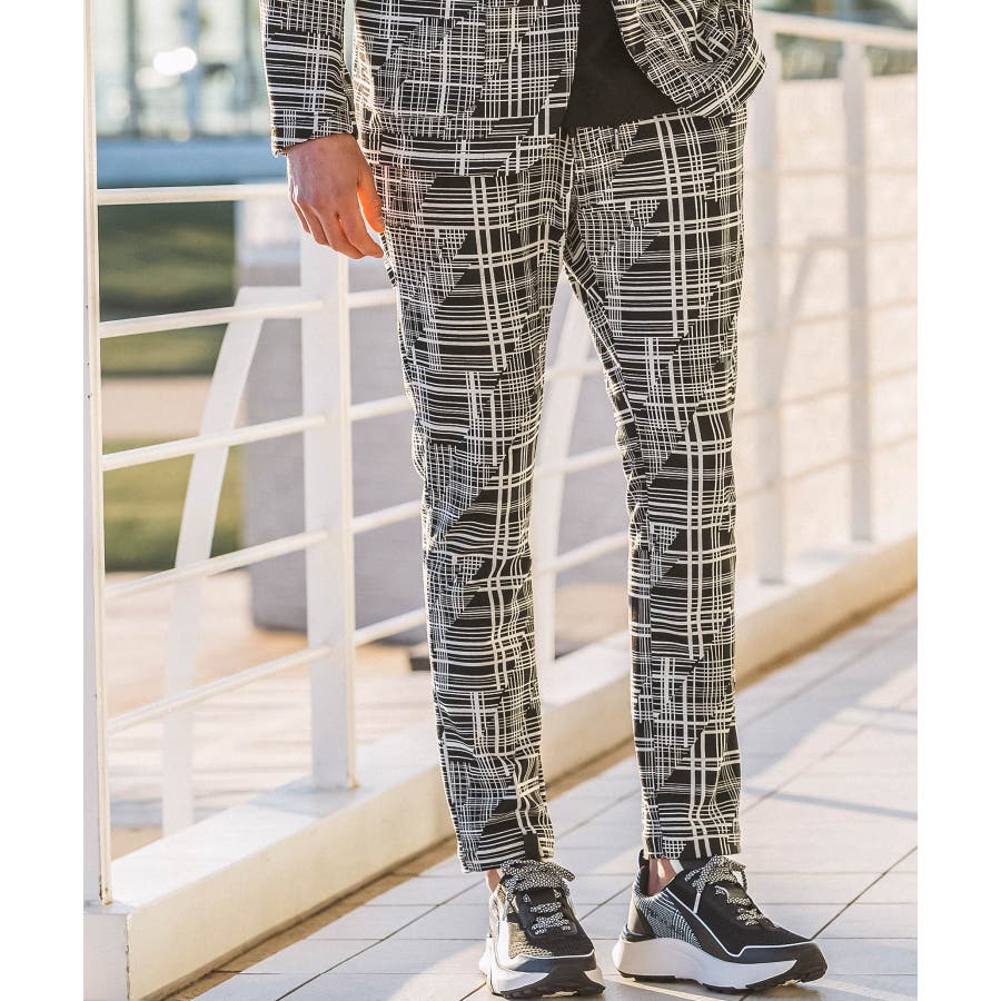 幾何学柄をジャガードで表現したニュアンス豊かなスラックス。